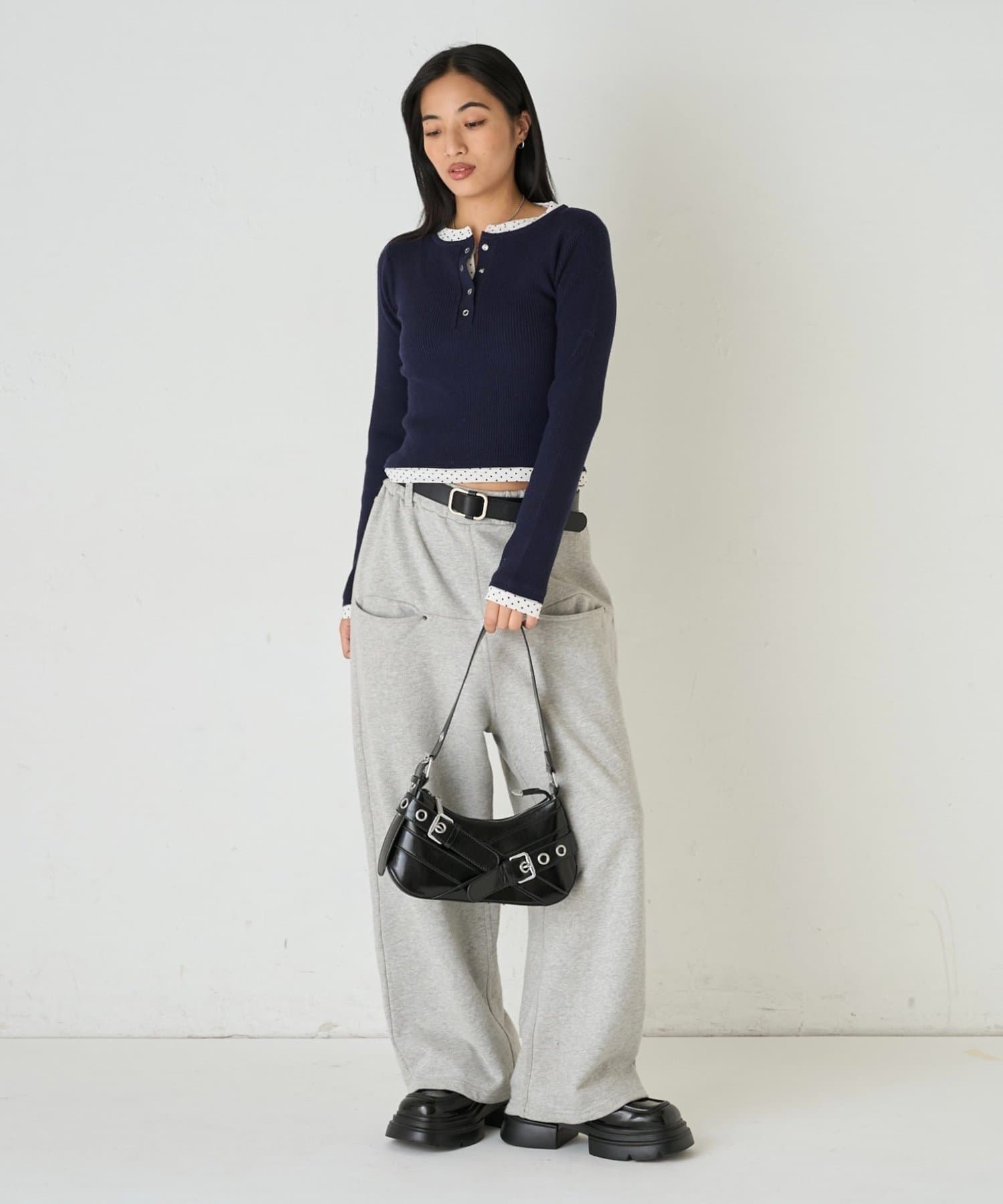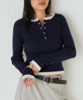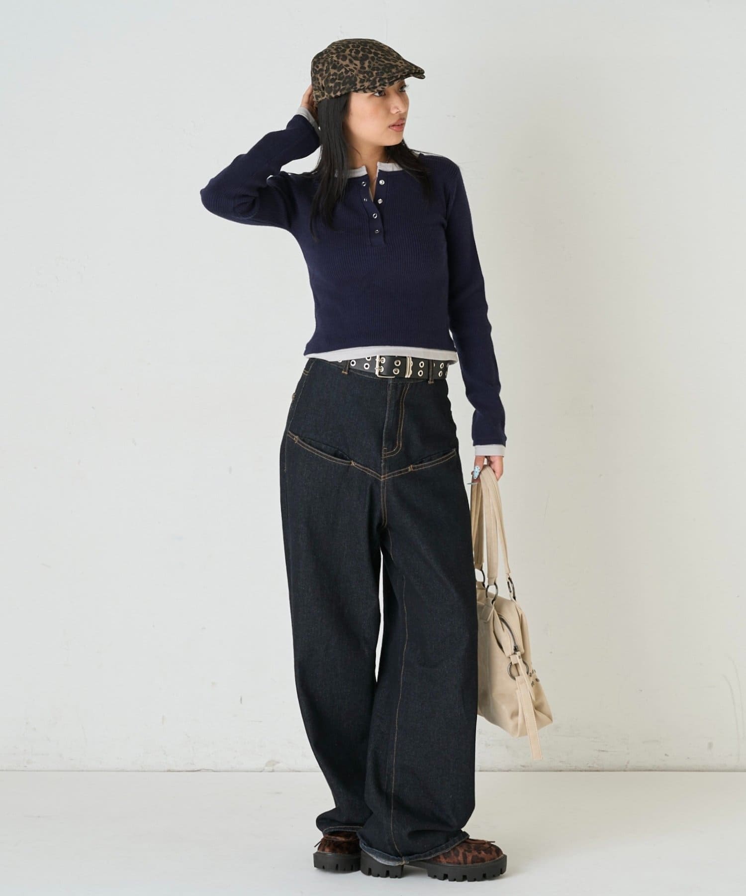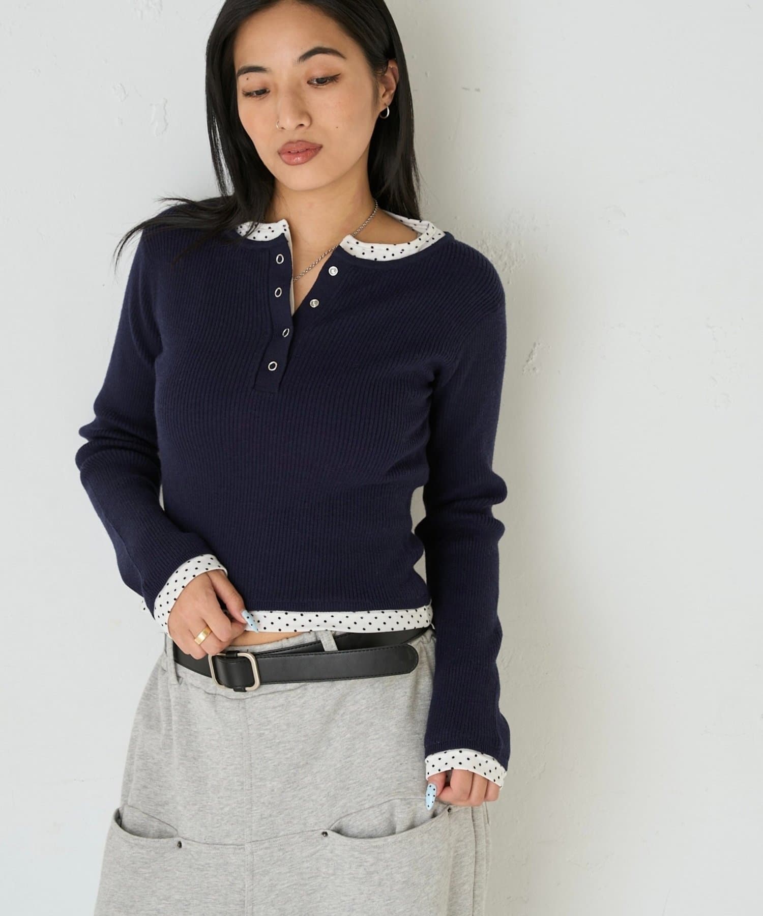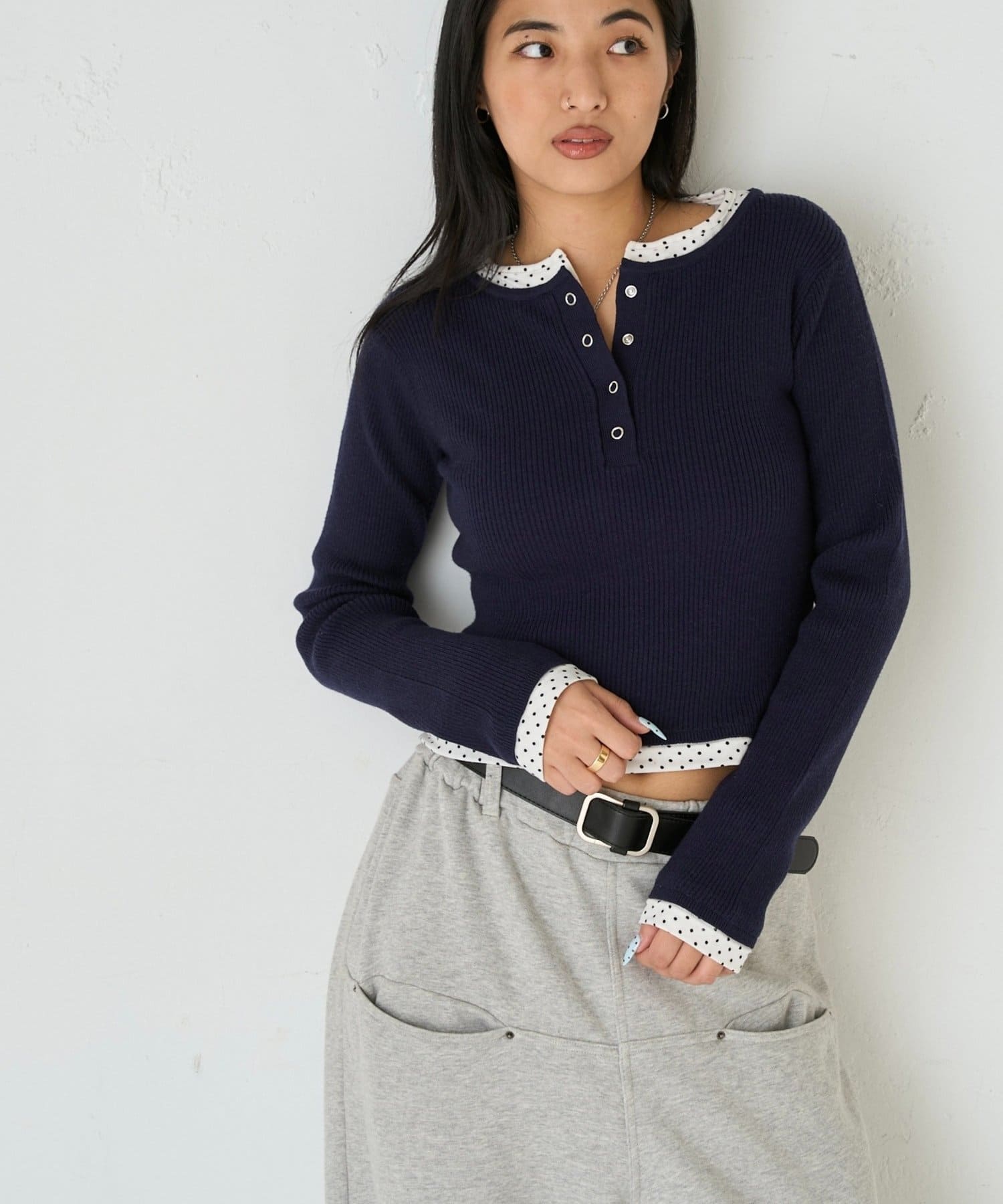 こなれ感たっぷり!レイヤードデザインが魅力のヘンリーネックニット