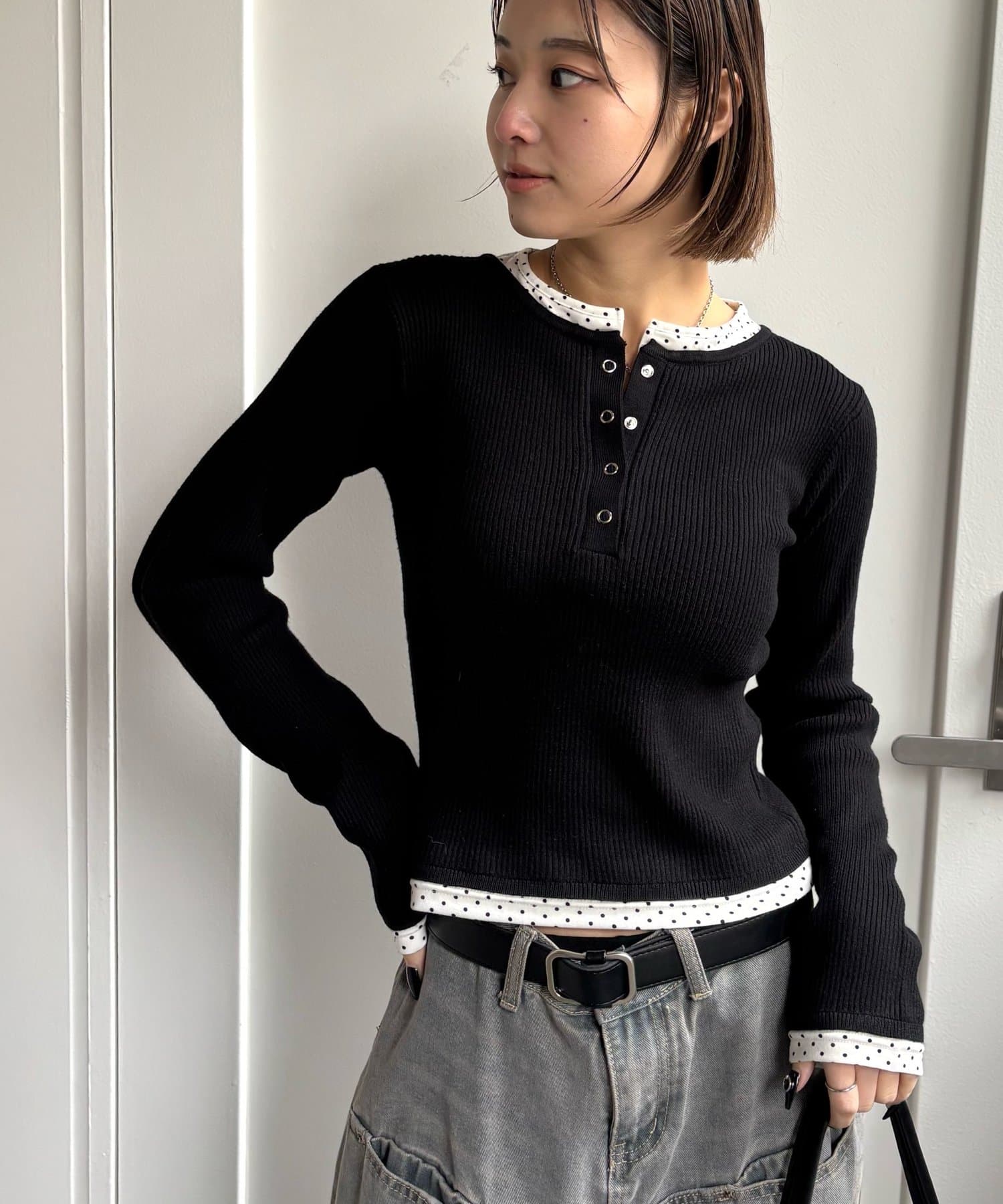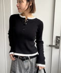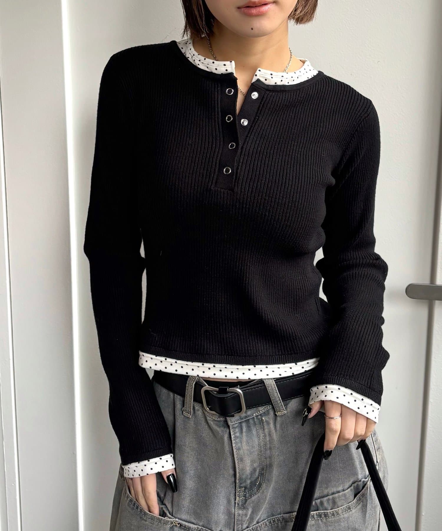 【LAYERED HENLEY KINT/レイヤードヘンリーニットトップス】