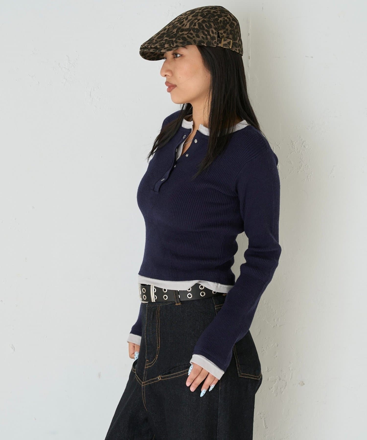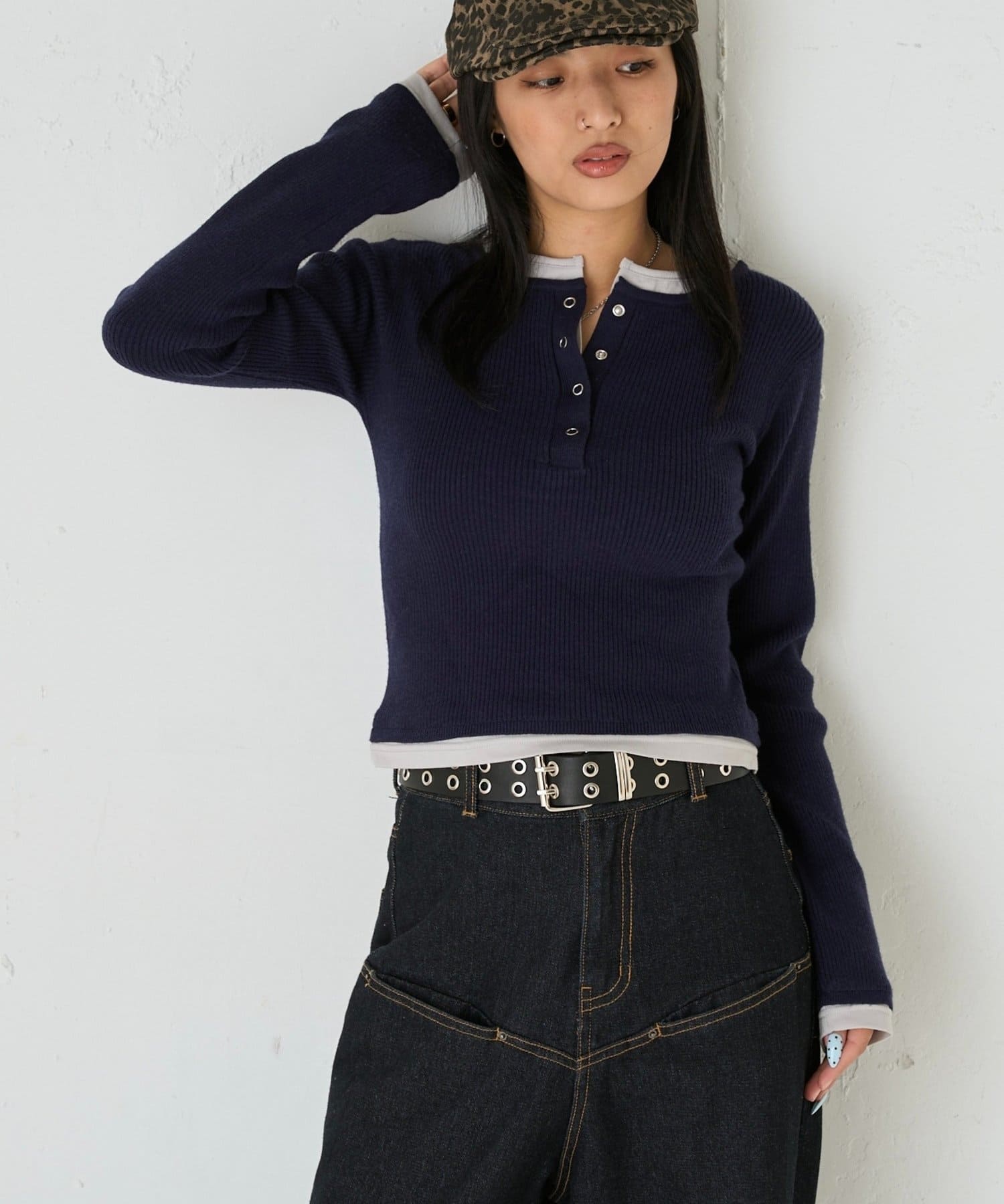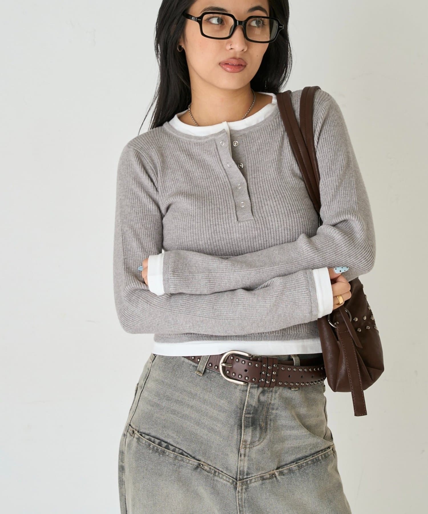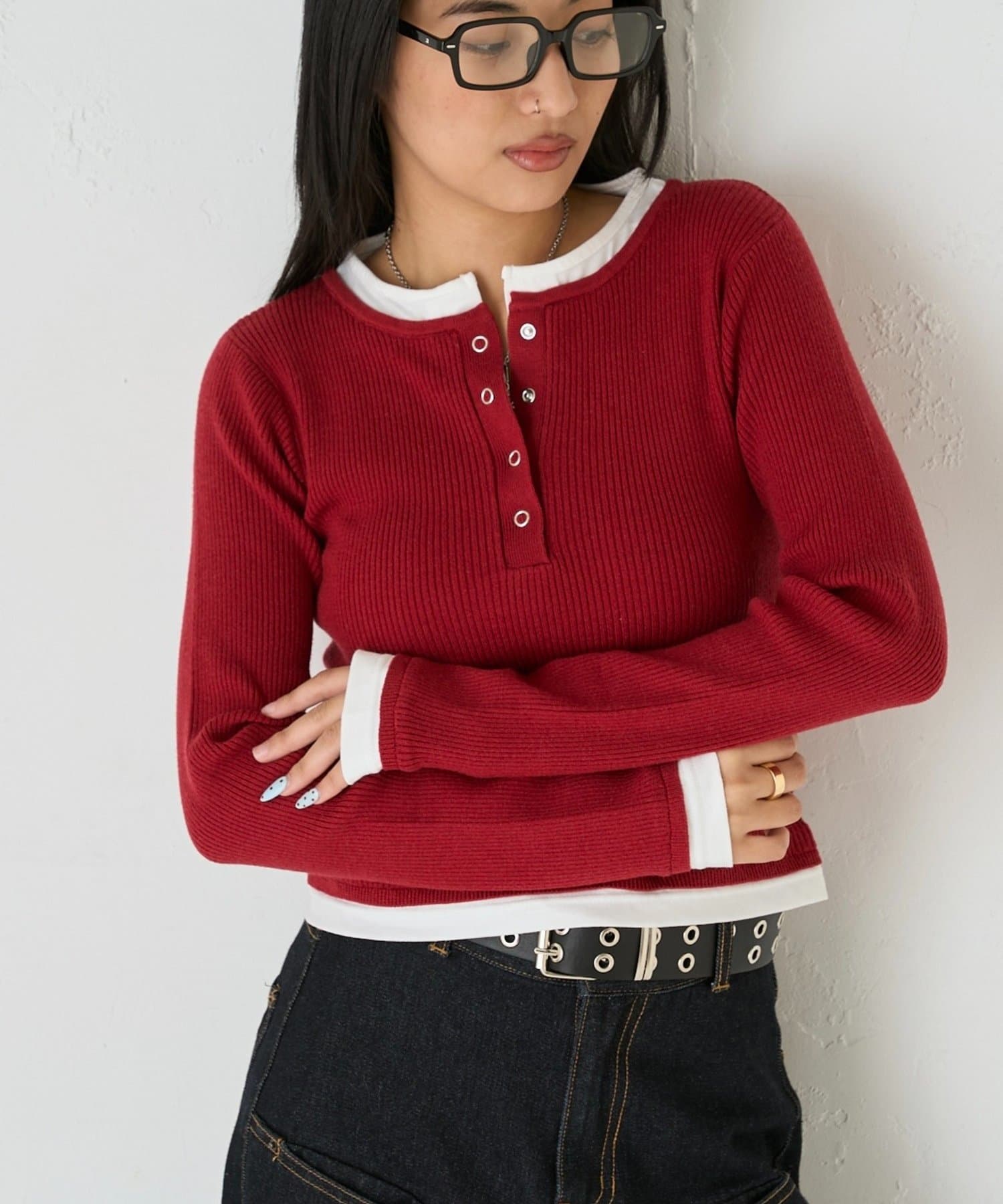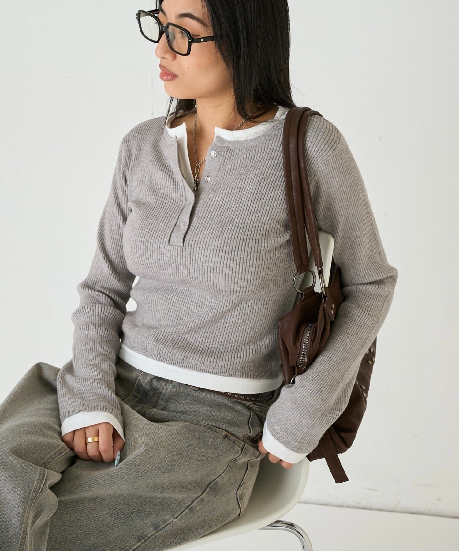 こなれ感たっぷり!レイヤードデザインが魅力のヘンリーネックニット