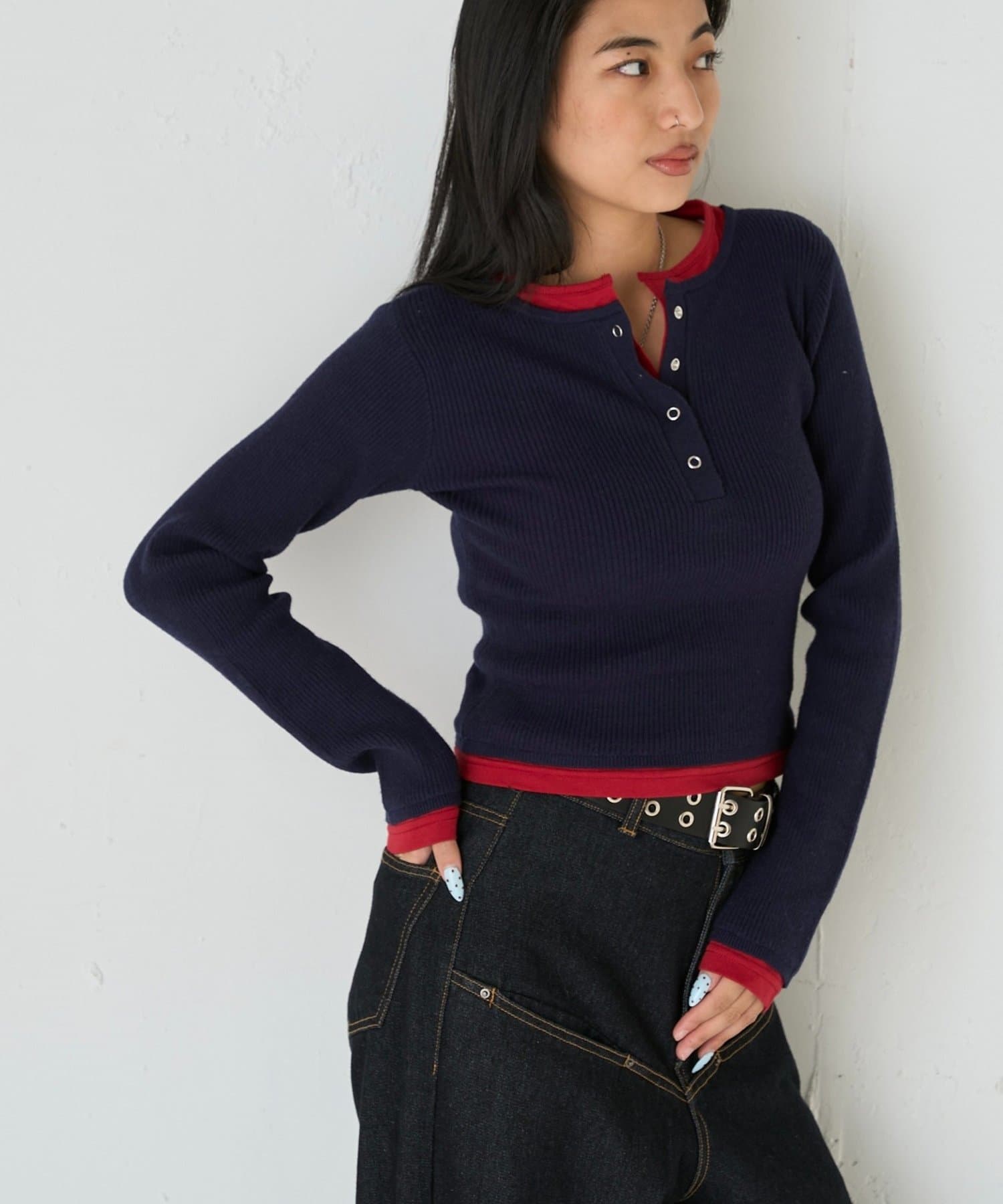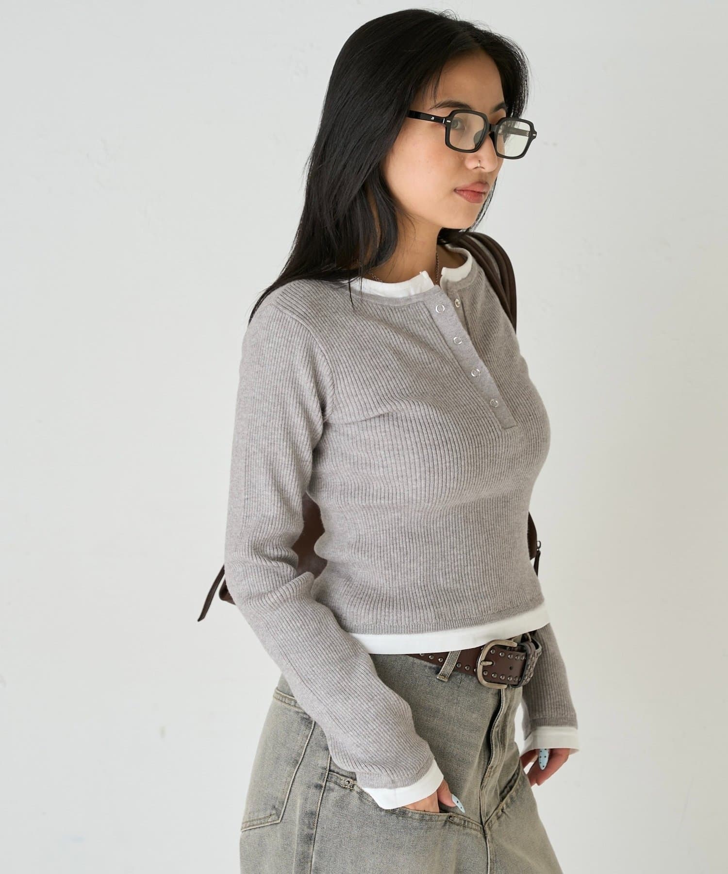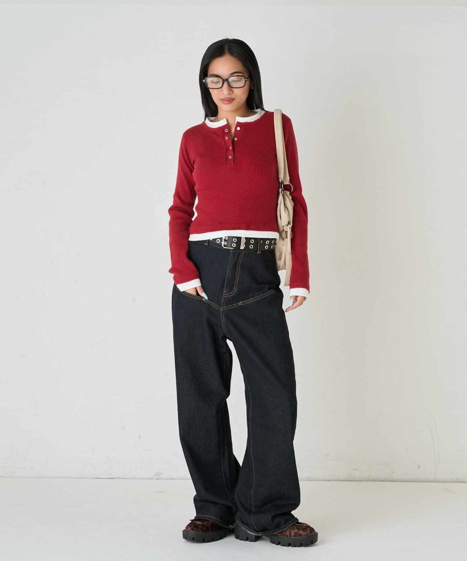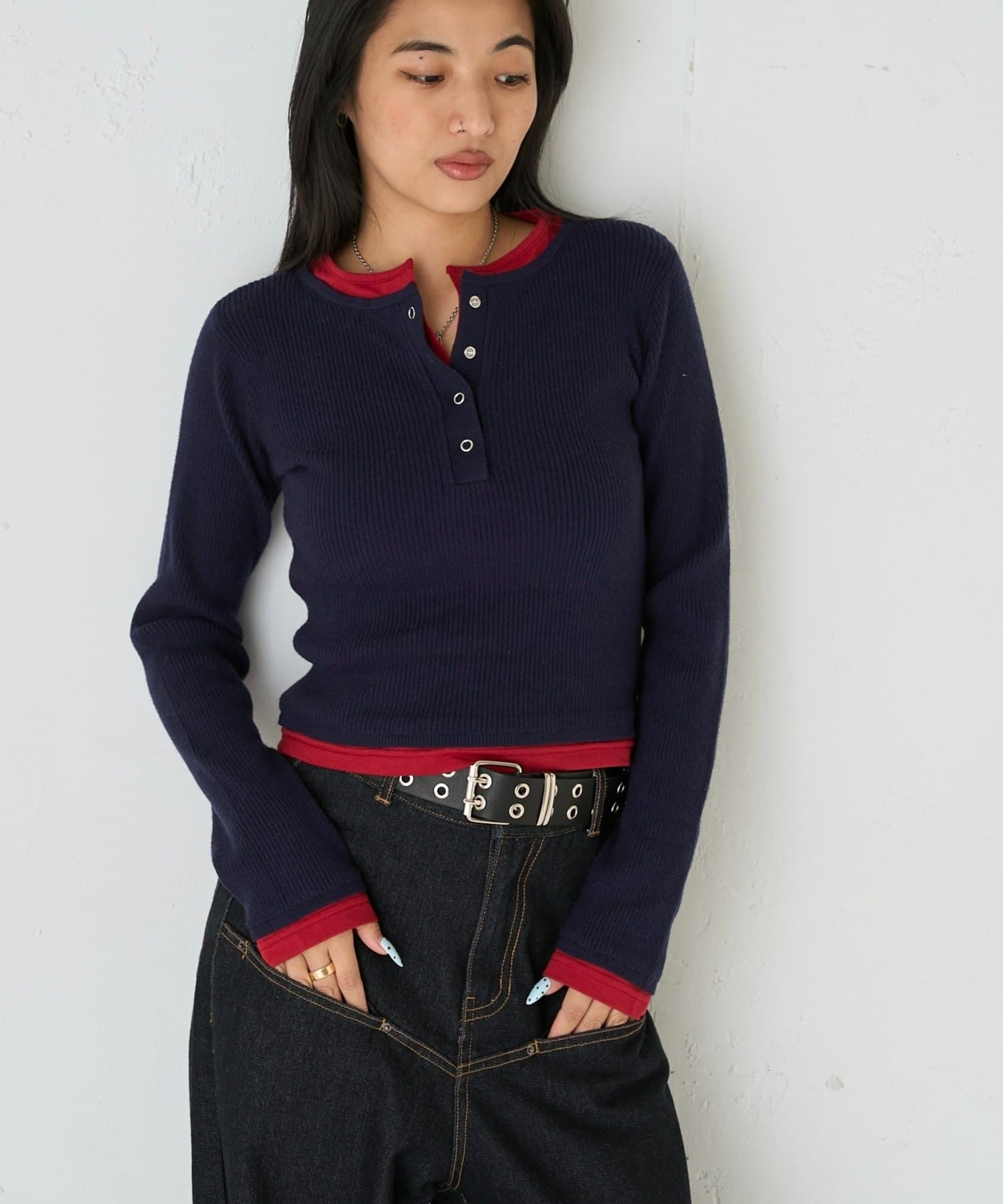 こなれ感たっぷり!レイヤードデザインが魅力のヘンリーネックニット