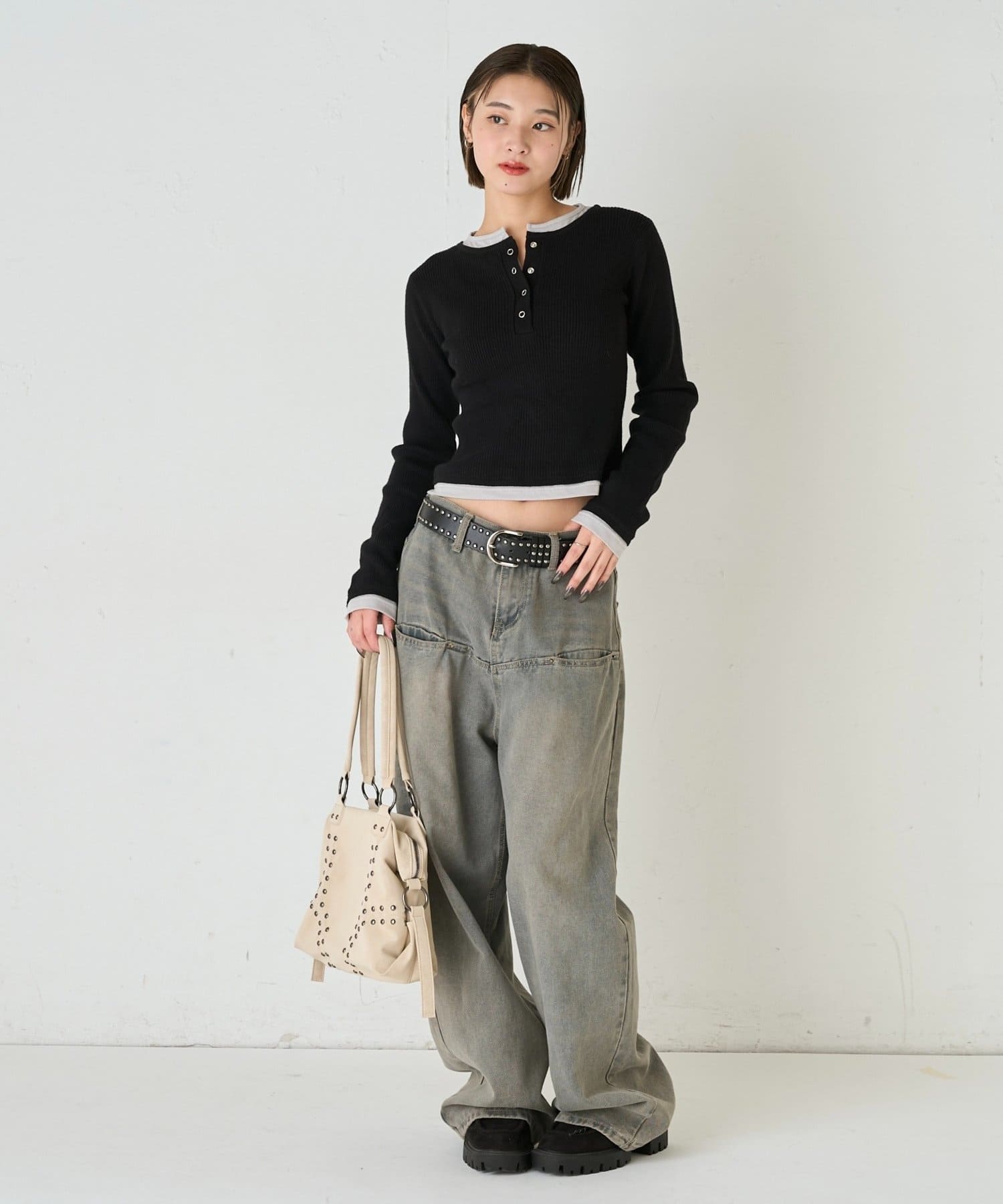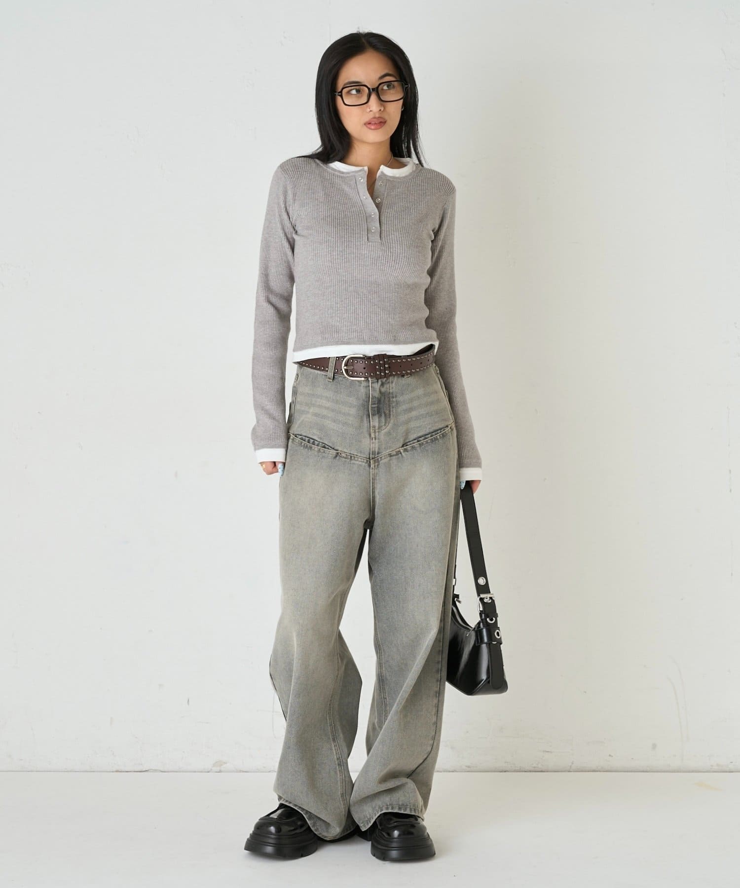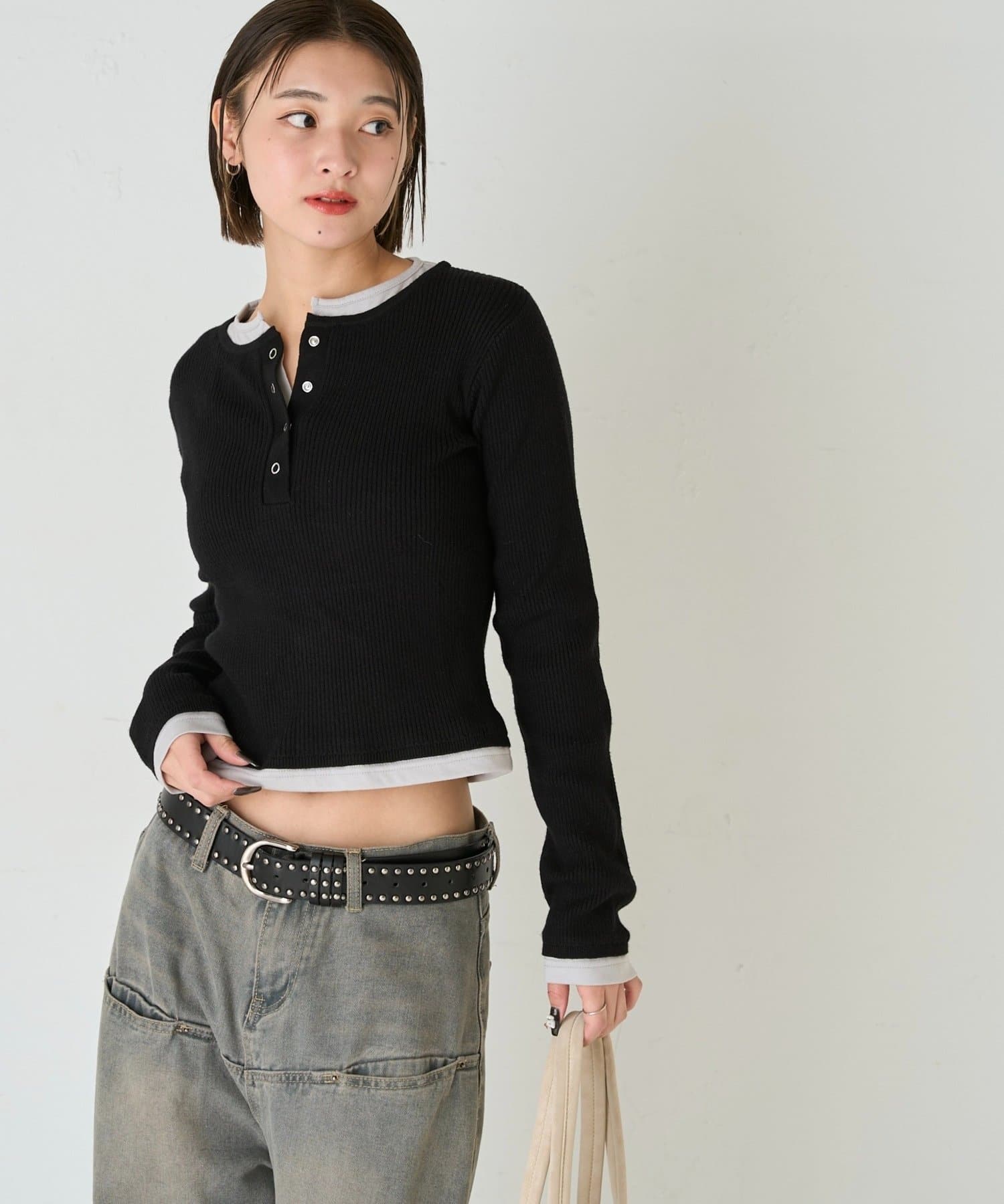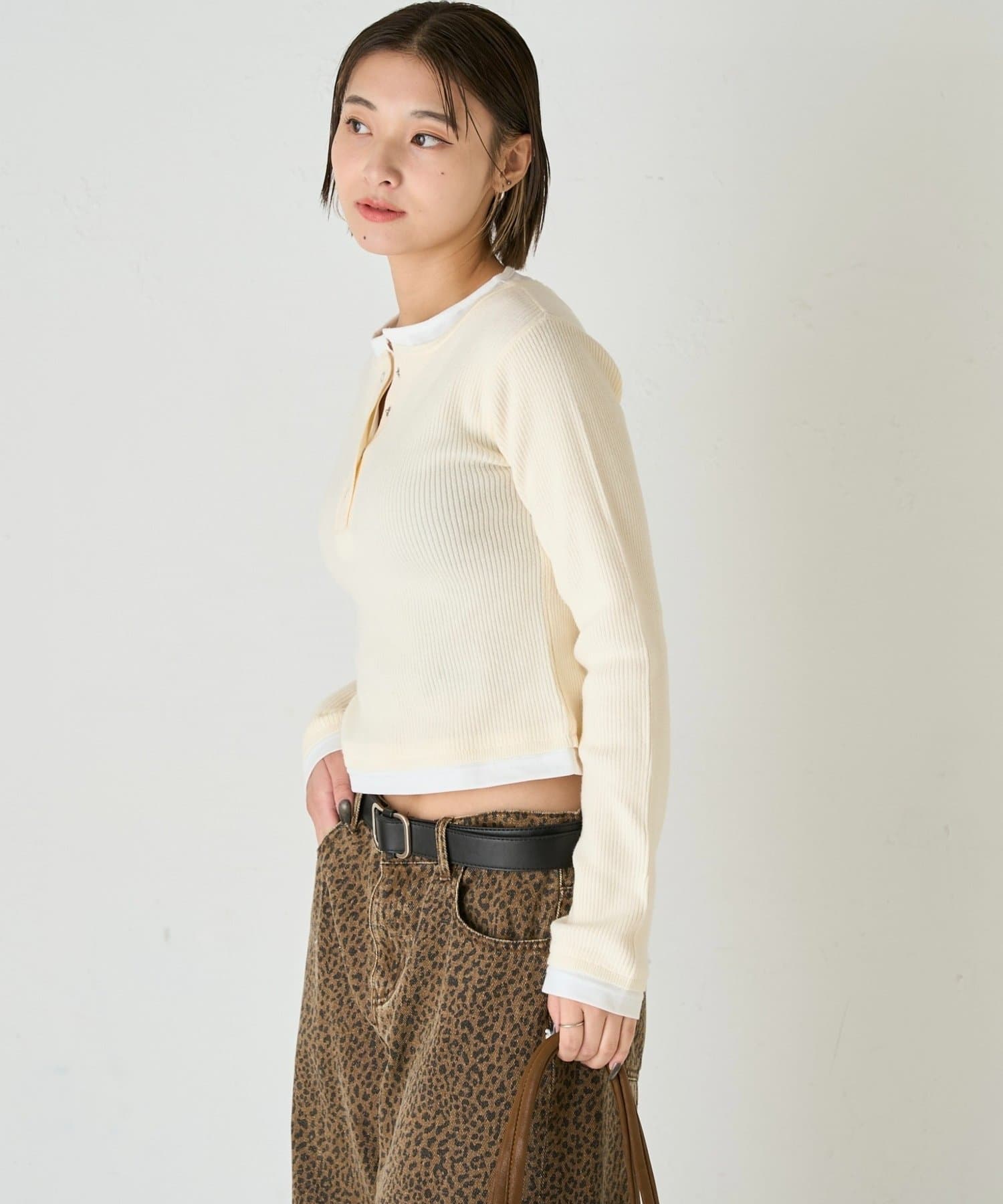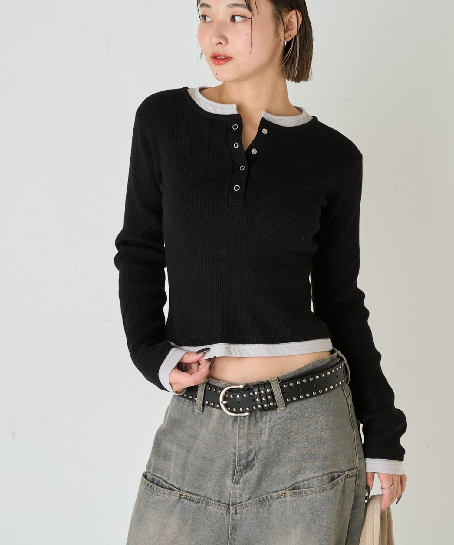 こなれ感たっぷり!レイヤードデザインが魅力のヘンリーネックニット