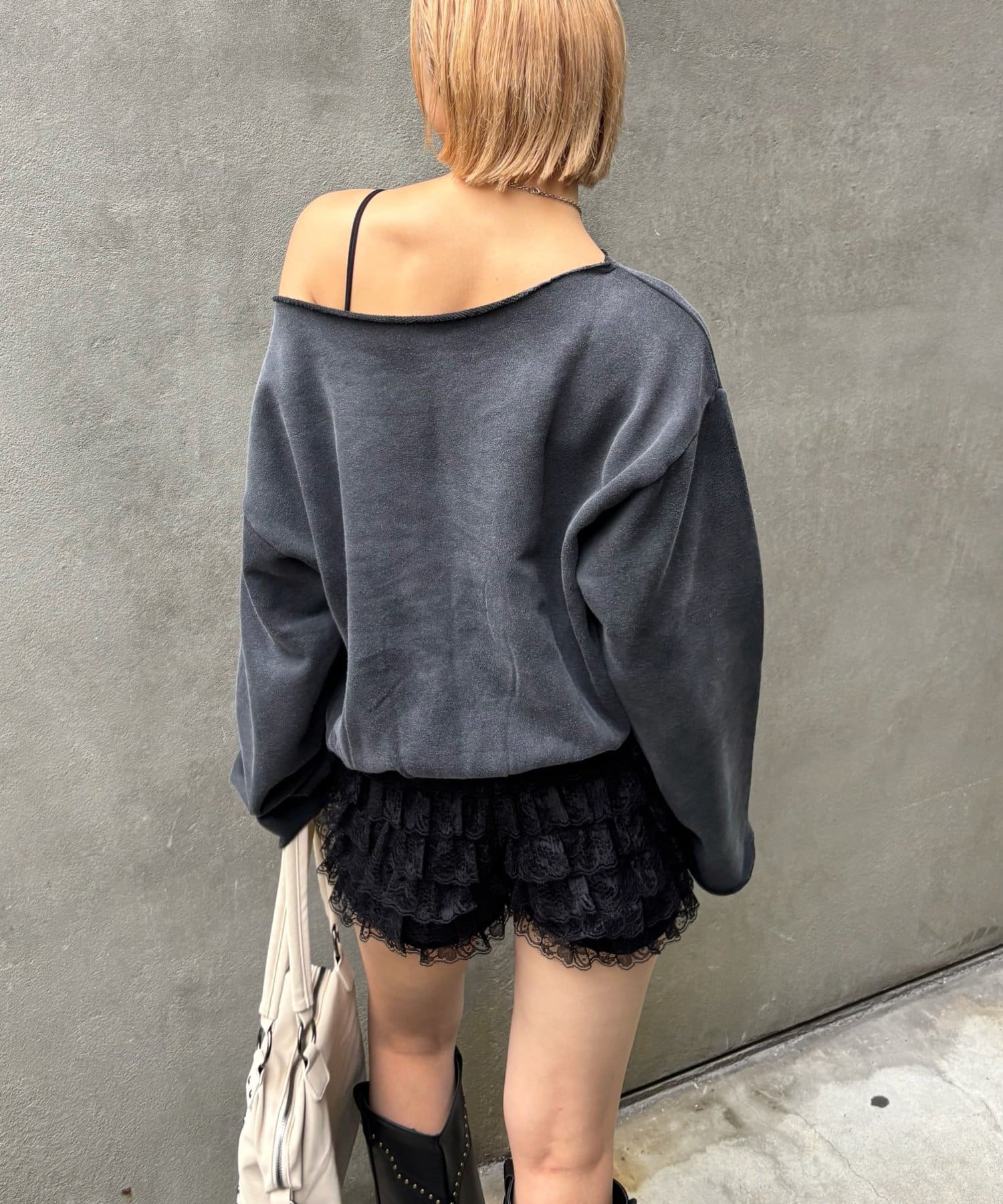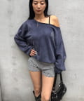 ・オフショルデザインで、程よい肌見せが叶うトレンド感のあるスウェット。