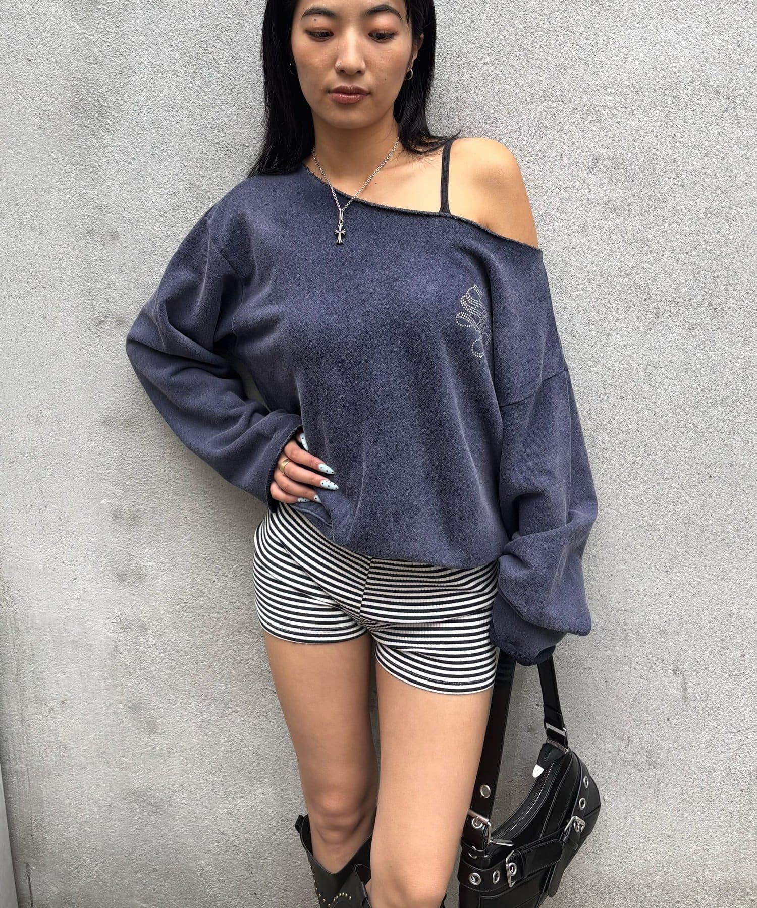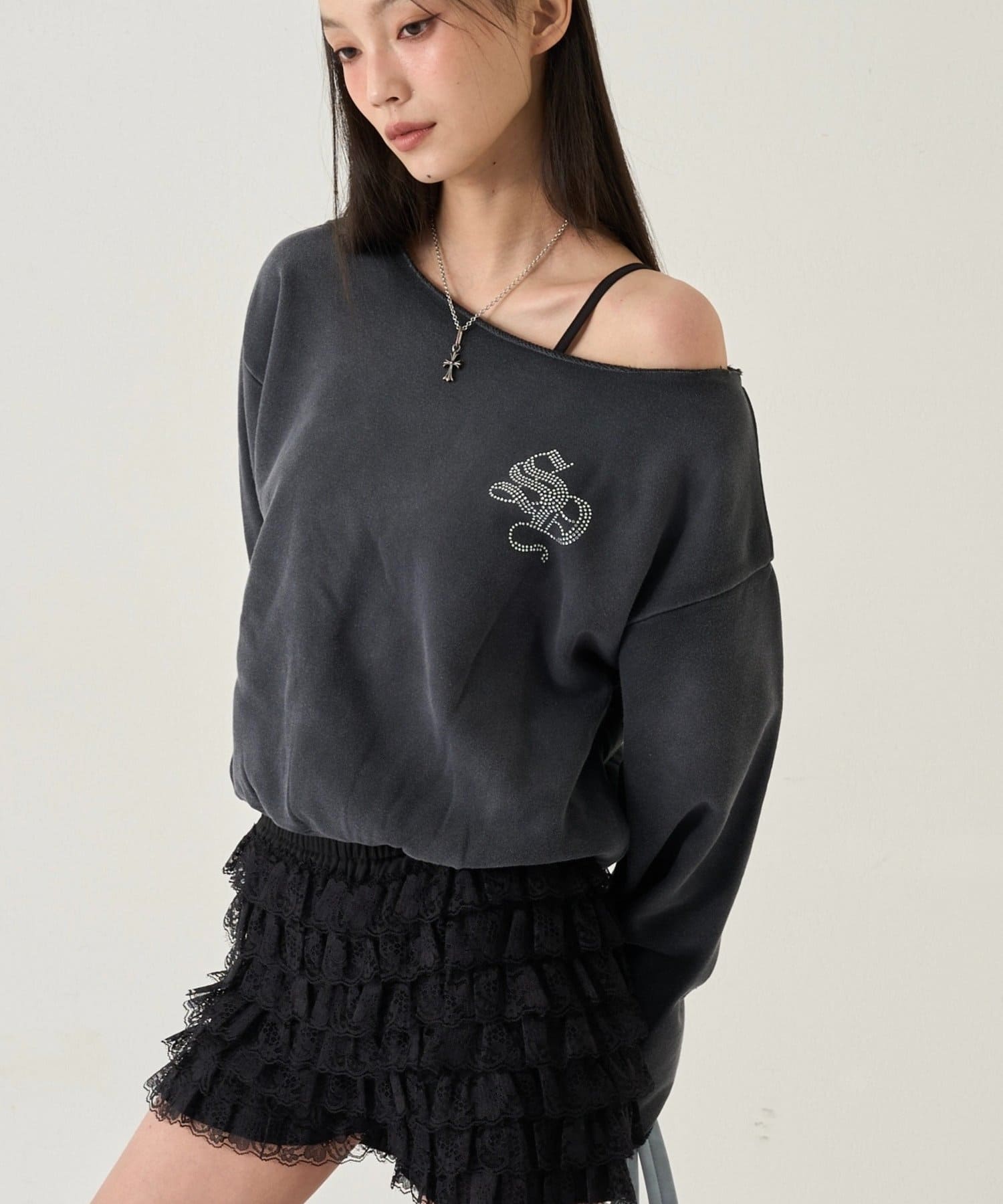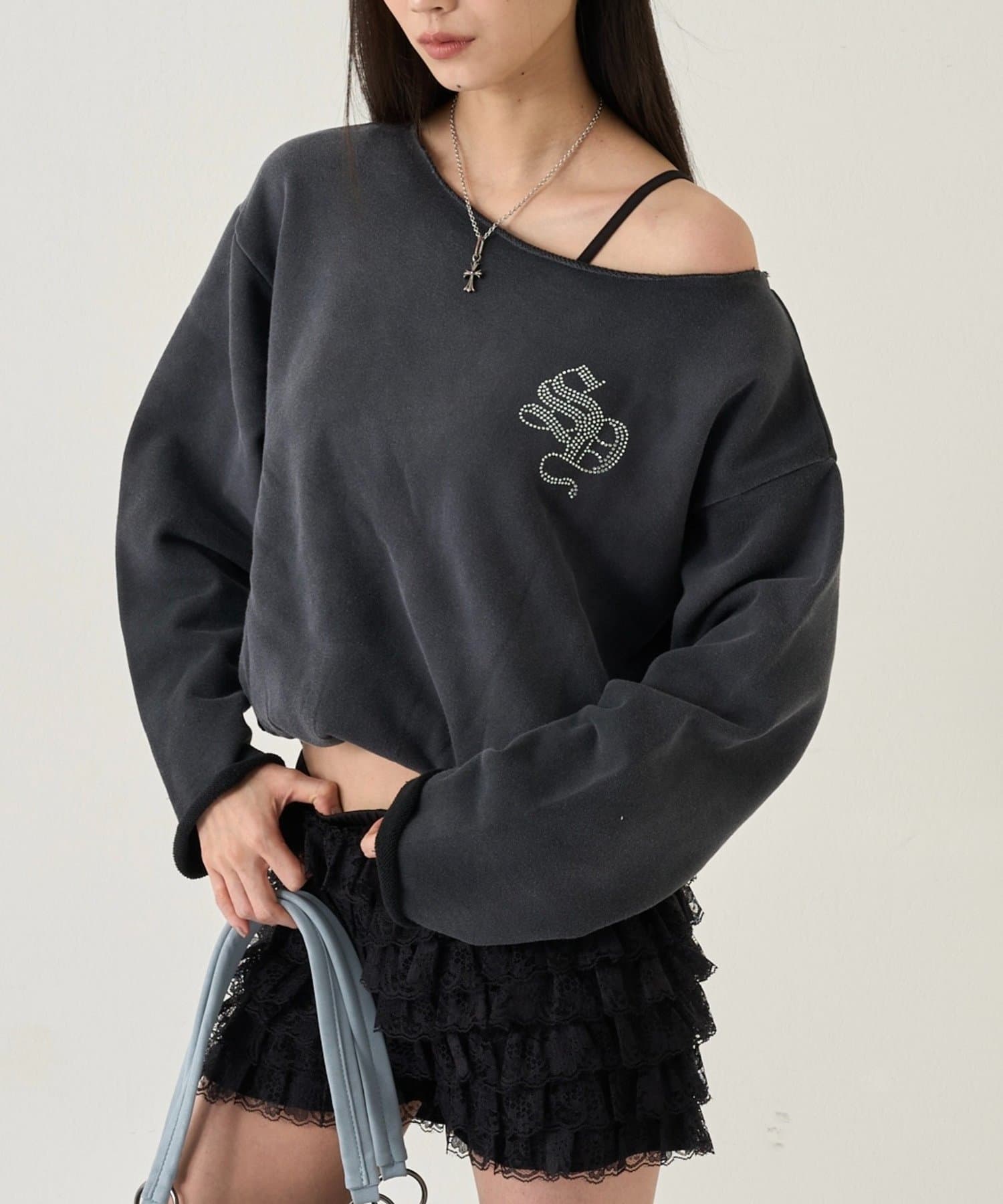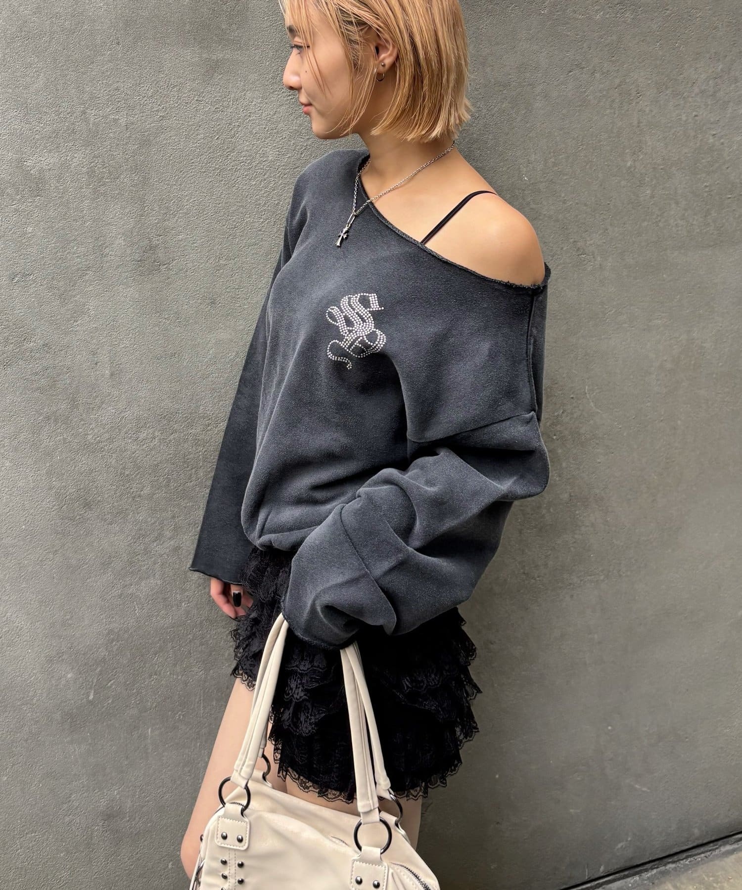 【WHO'S WHO gallery】ラインストーンオフショルスウェット