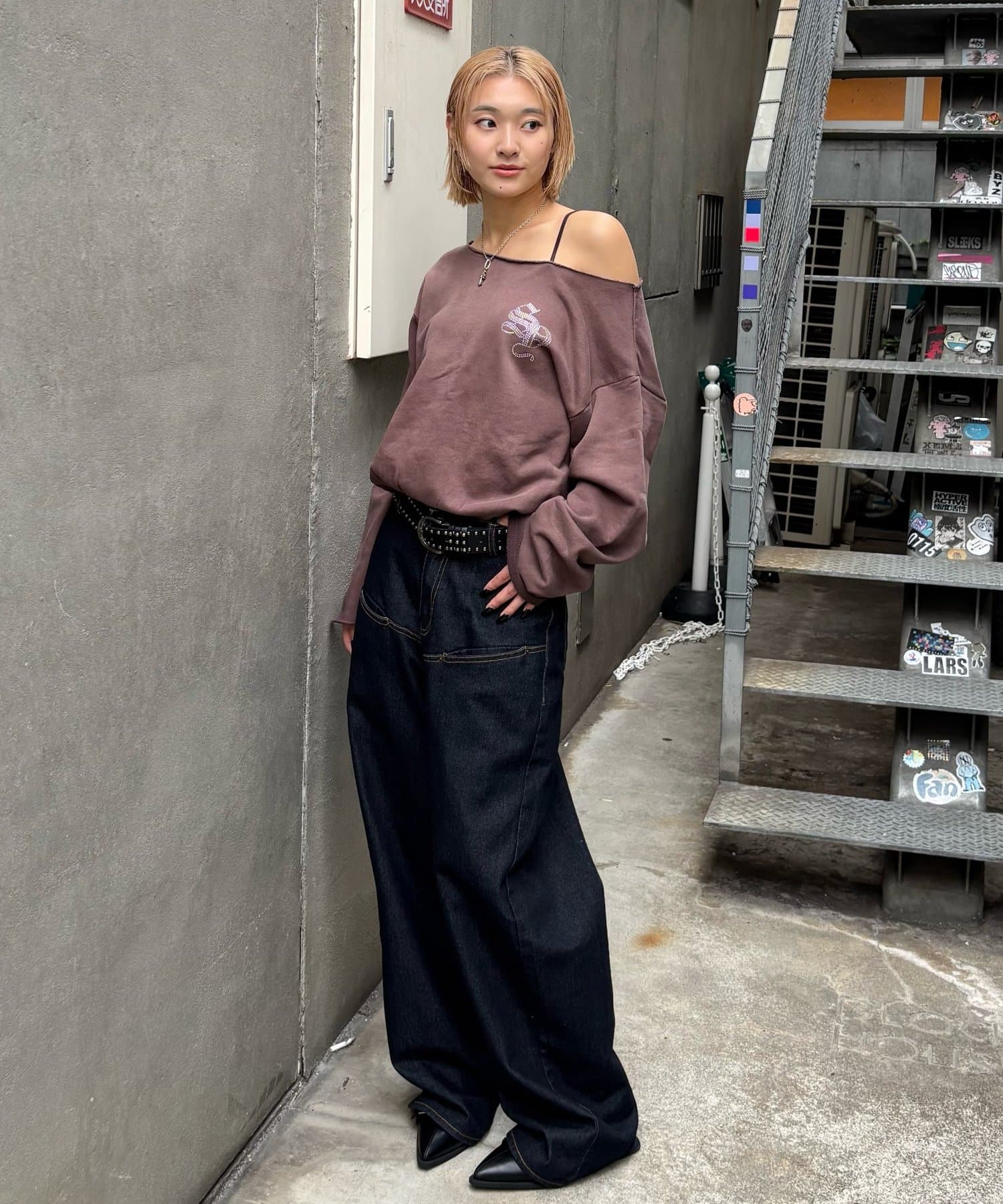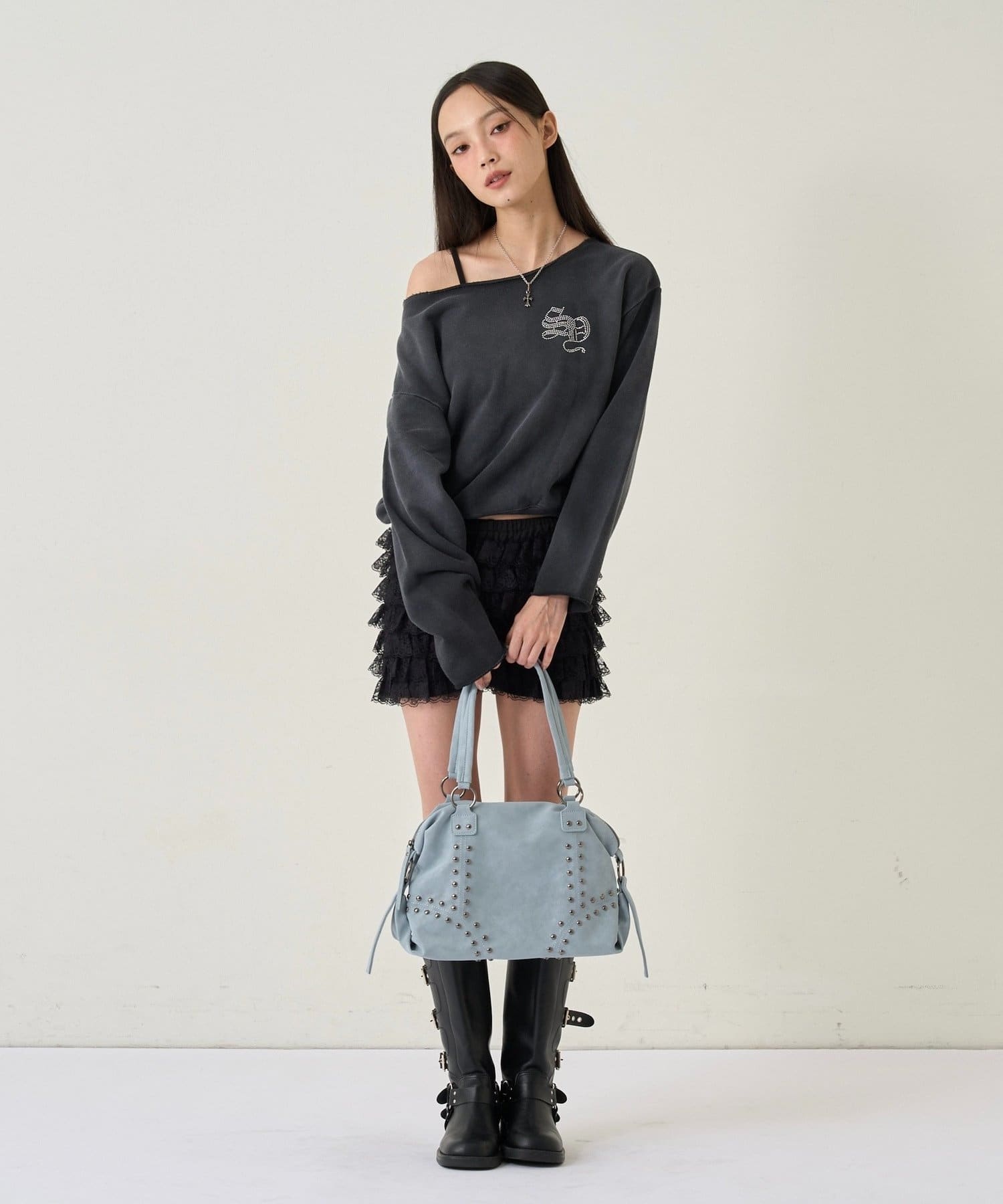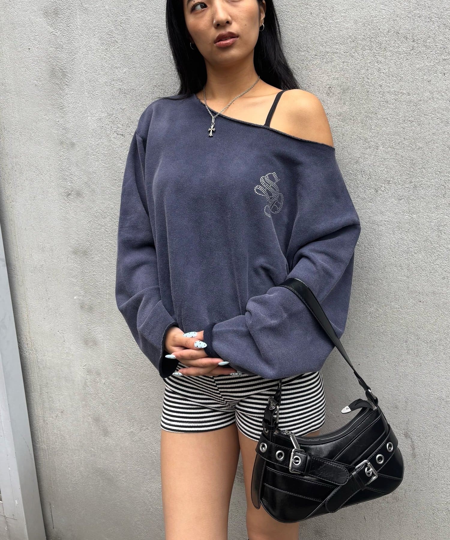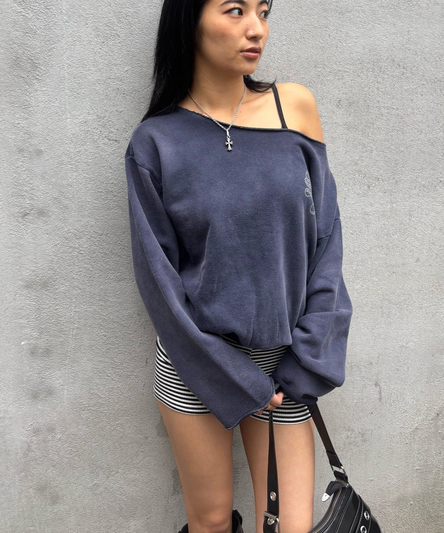 【WHO'S WHO gallery】ラインストーンオフショルスウェット