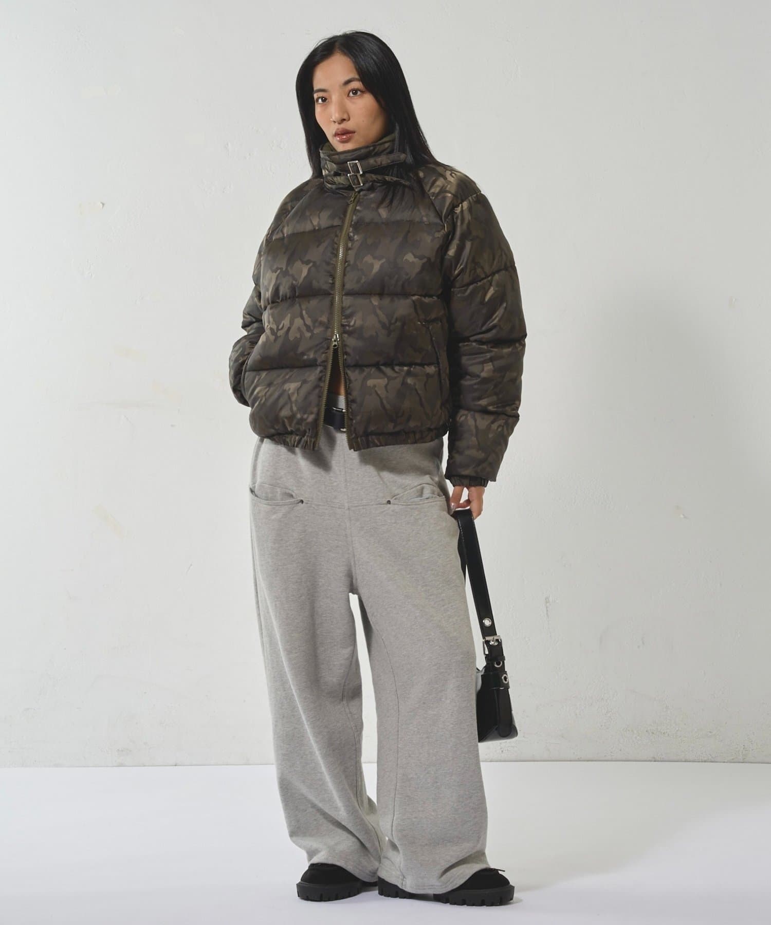 • 160cm/骨格ナチュラル/Mサイズ着用BT:スクエアベルトPT:スラッシュポケットイージースウェットパンツ