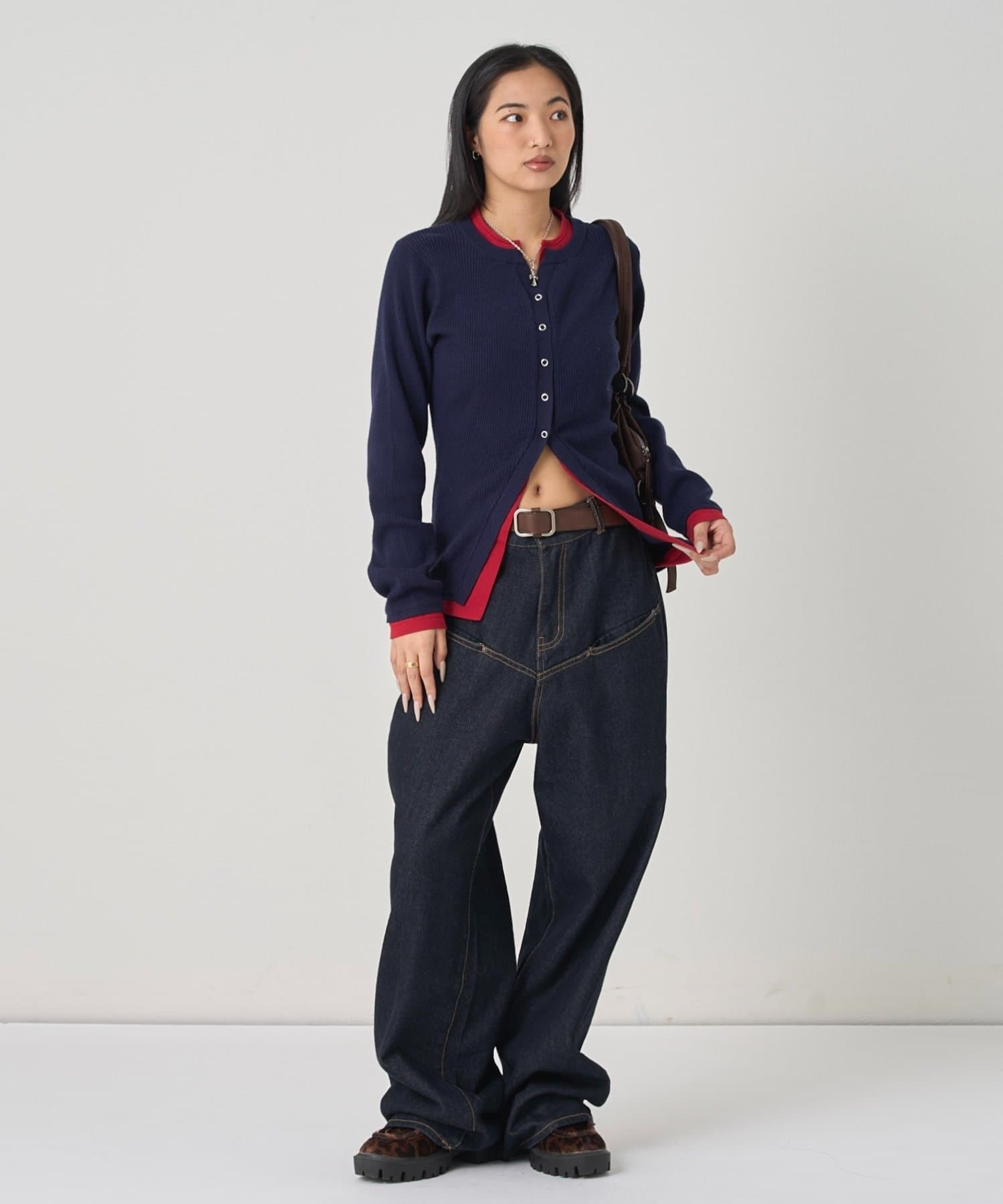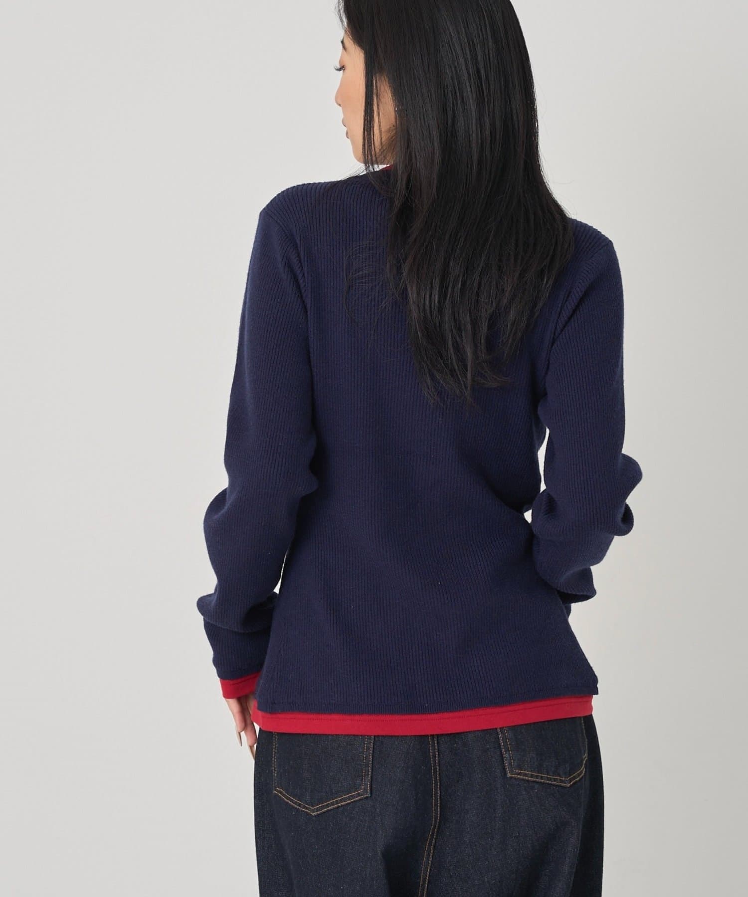重ね着風デザインで、一枚で着映え。大人のこなれ感を演出する、レイヤードヘンリーナローカーデ