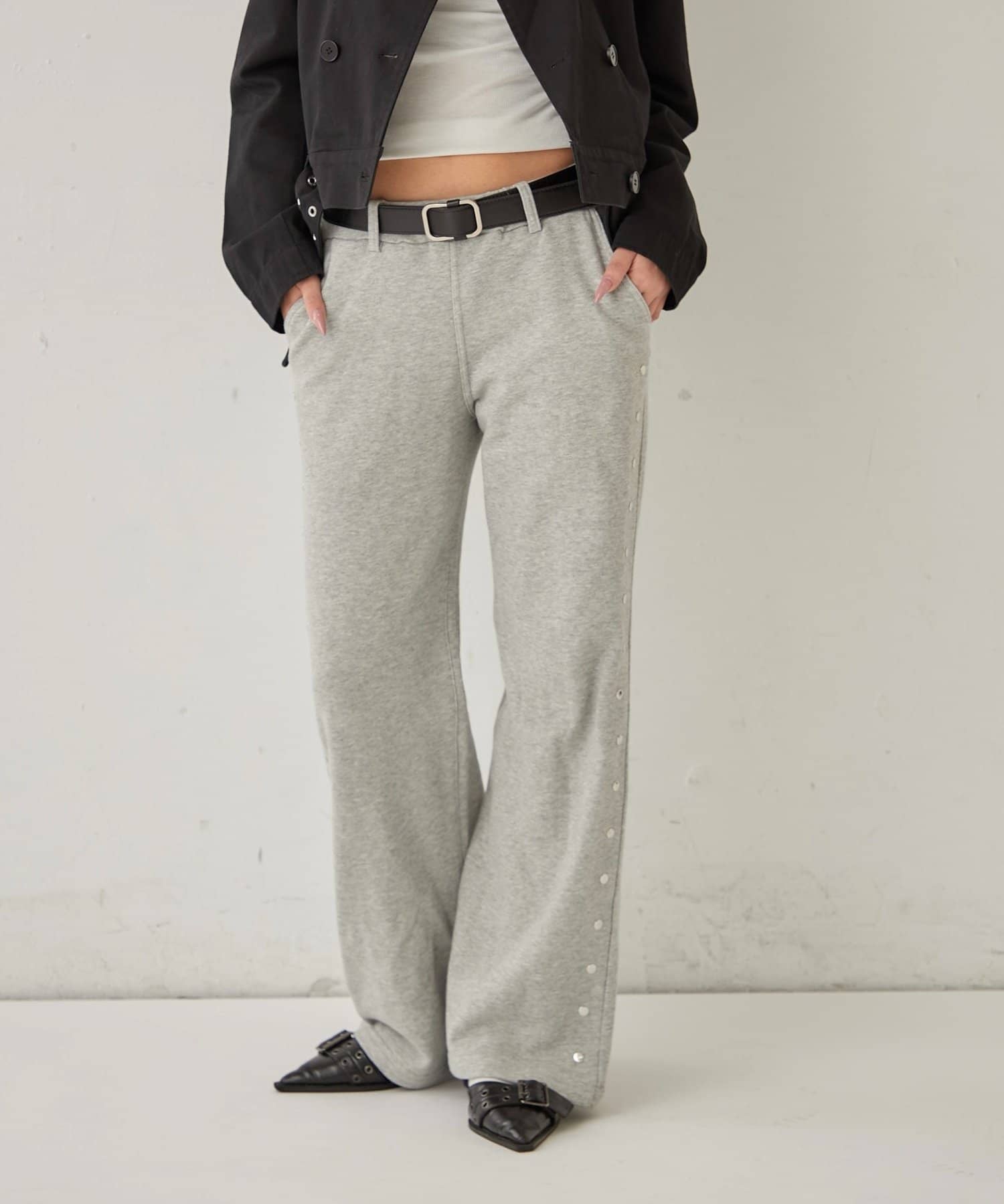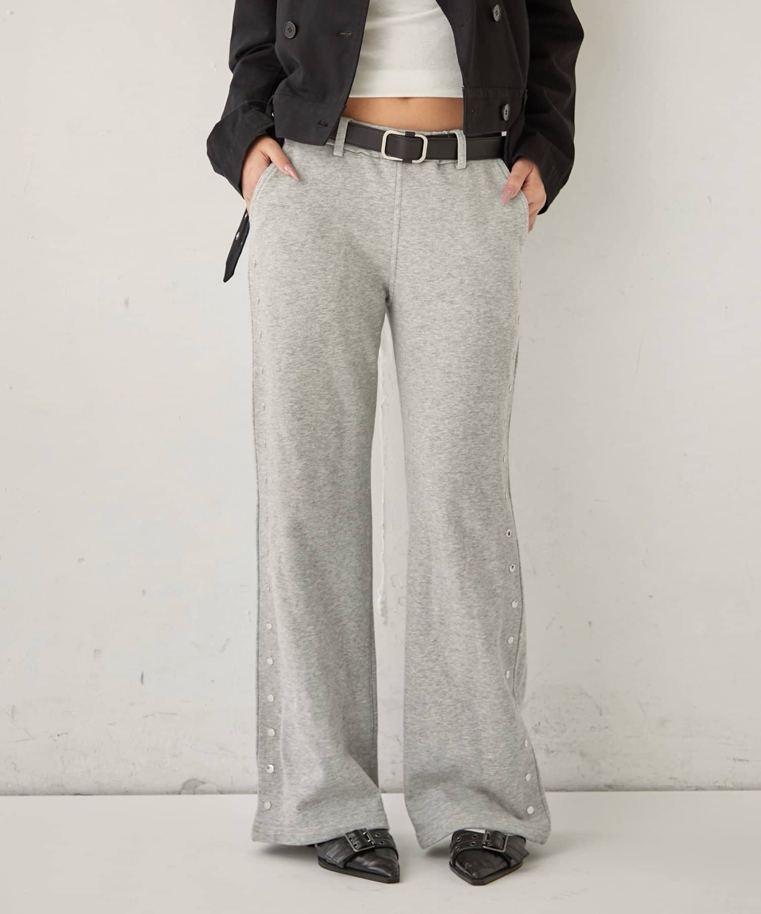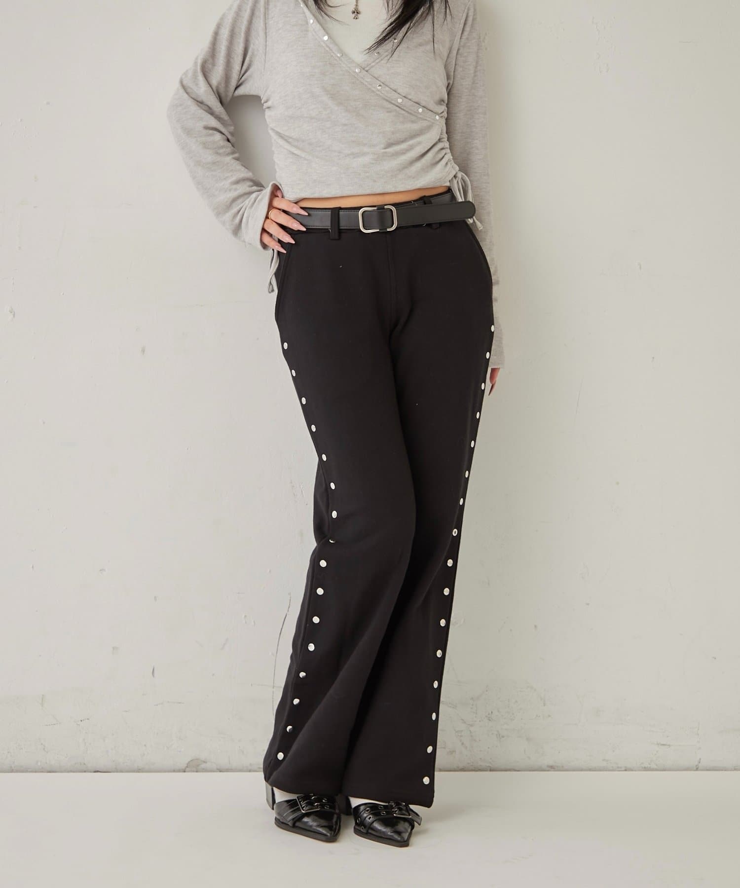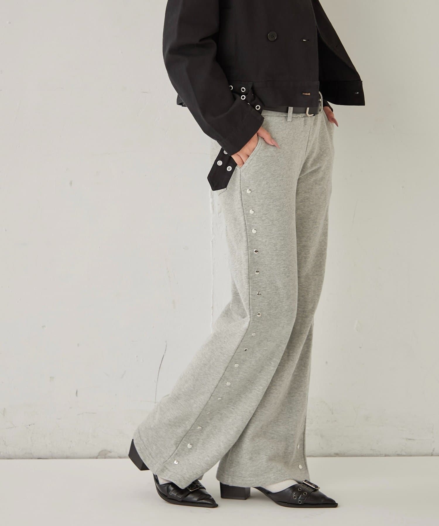 【STUDDED SWEAT MIDI FLARE PANTS/スウェットミディフレアスタッズパンツ】