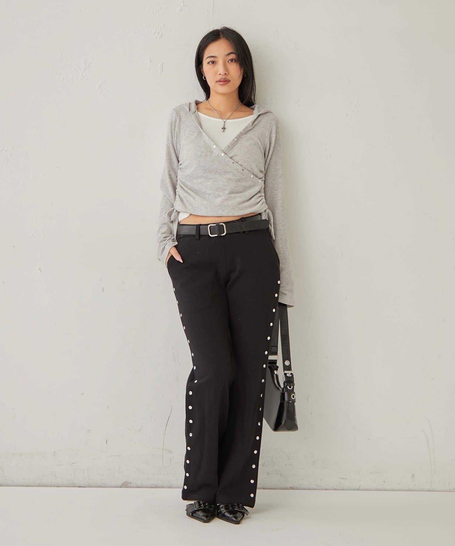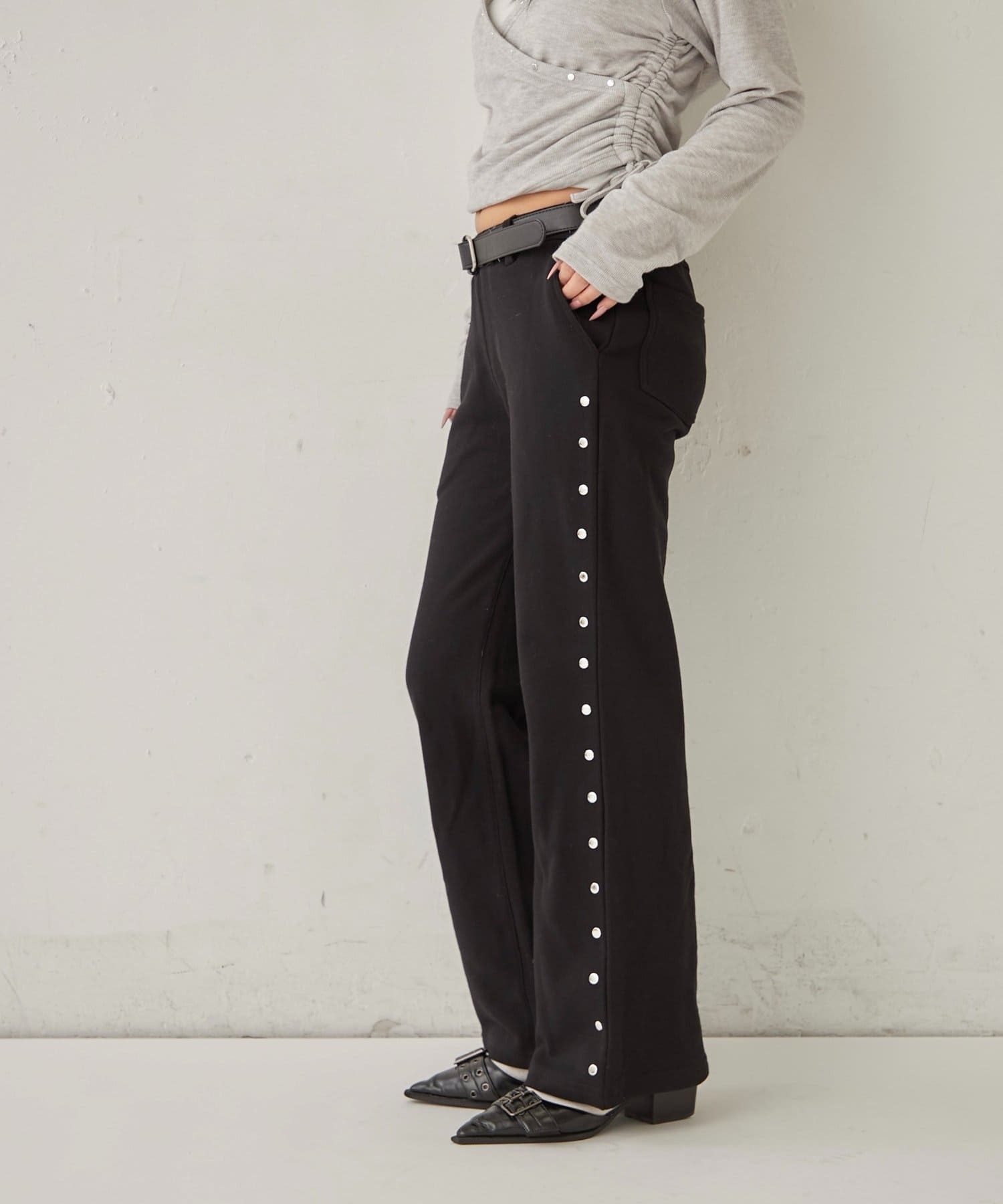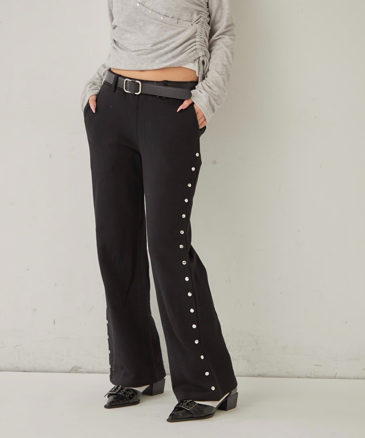 【STUDDED SWEAT MIDI FLARE PANTS/スウェットミディフレアスタッズパンツ】