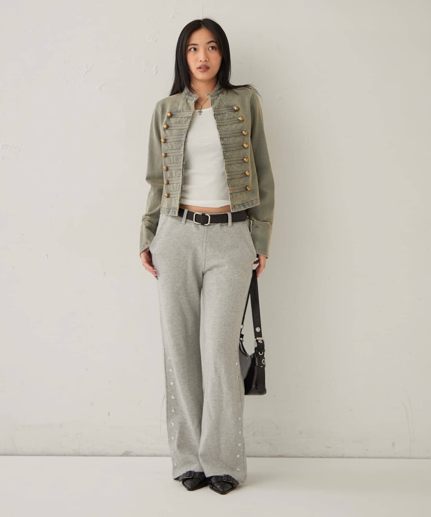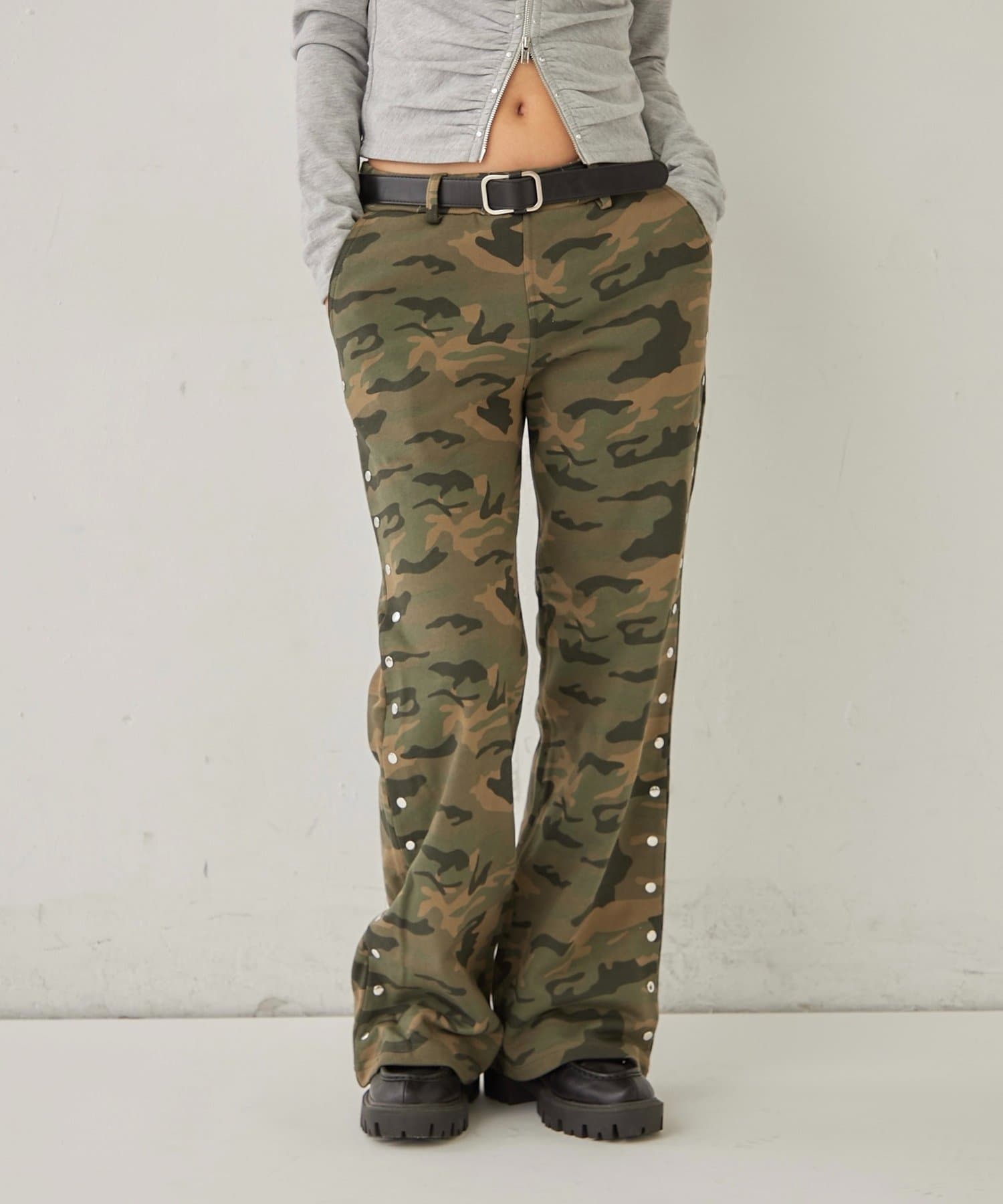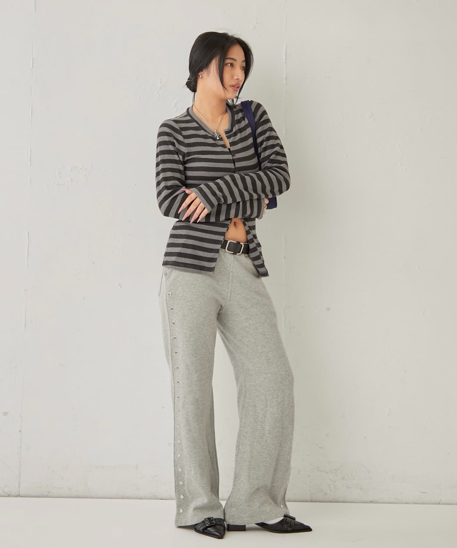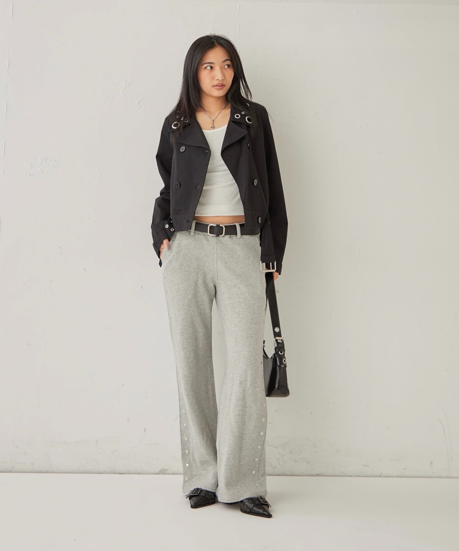 【STUDDED SWEAT MIDI FLARE PANTS/スウェットミディフレアスタッズパンツ】