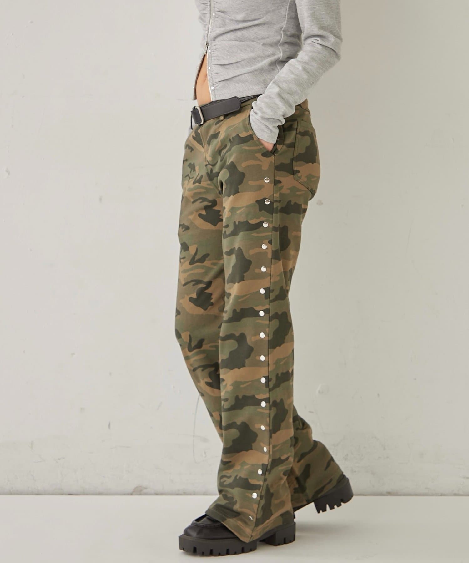 【WHO'S WHO gallery】スウェットミディフレアスタッズパンツ