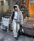 ・ スウェットやジップパーカー合わせで、定番のカジュアルスタイル。