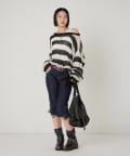 ・ニット + ブーツやスニーカーミュールで大人っぽく。