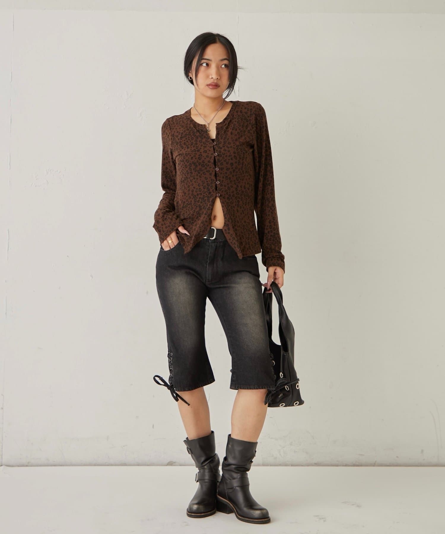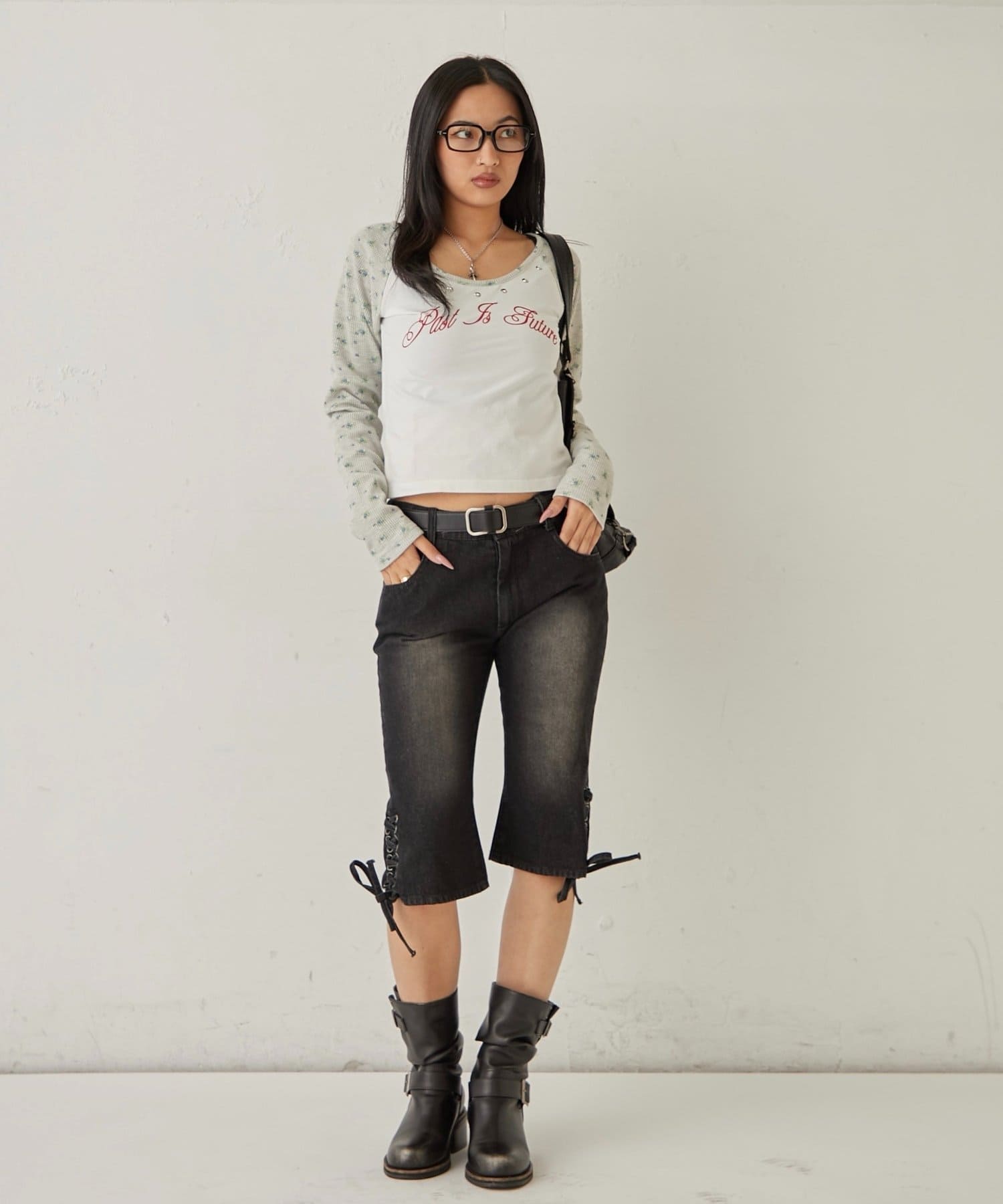 ・クロップド丈なので、スニーカーやサンダル、ブーツなど様々なシューズと相性抜群。