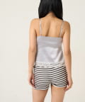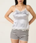 ・光沢が美しいサテン生地に、繊細な刺繍ロゴをあしらったスリップキャミソール。