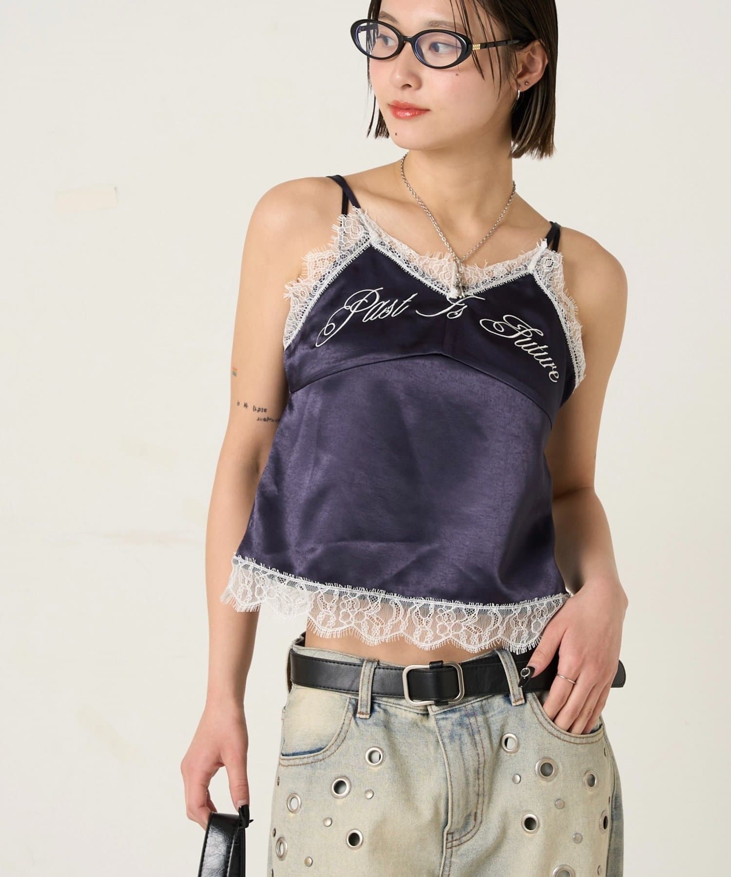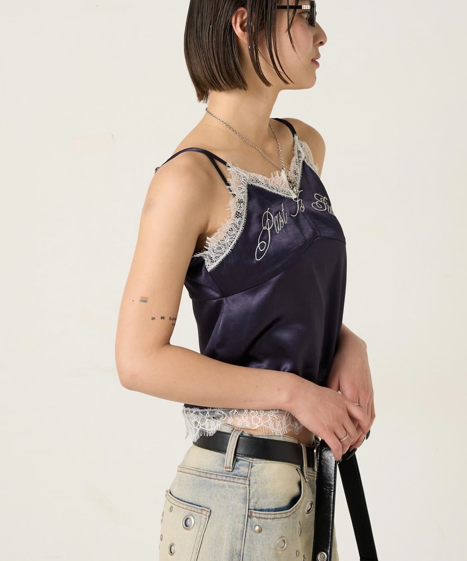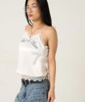 EMBROIDERED LOGO SATIN SLIP CAMI/刺繍ロゴサテンスリップキャミ