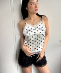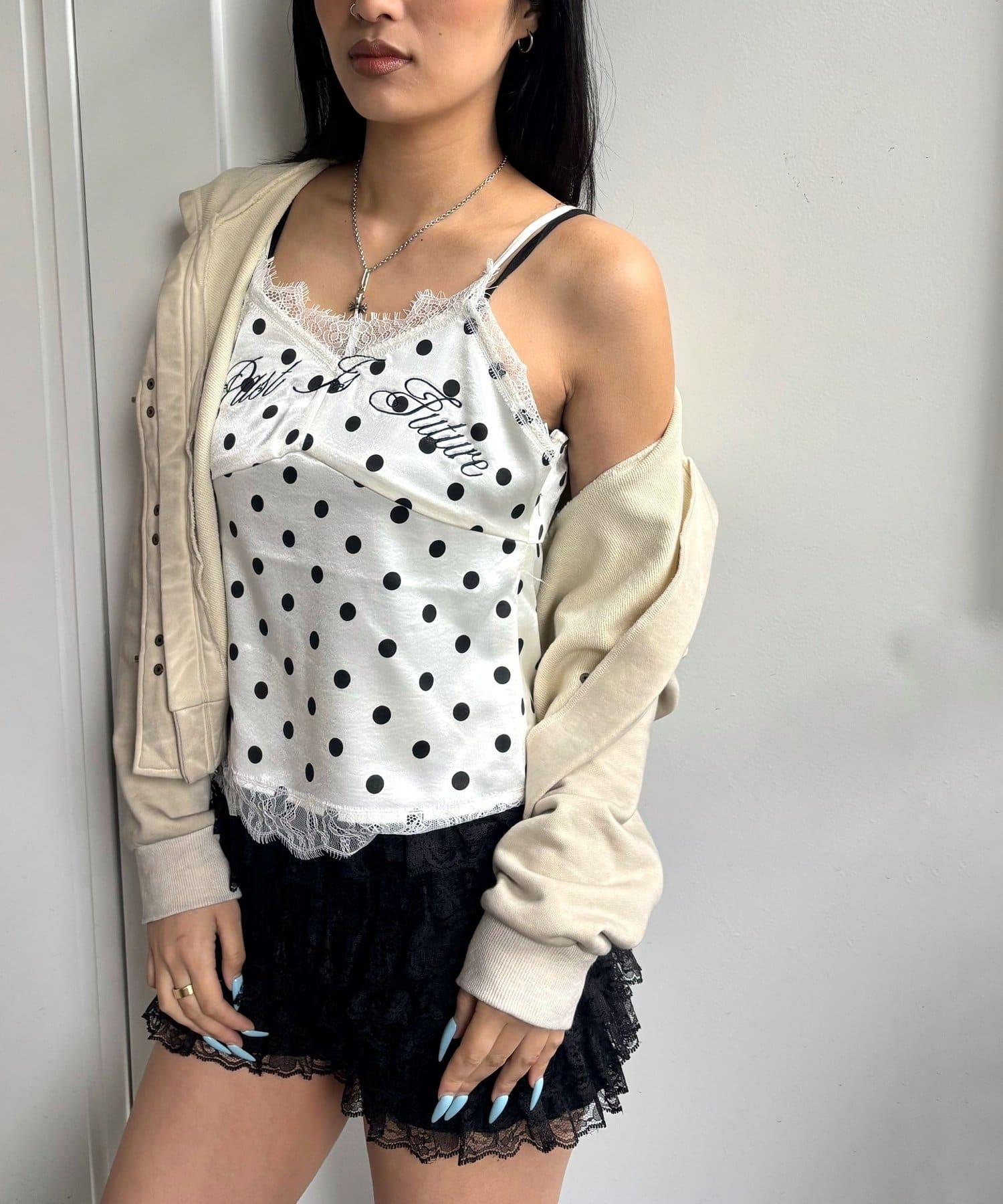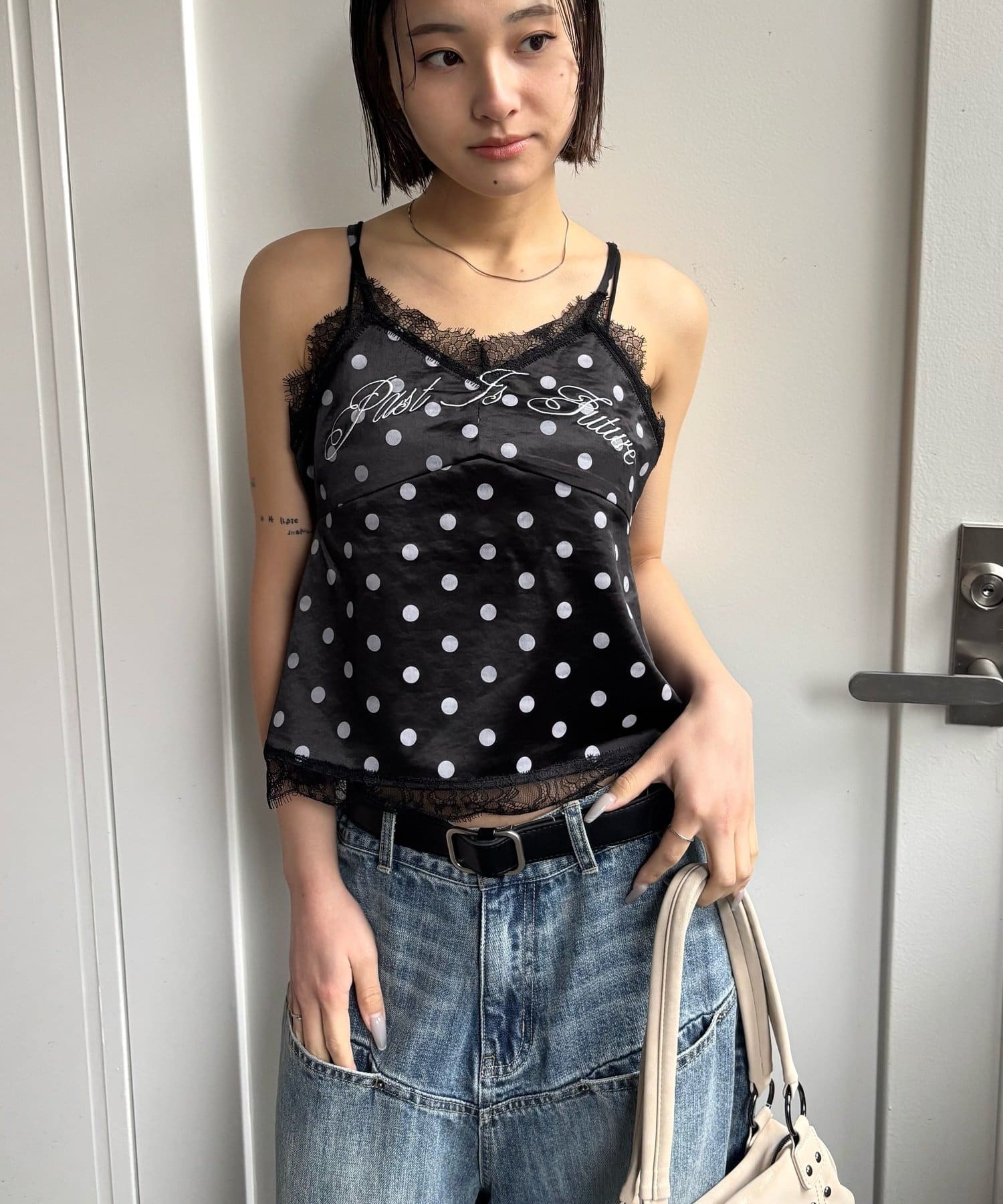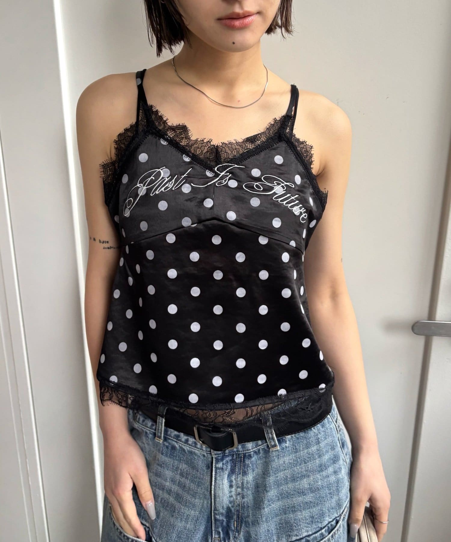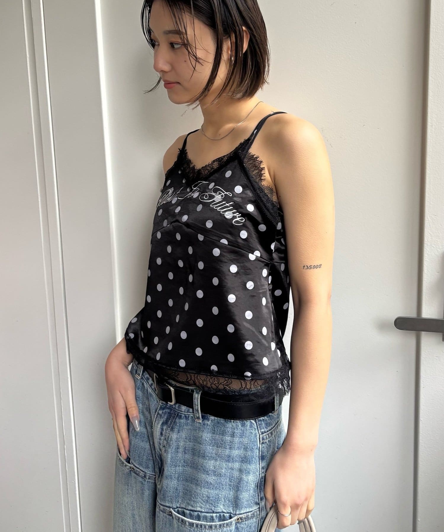 刺繍ロゴサテンスリップキャミ