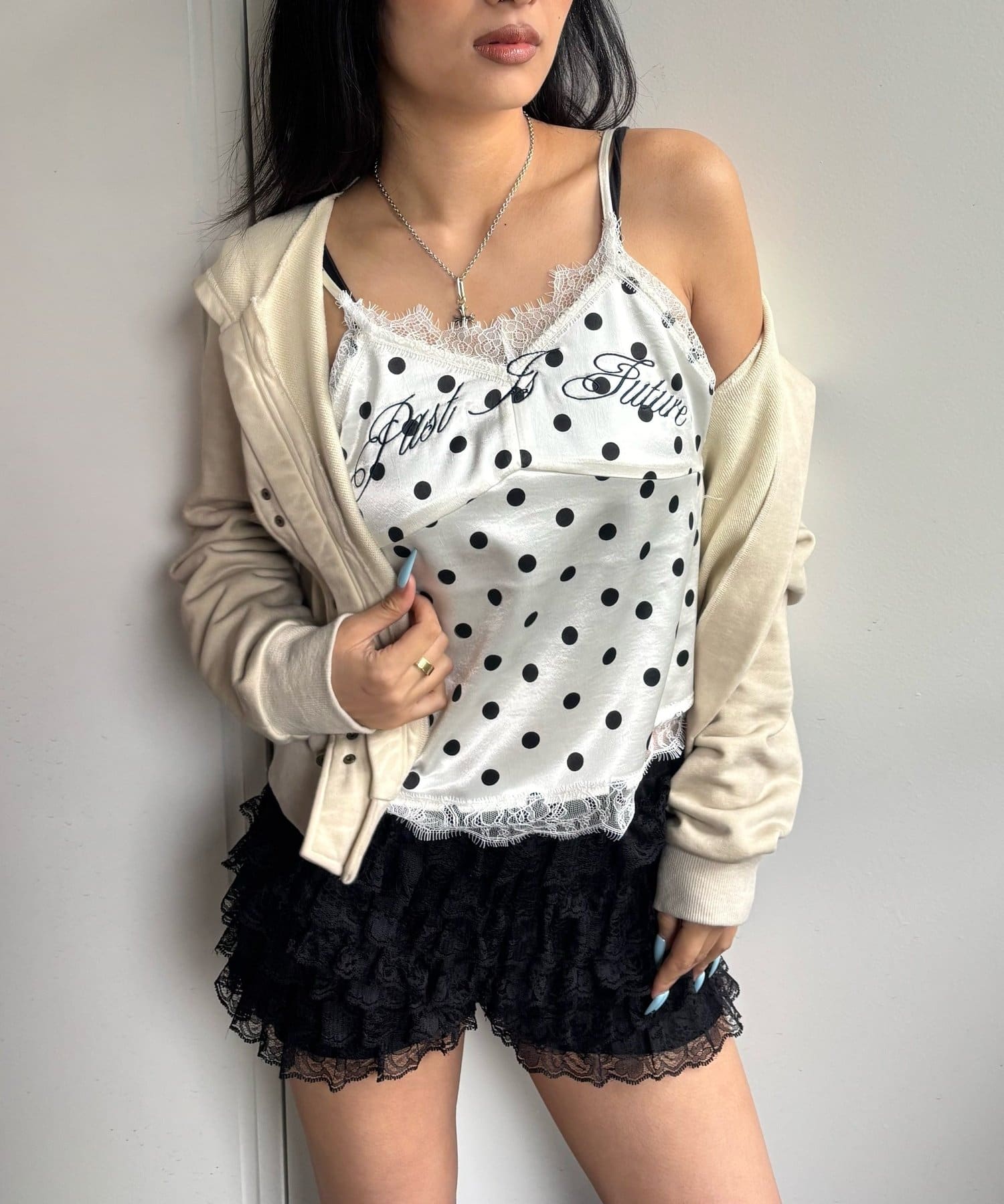 アウターの下やトップスの下にレイヤードすることでコーディネートがマンネリ化することなく着れるキャミです。