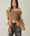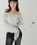 ・トレンドのオフショルダーデザインに、アシンメトリーな裾が目を引くブラウス。