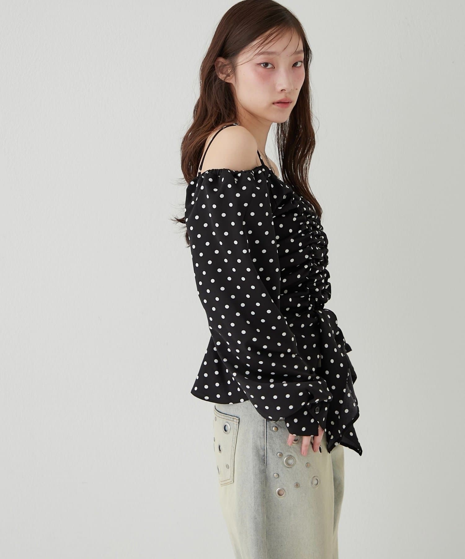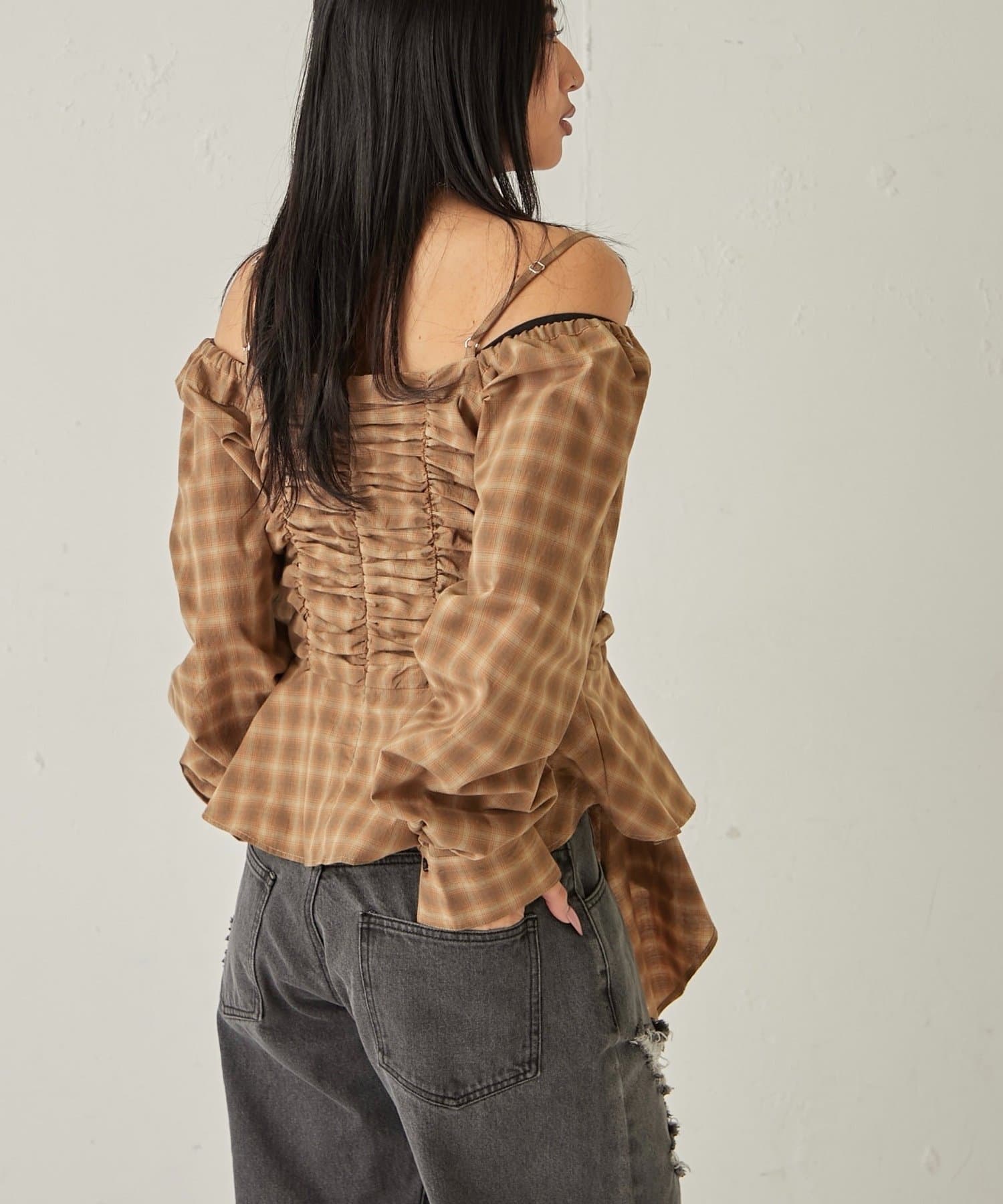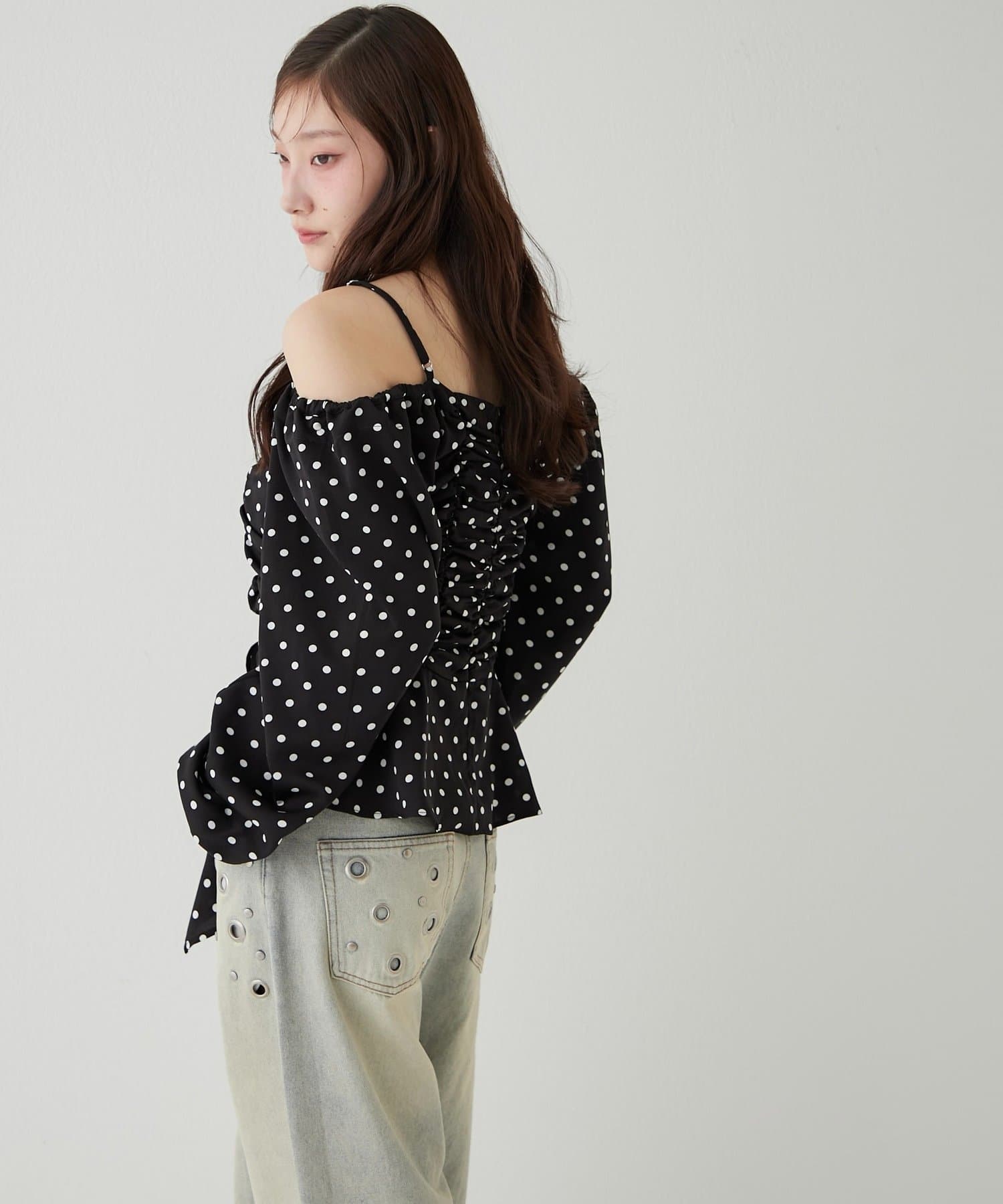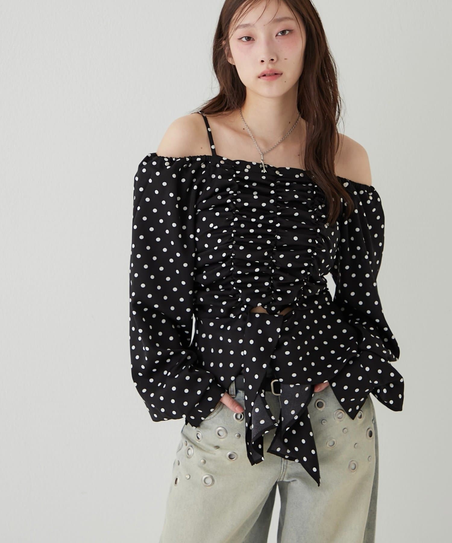イレヘムギャザーオフショルブラウス