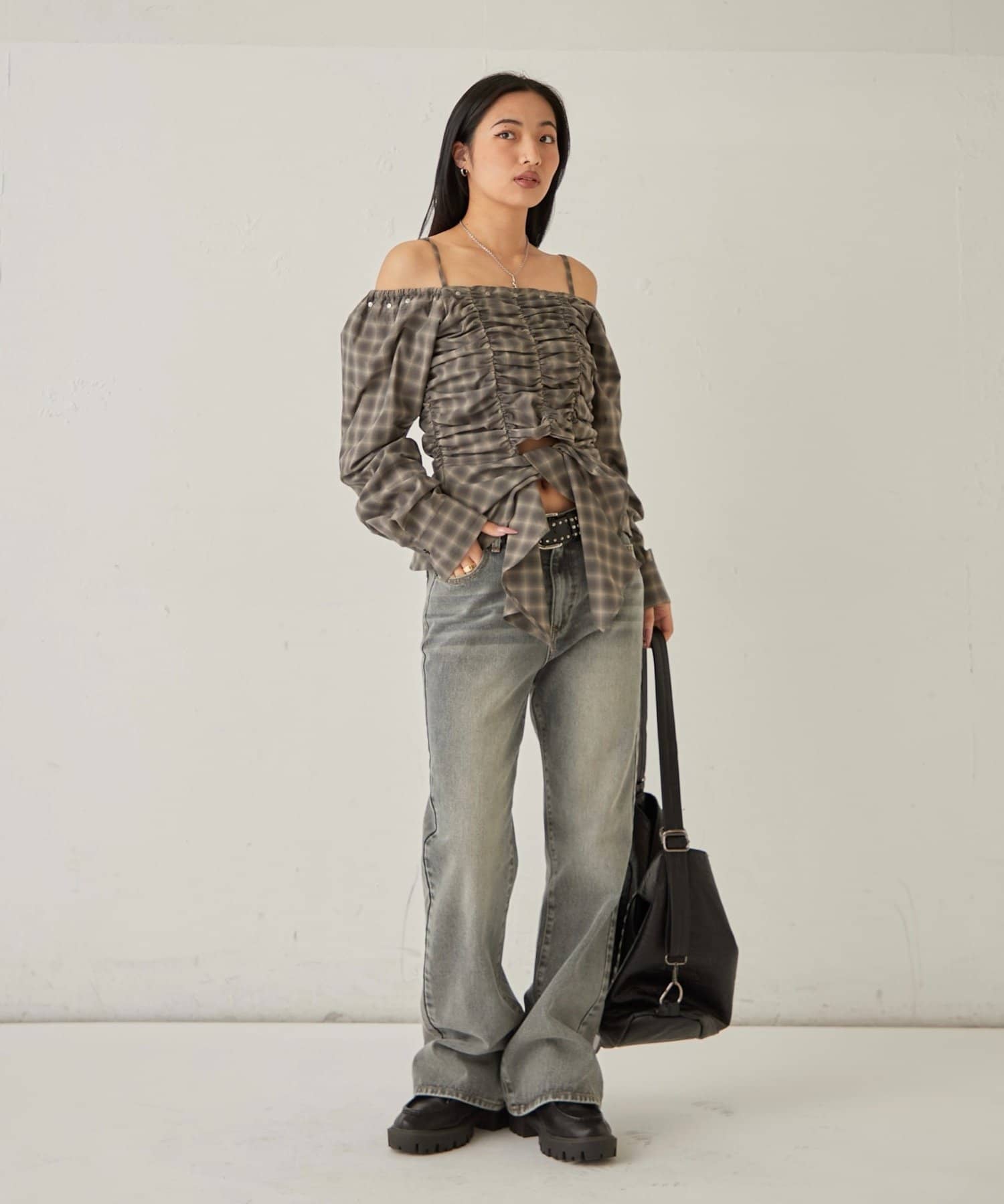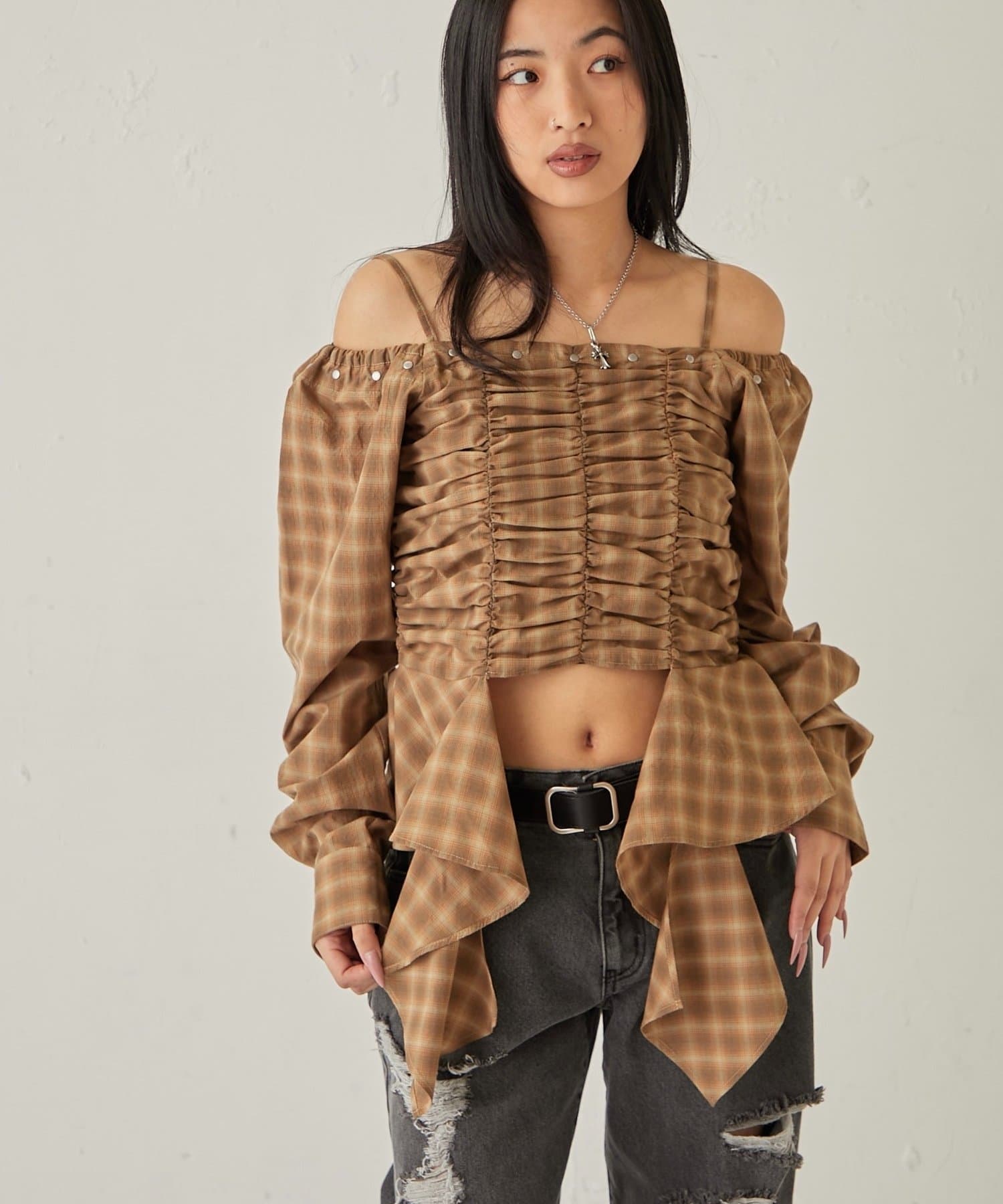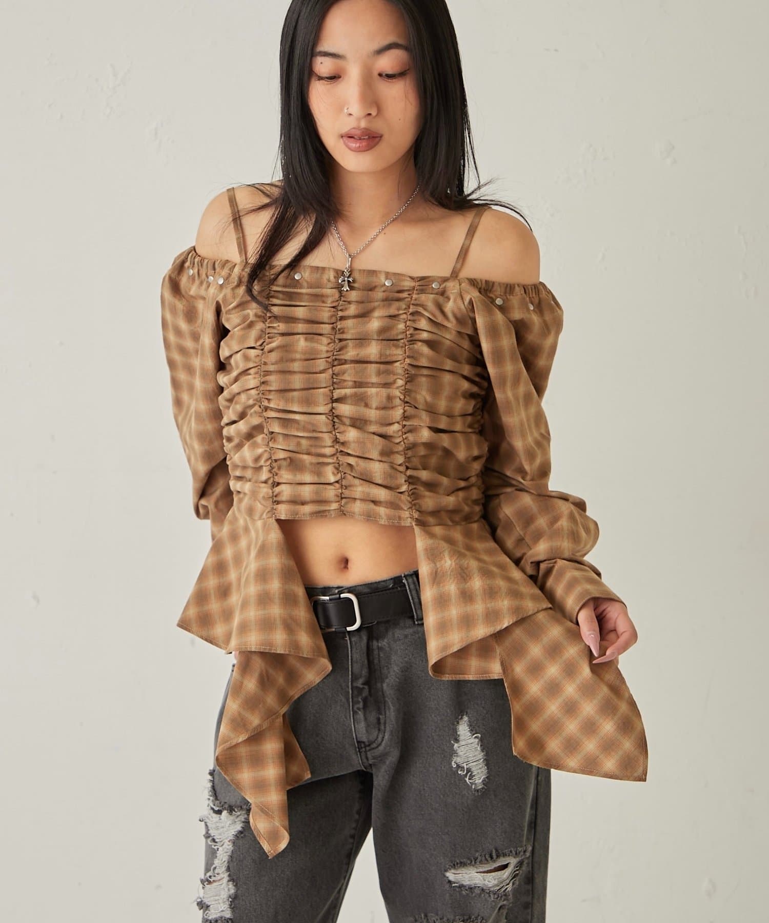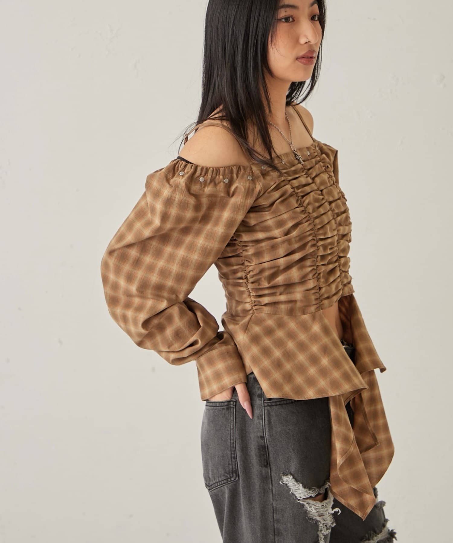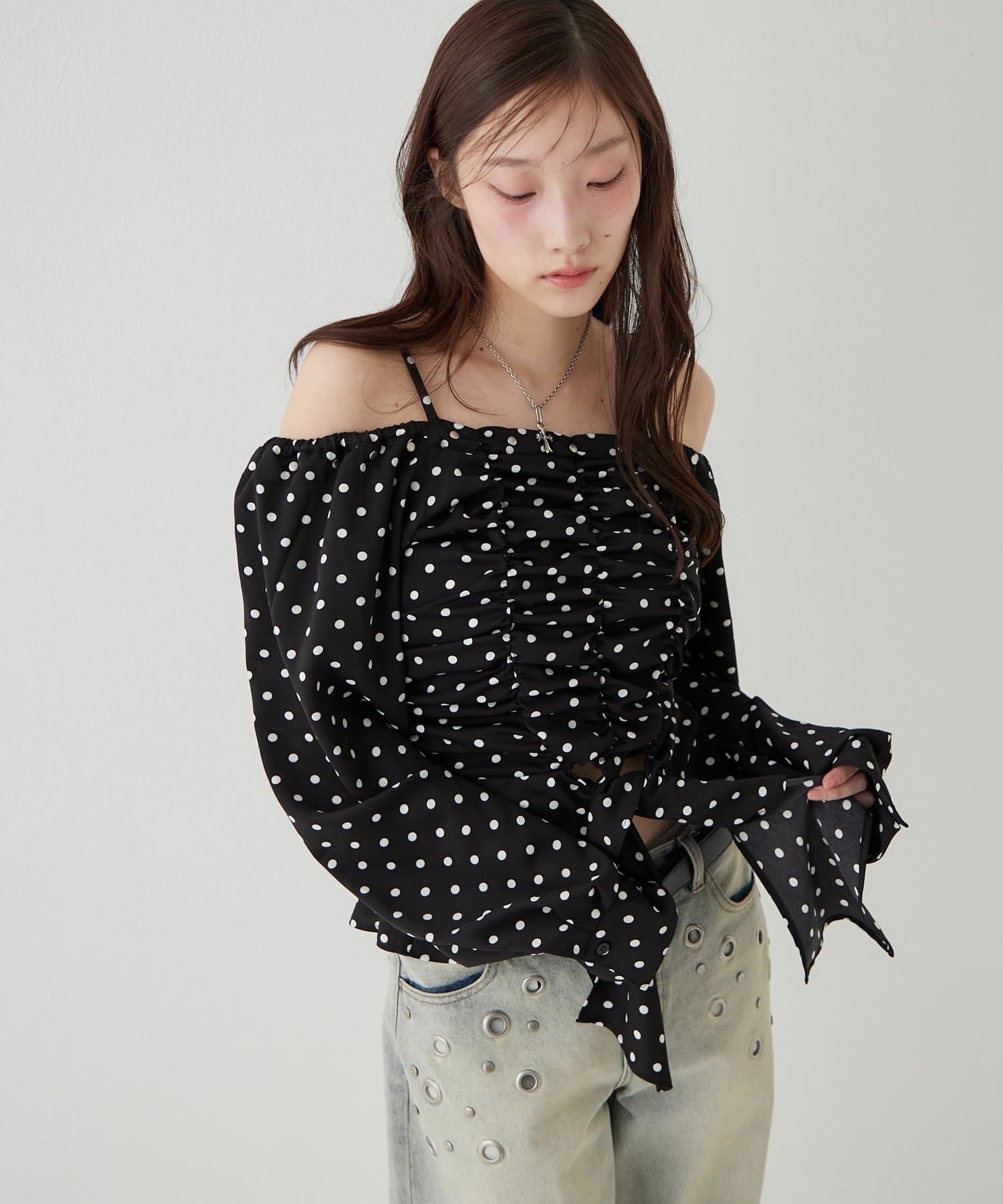 イレヘムギャザーオフショルブラウス