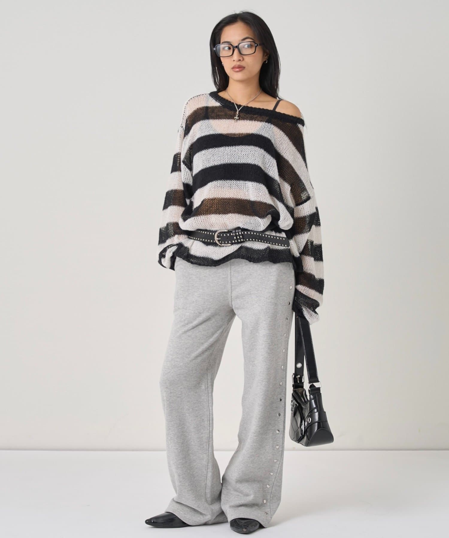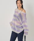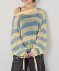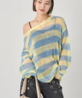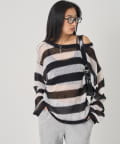 大胆ボーダーで、抜け感カジュアルなニットトップス