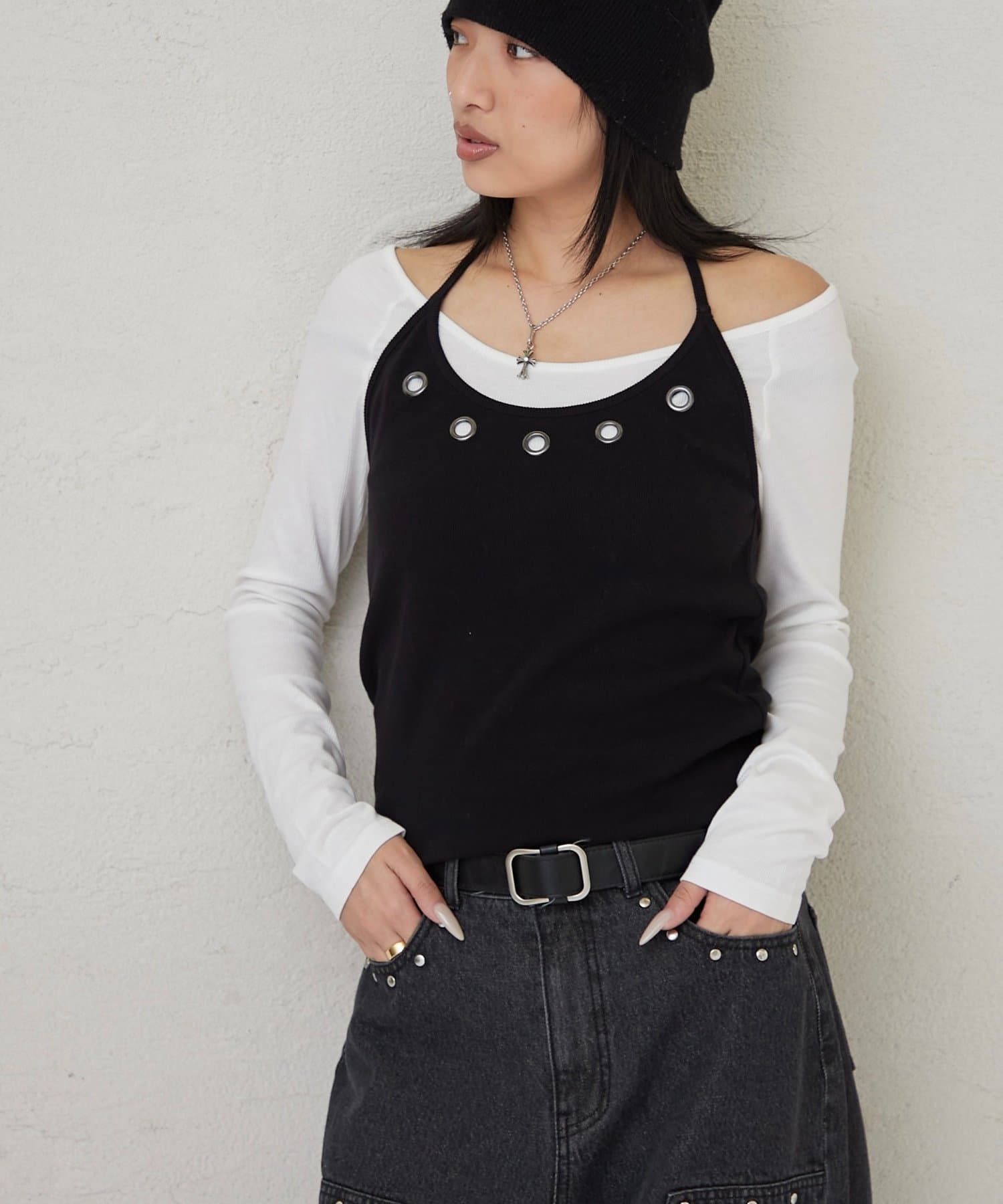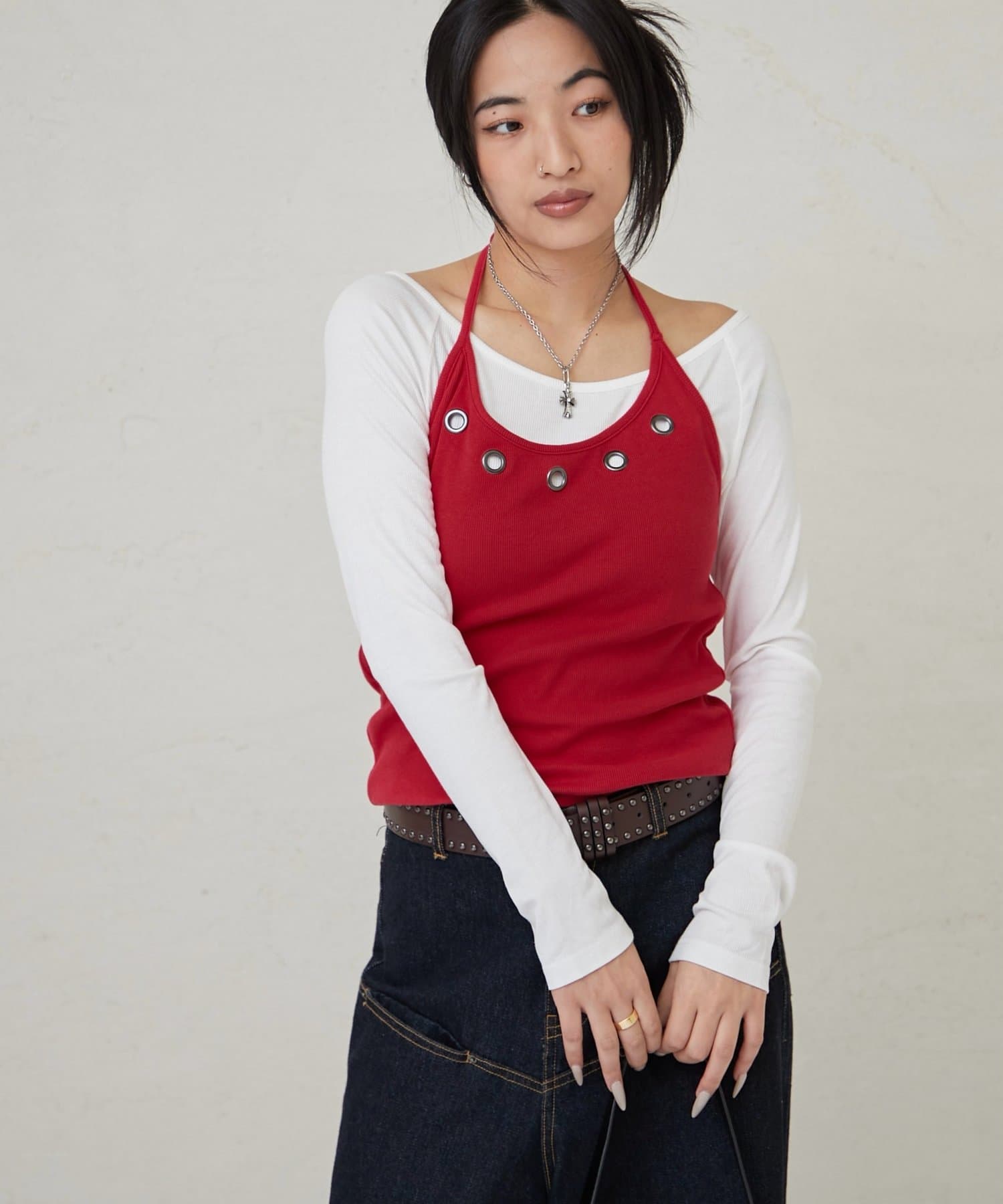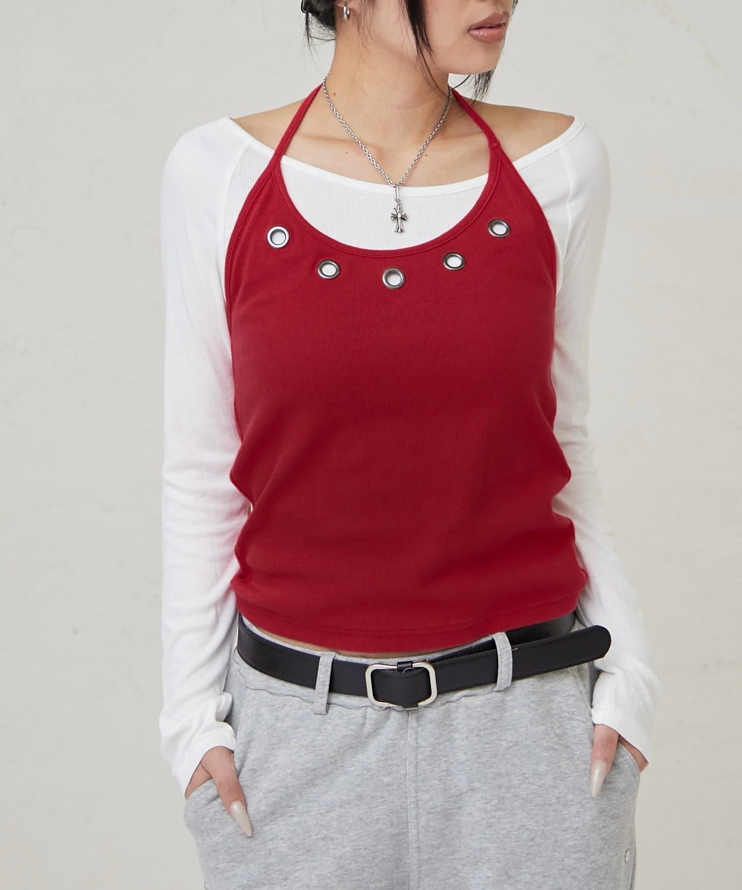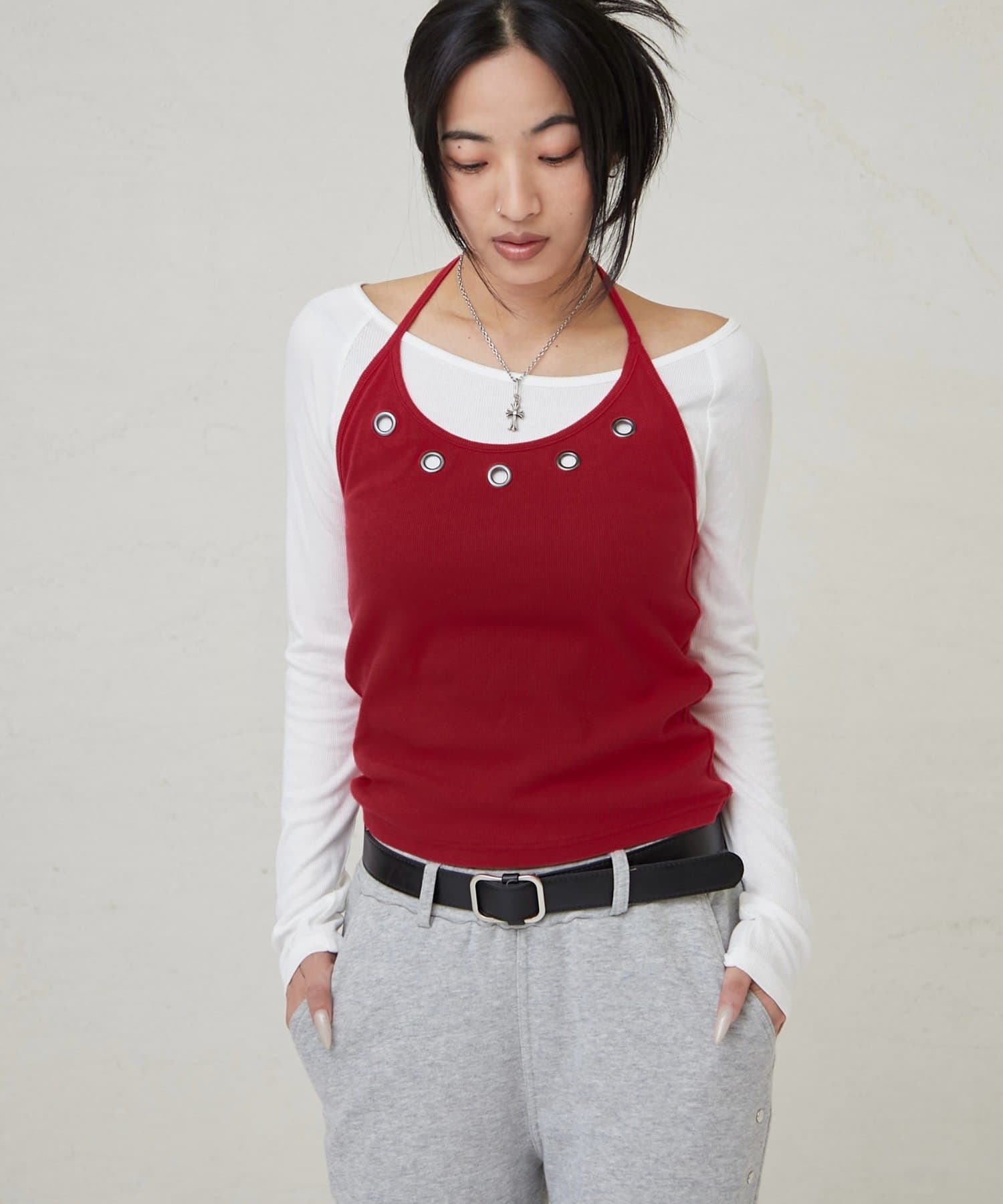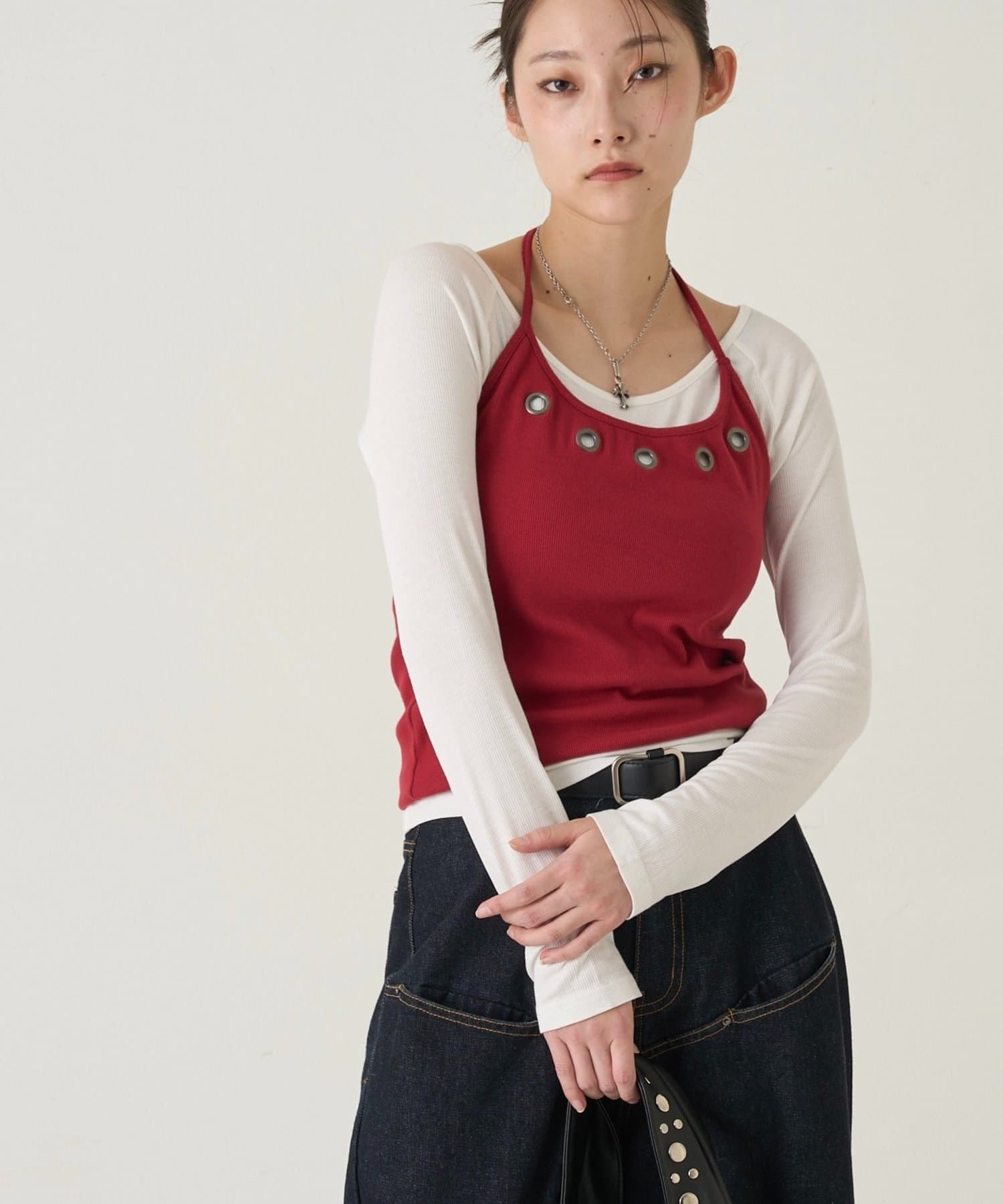 EYELET HALTER LAYERED TOPS/アイレットホルターレイヤードトップス