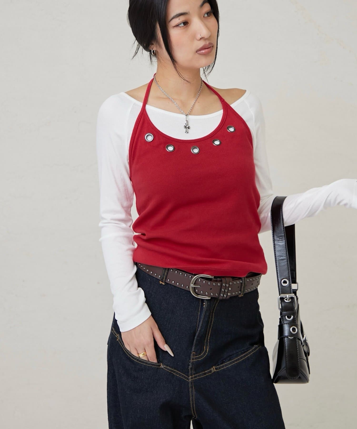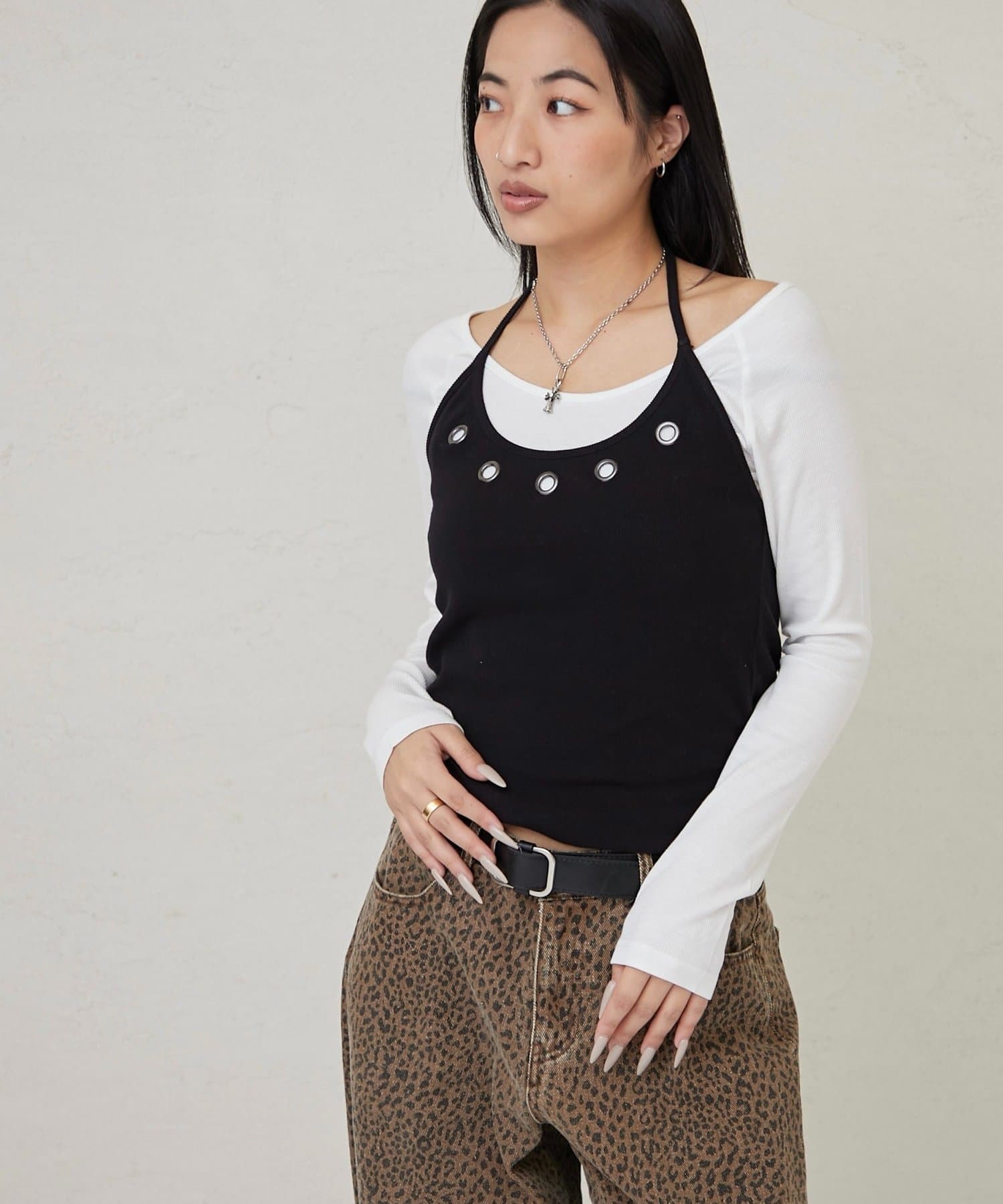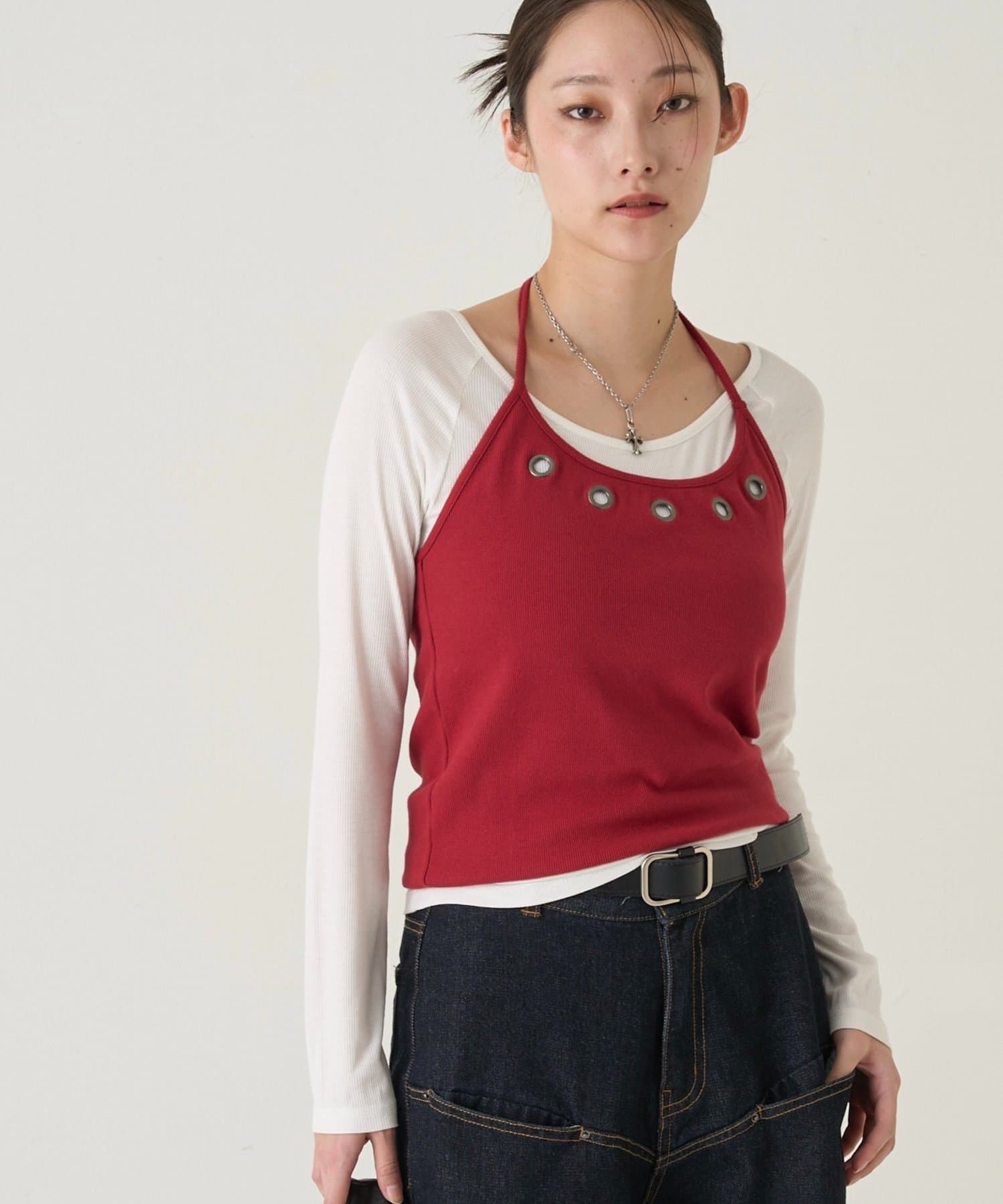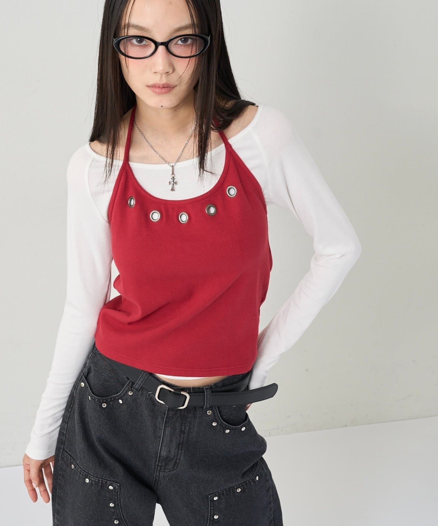 EYELET HALTER LAYERED TOPS/アイレットホルターレイヤードトップス