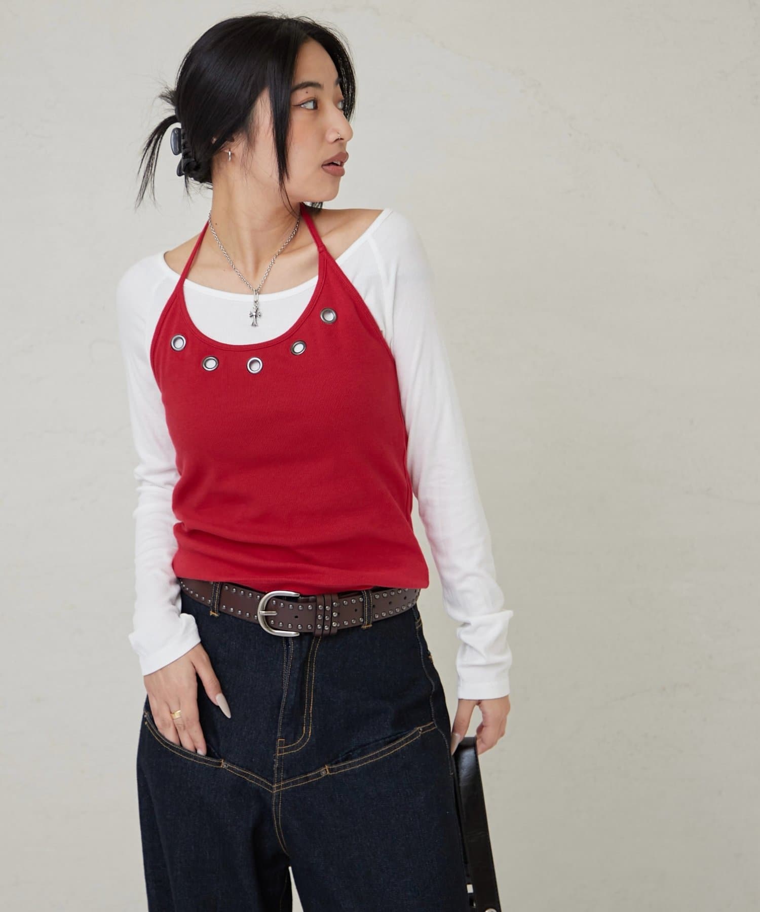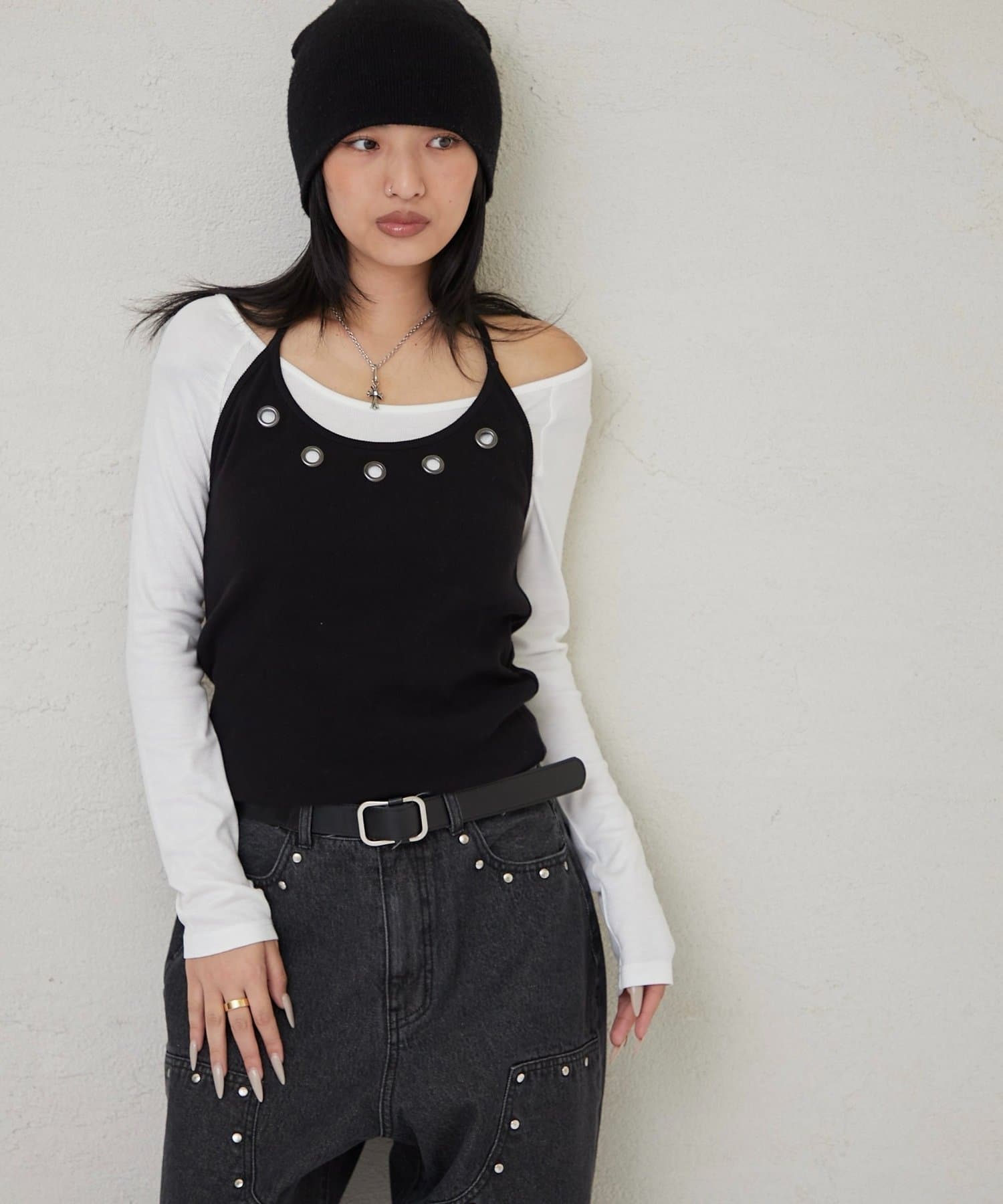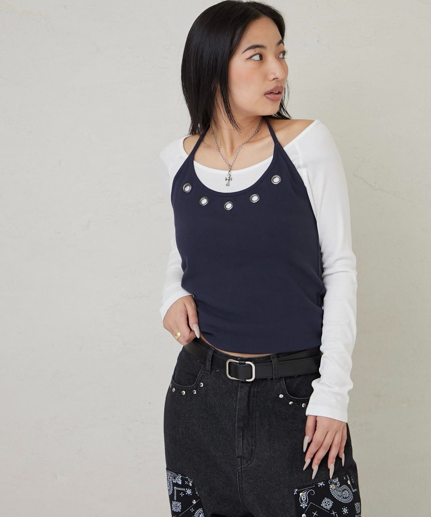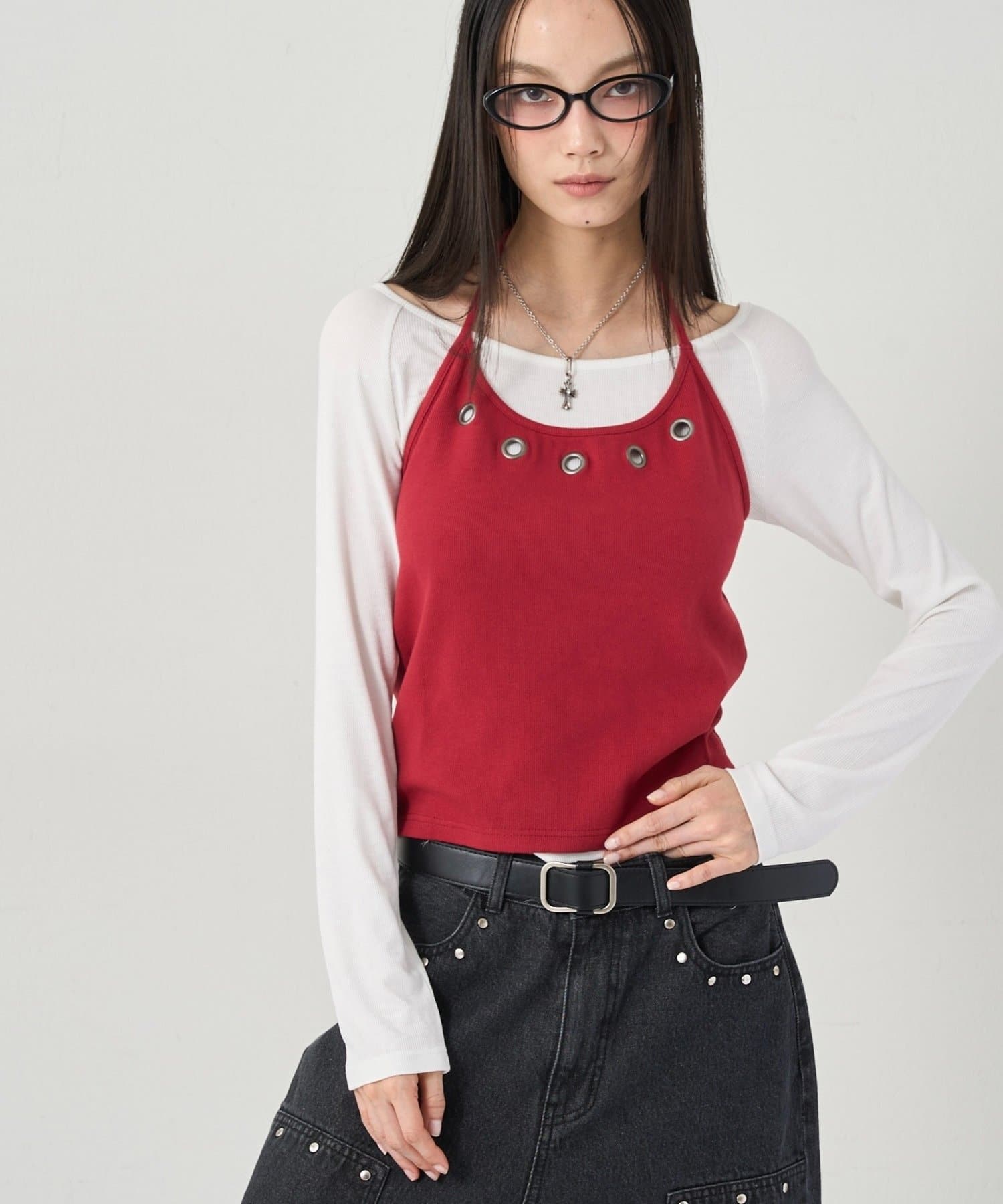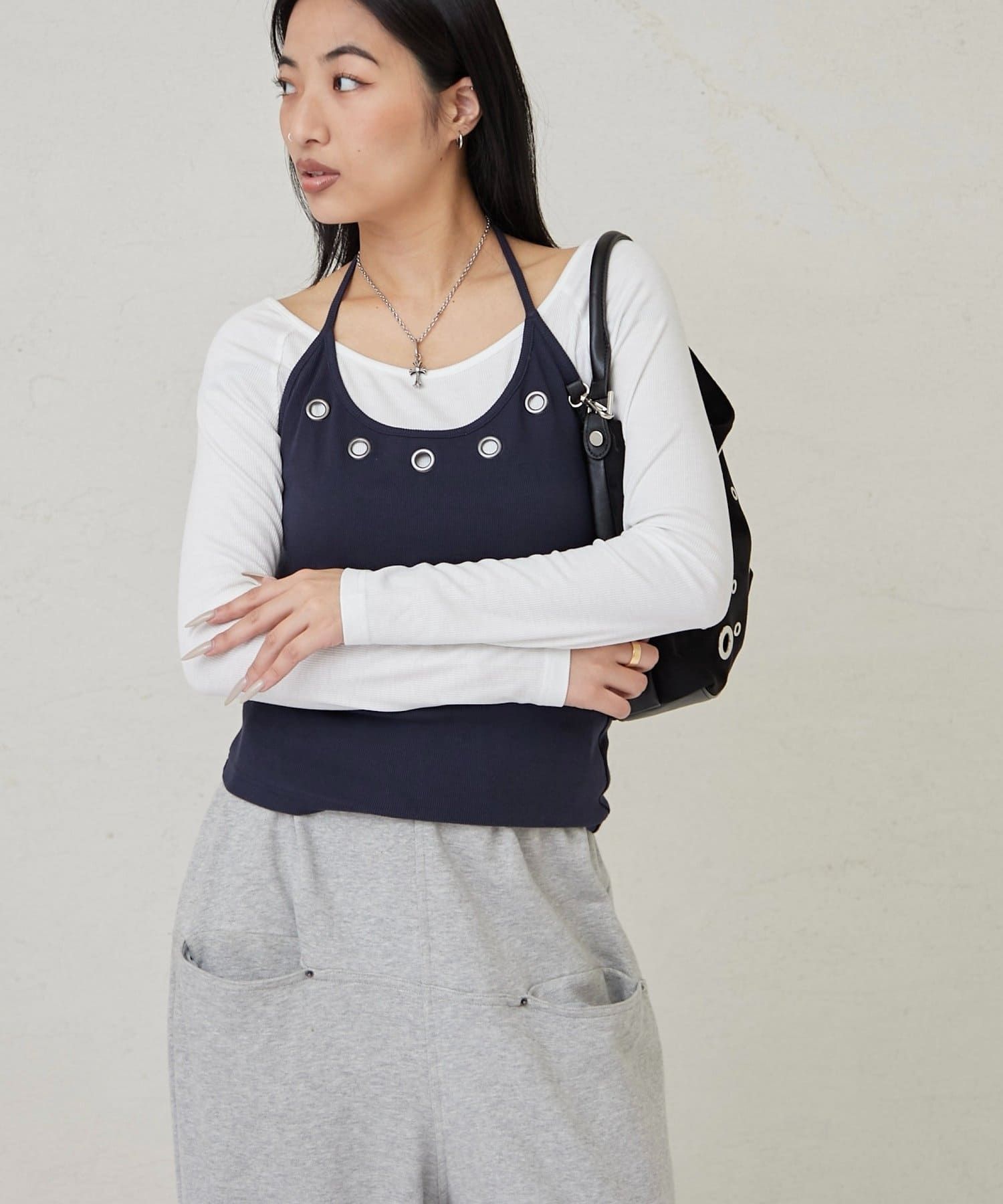 EYELET HALTER LAYERED TOPS/アイレットホルターレイヤードトップス