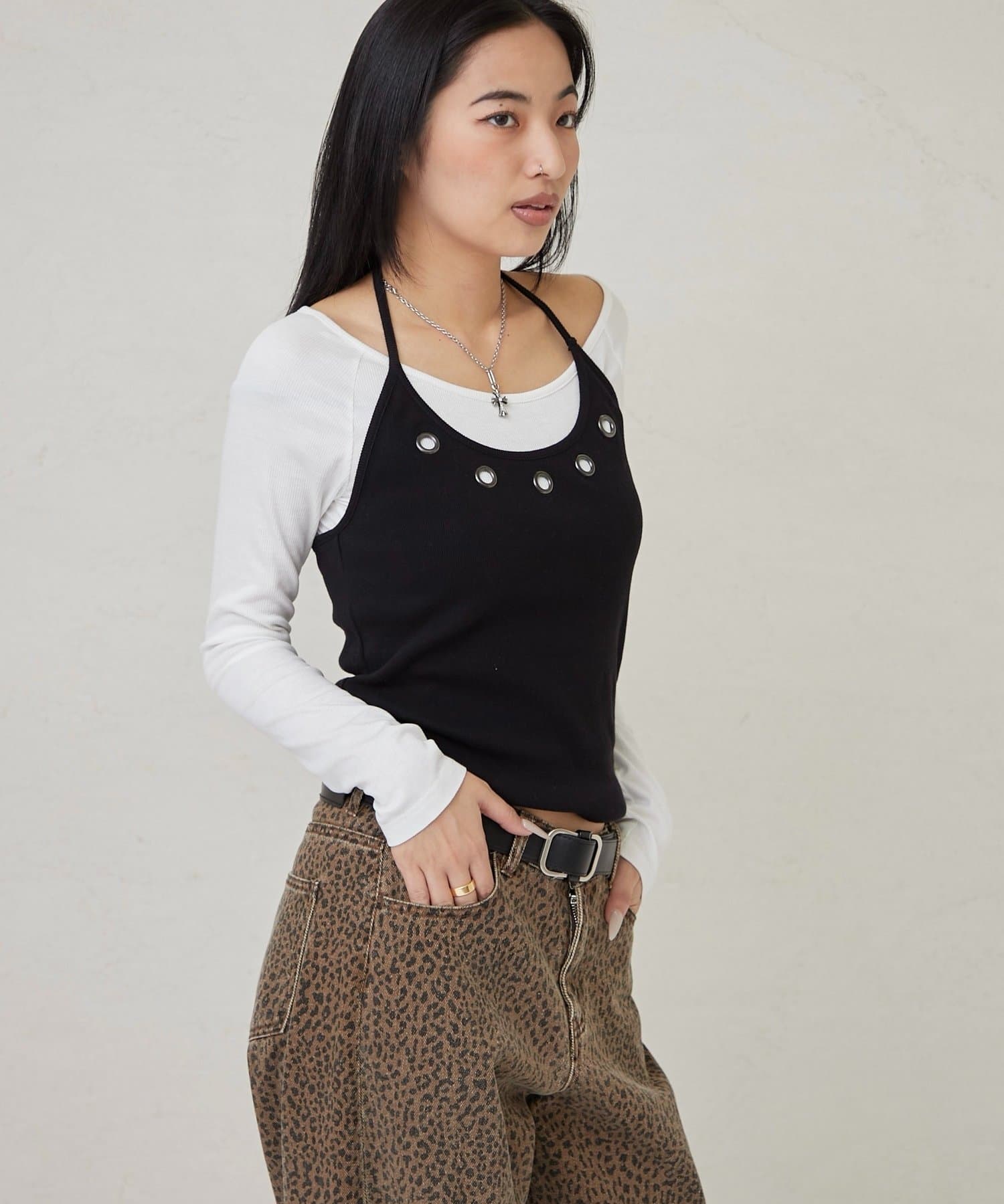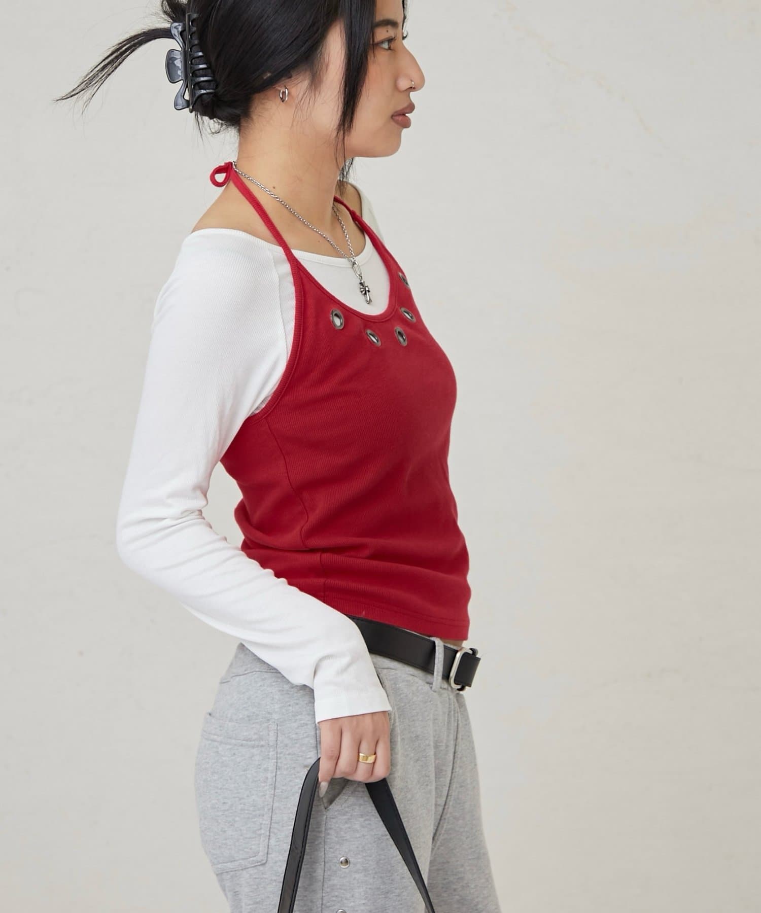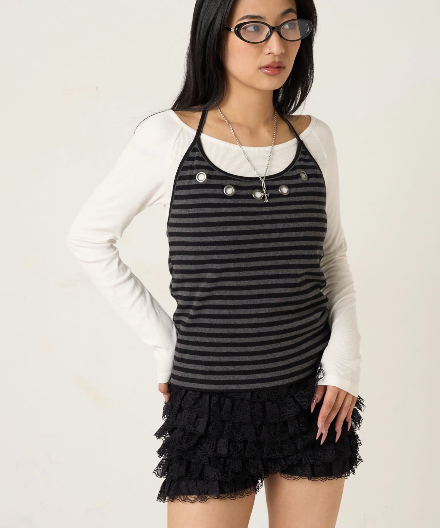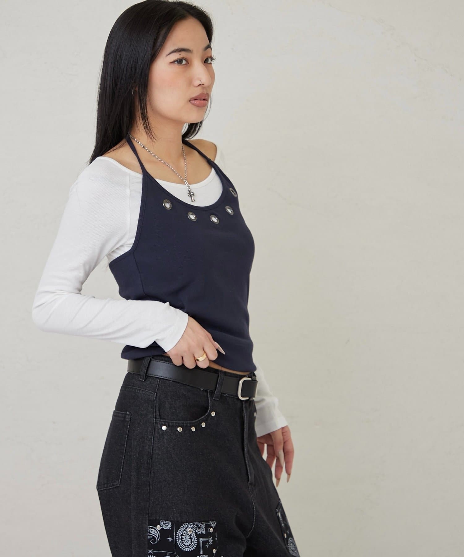 EYELET HALTER LAYERED TOPS/アイレットホルターレイヤードトップス