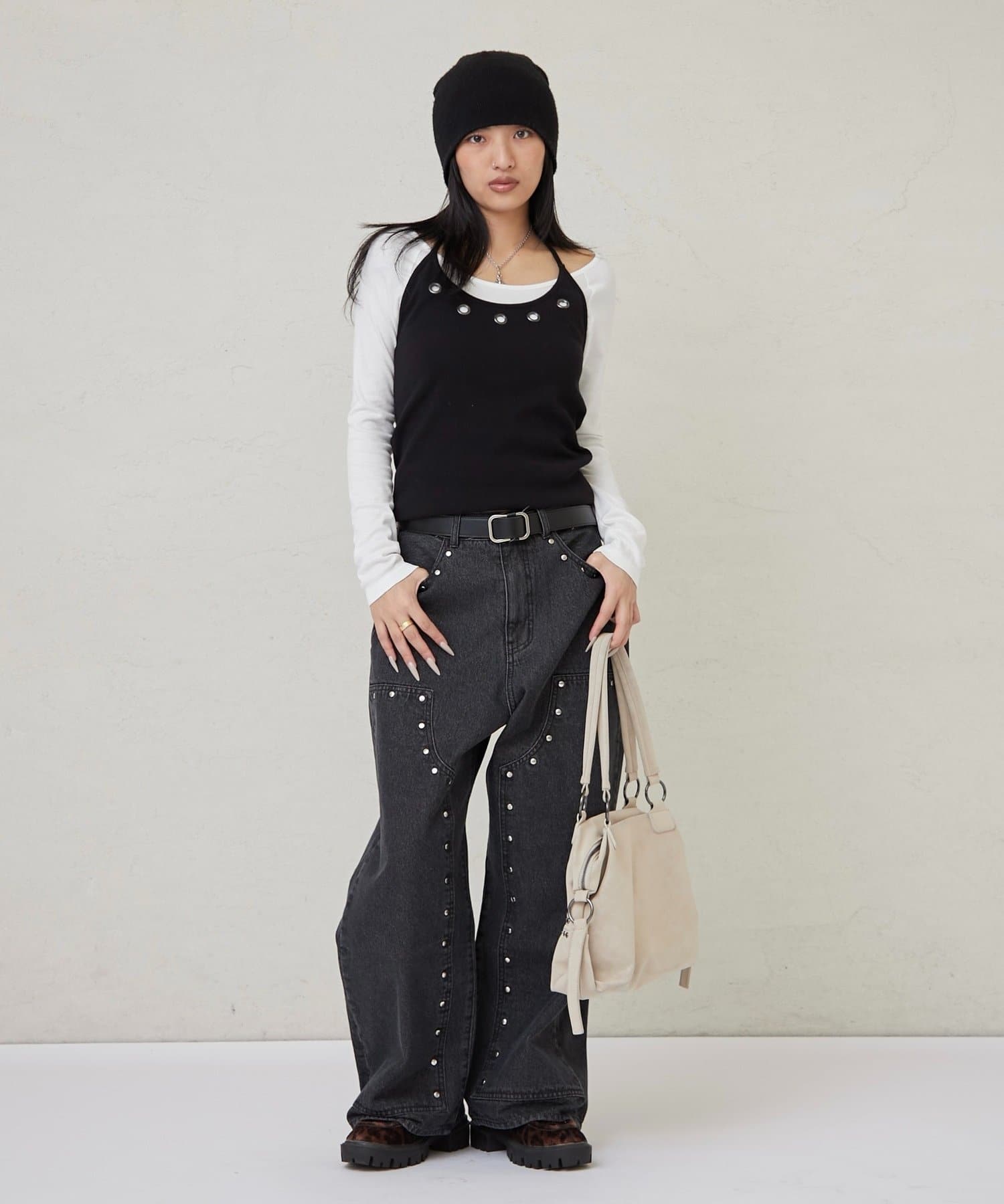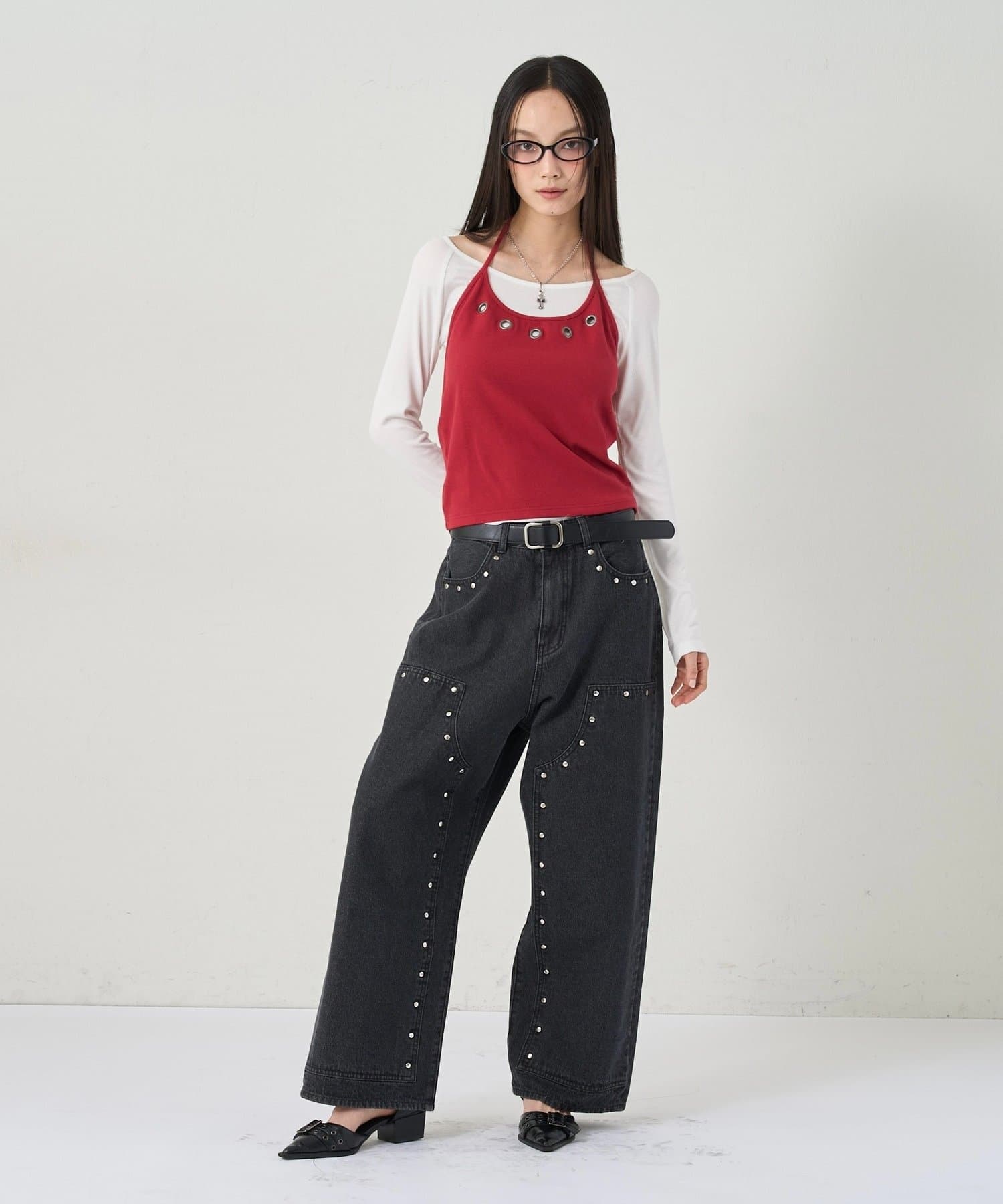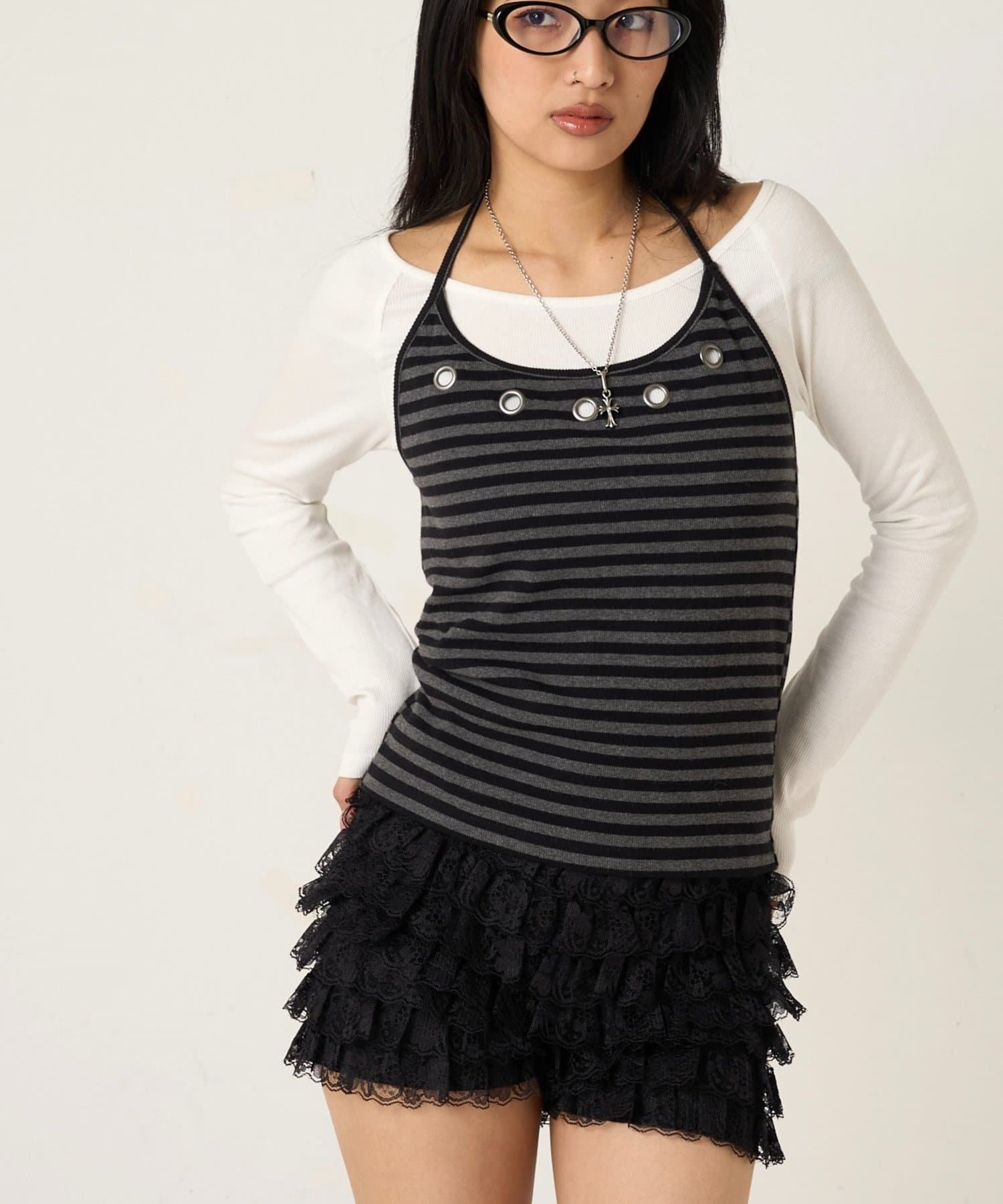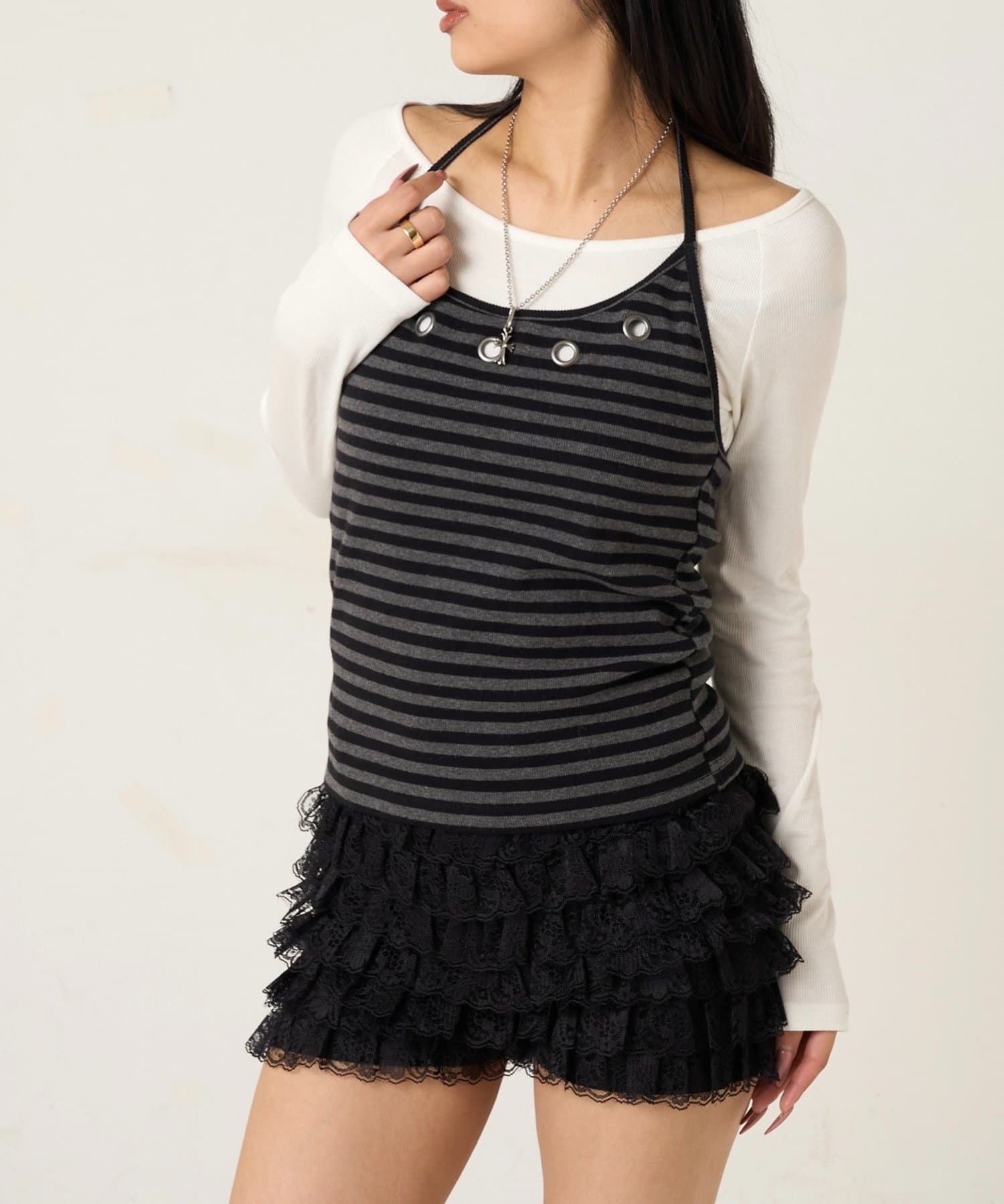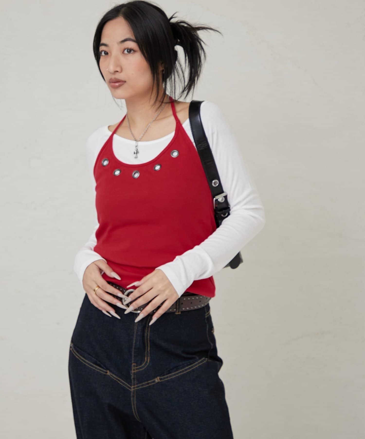 EYELET HALTER LAYERED TOPS/アイレットホルターレイヤードトップス
