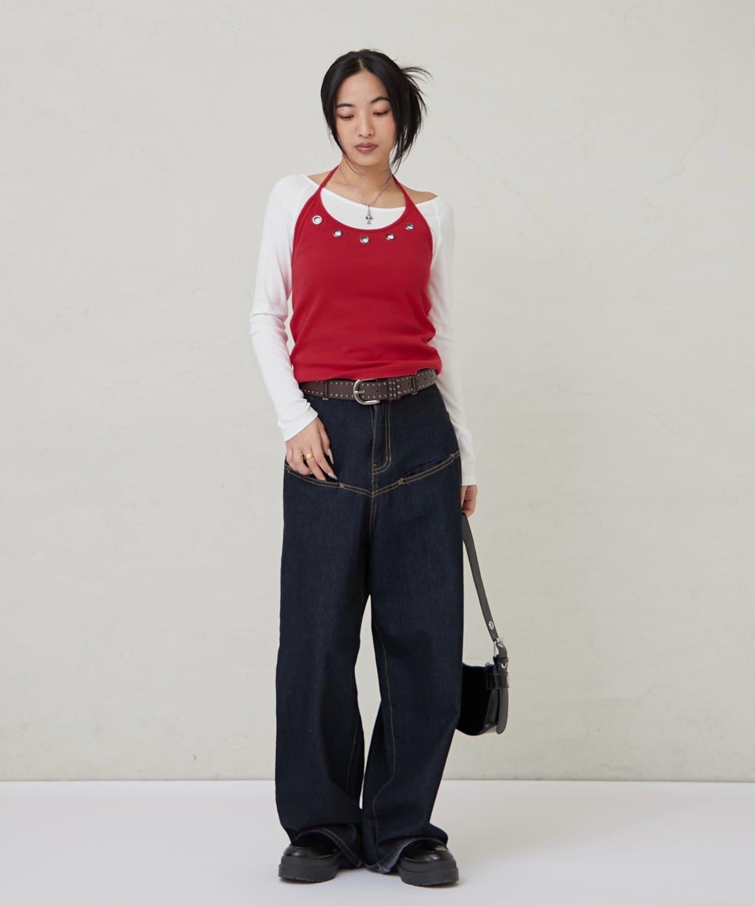 ・トレンドのレイヤードトップスを、ホルターネックにしてWWGらしく仕上げたアイテム。