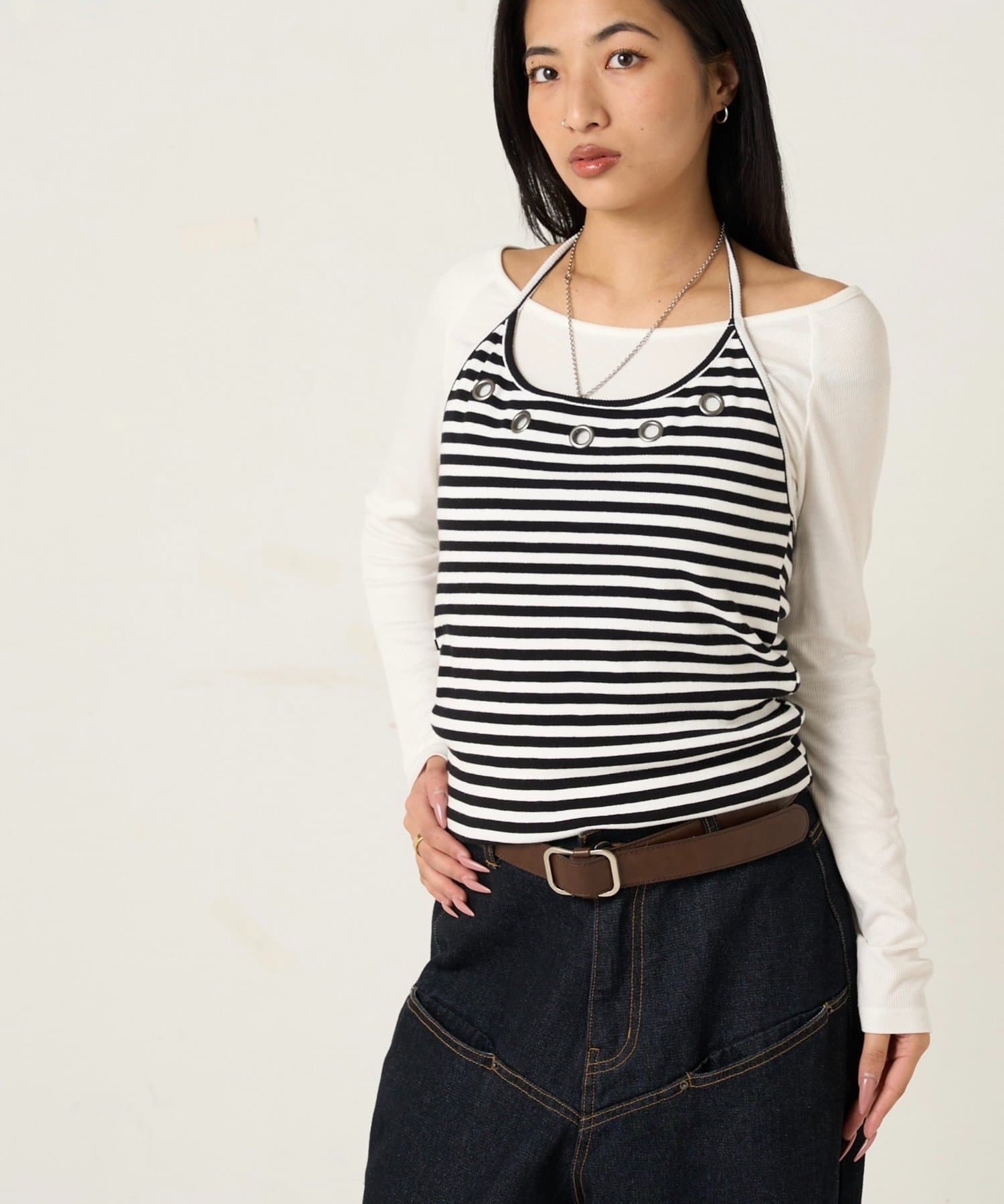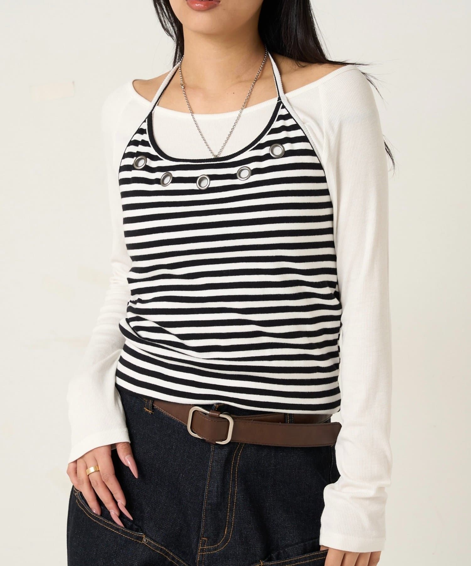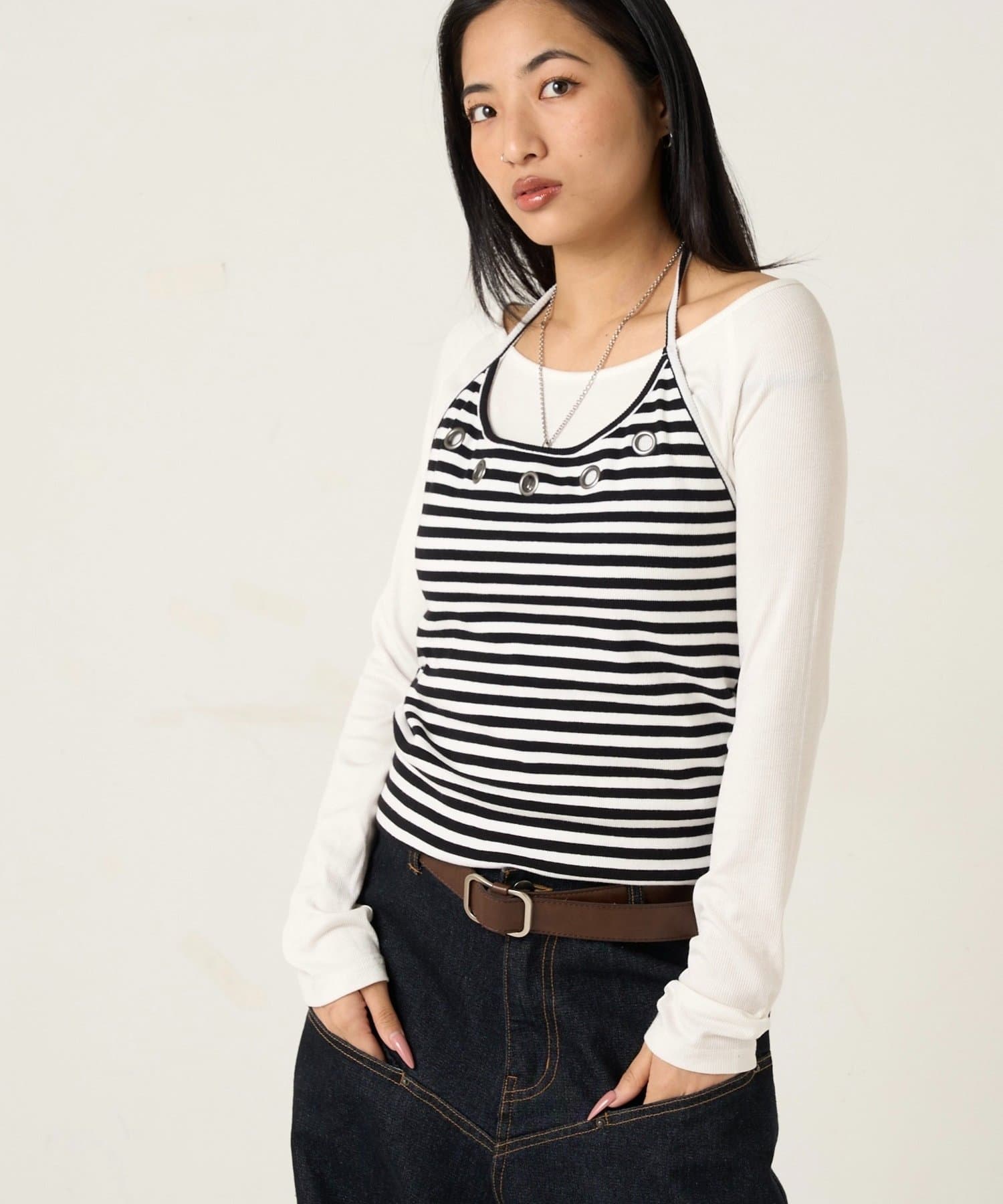 EYELET HALTER LAYERED TOPS/アイレットホルターレイヤードトップス