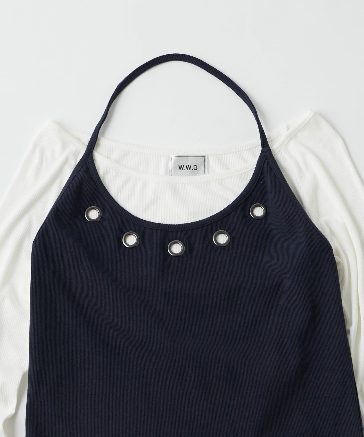 ・トレンドのレイヤードトップスを、ホルターネックにしてWWGらしく仕上げたアイテム。