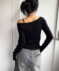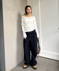 ・ トレンドのオフショルダーデザインで、ヘルシーな肌見せが叶うトップス。