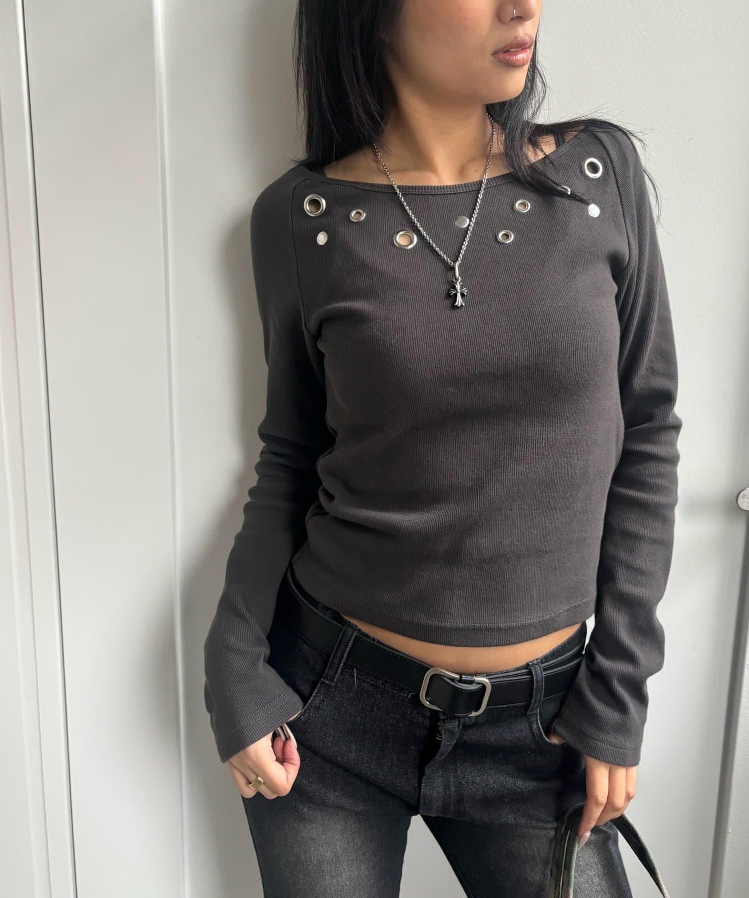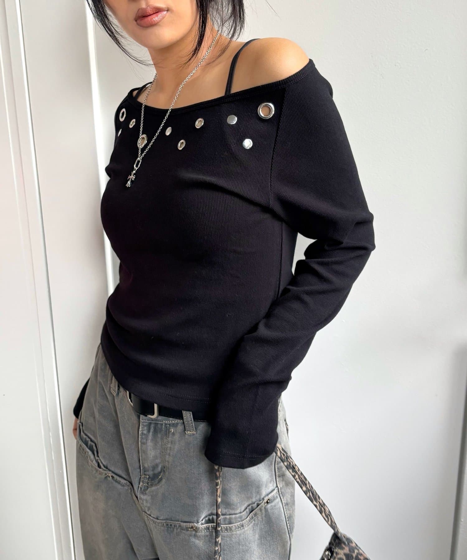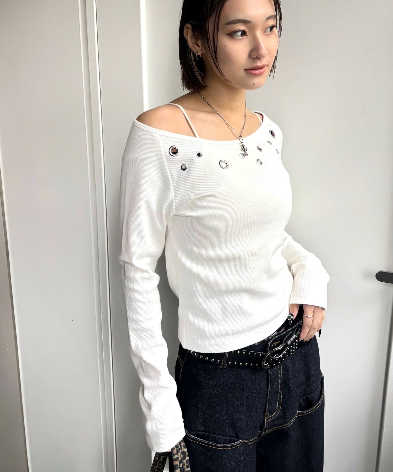 【WEB限定】EYELET OFF SHOULDER TOPS/ハトメオフショルトップス