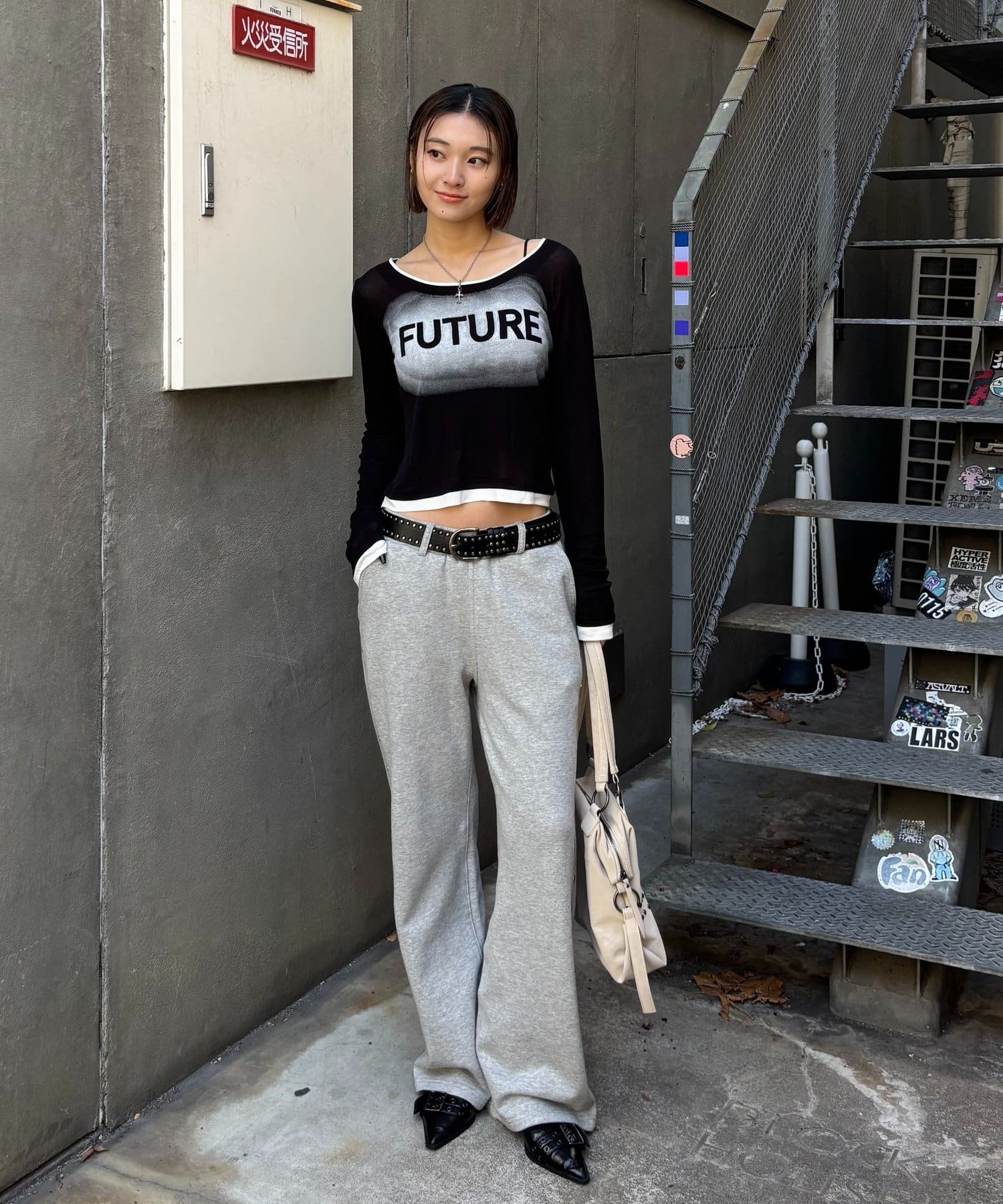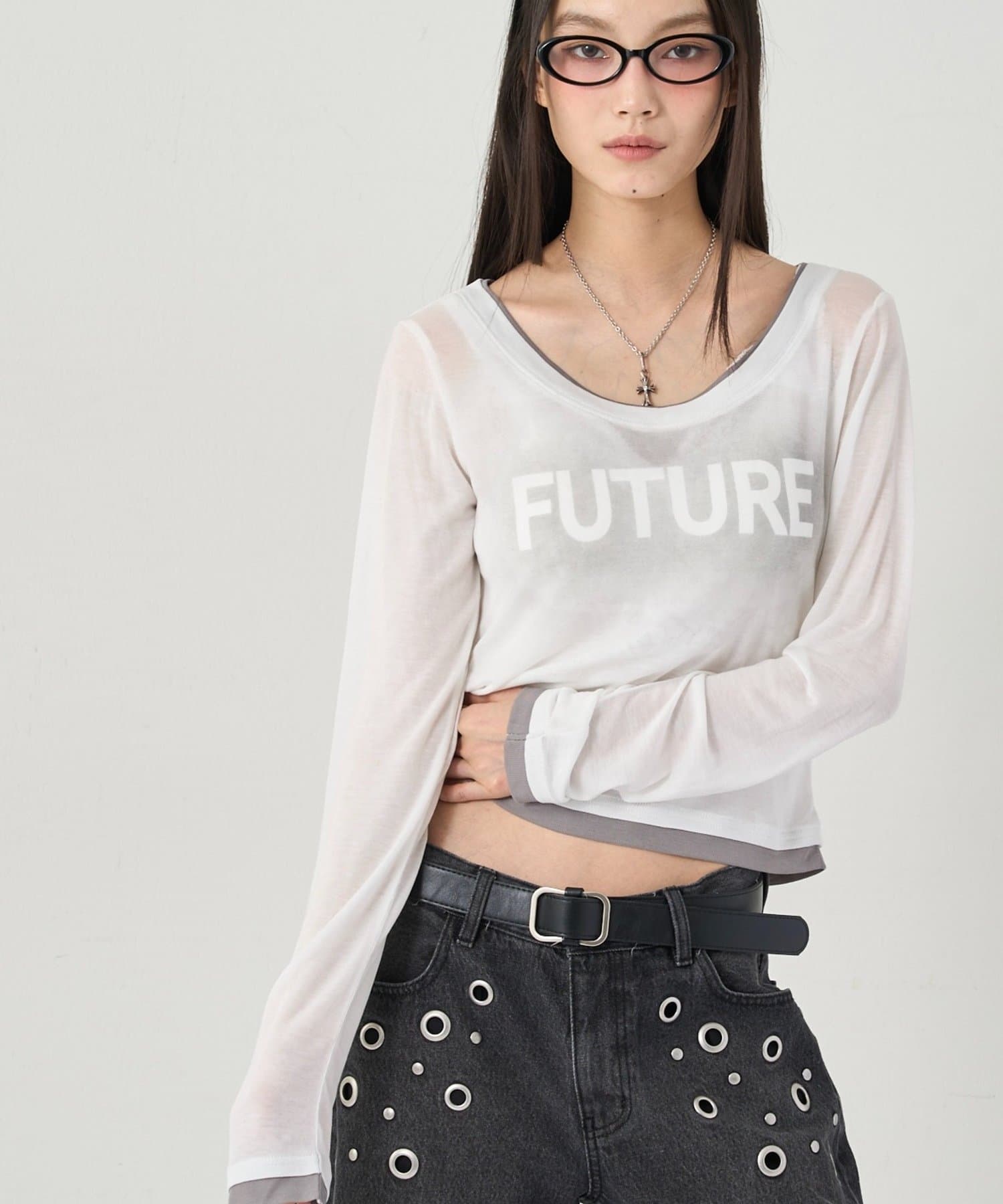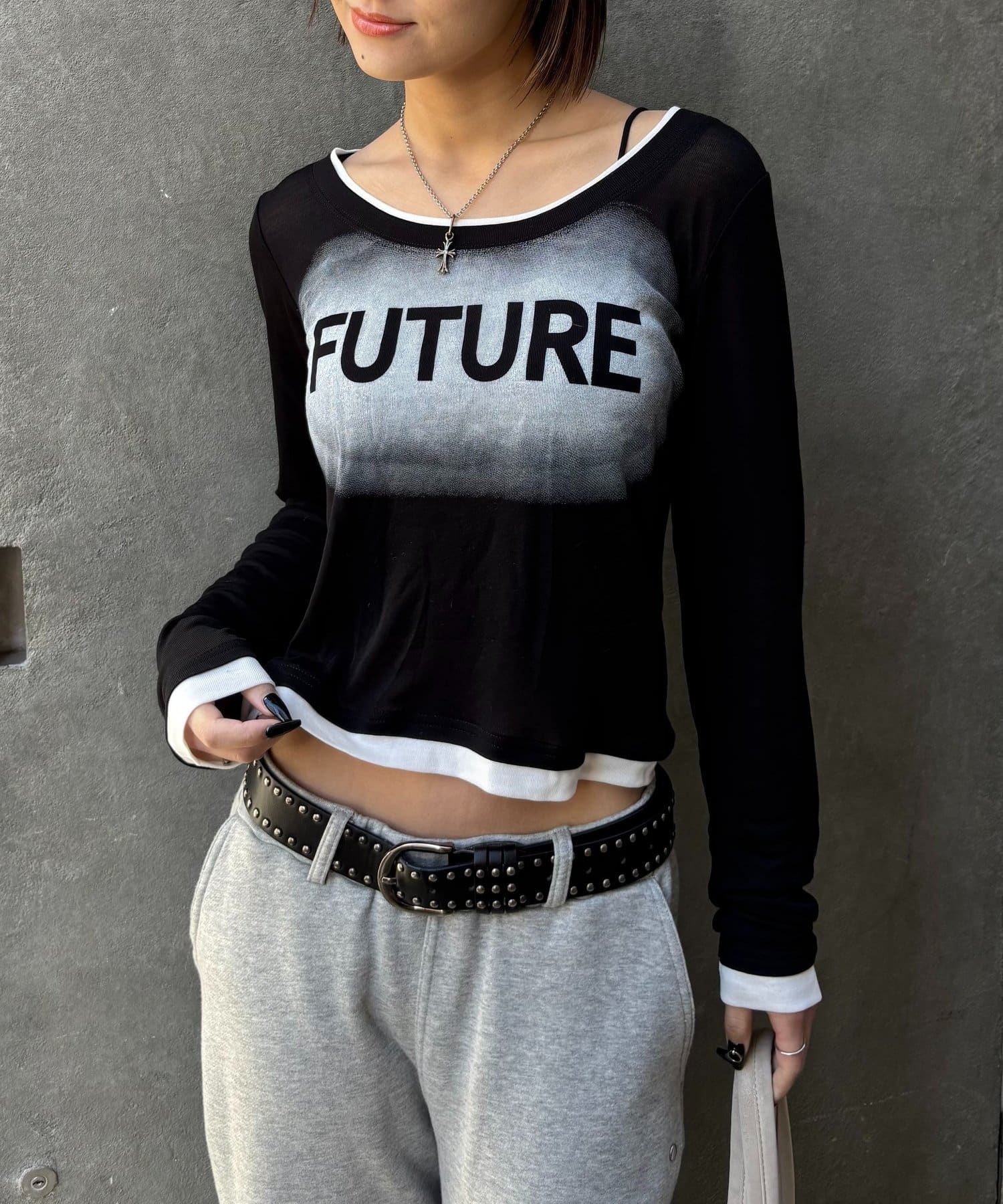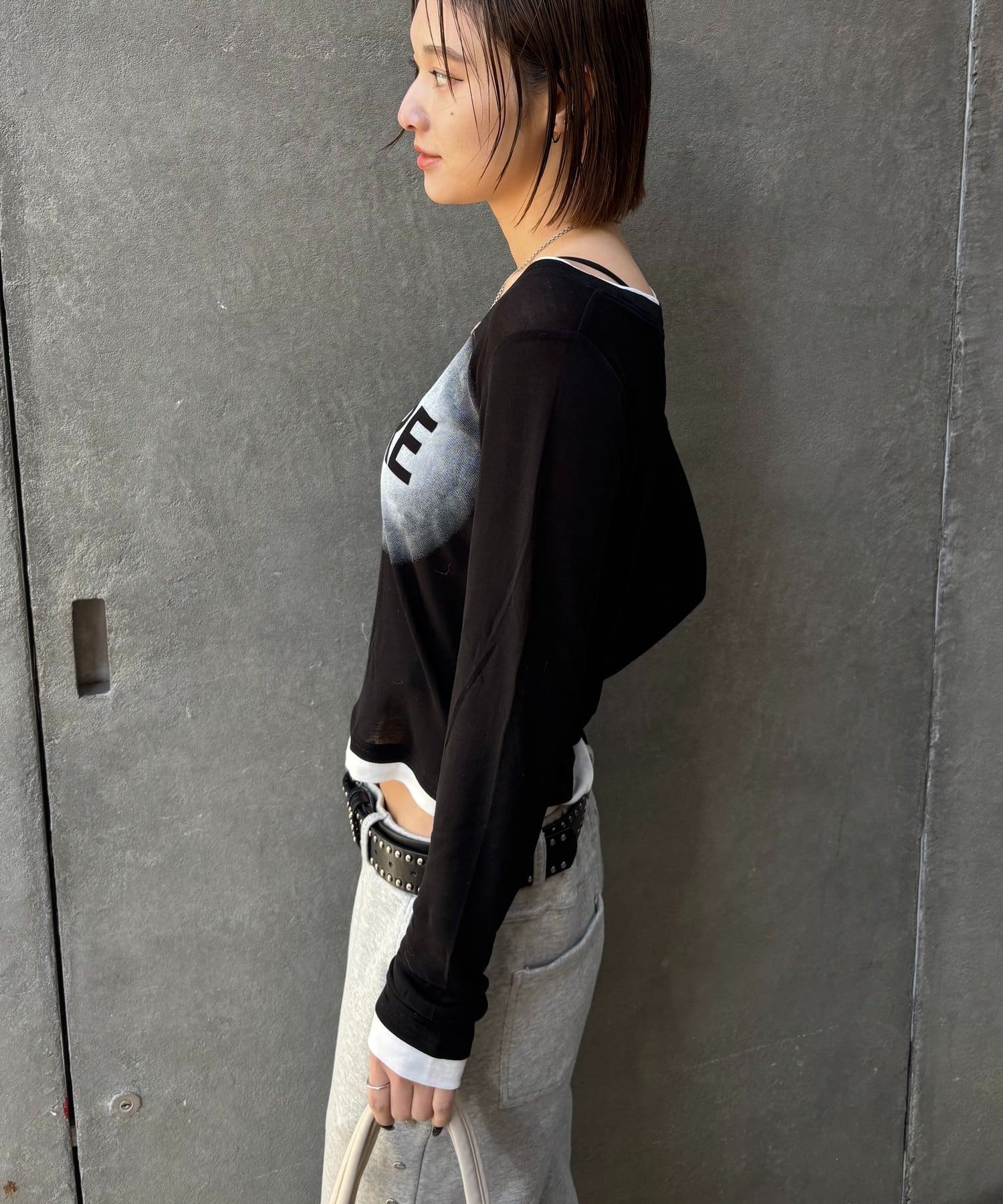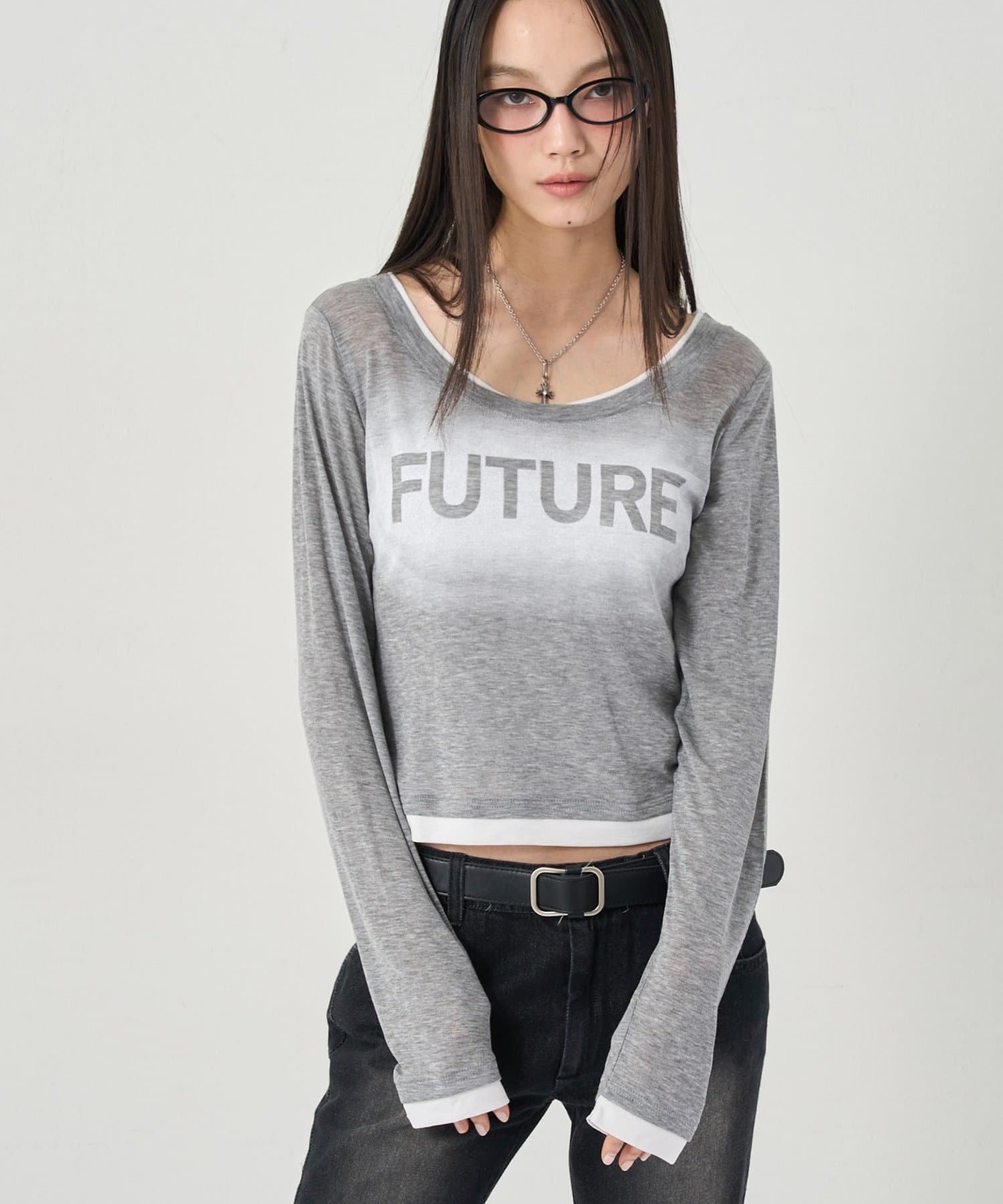 SPRAY LOGO SHEER LAYERED TOPS/スプレーロゴレイヤードシアートップス