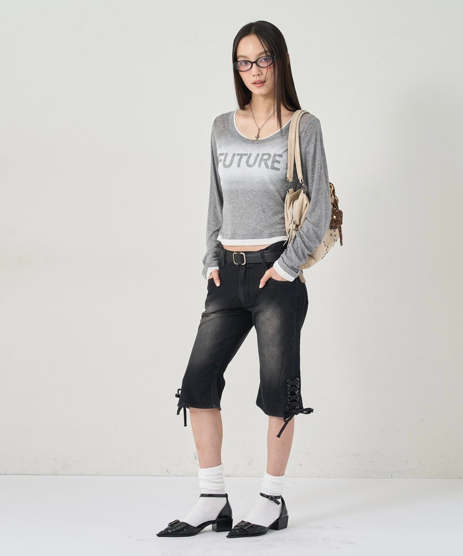 ・スプレーで描いたようなロゴが特徴的なシアートップス。
