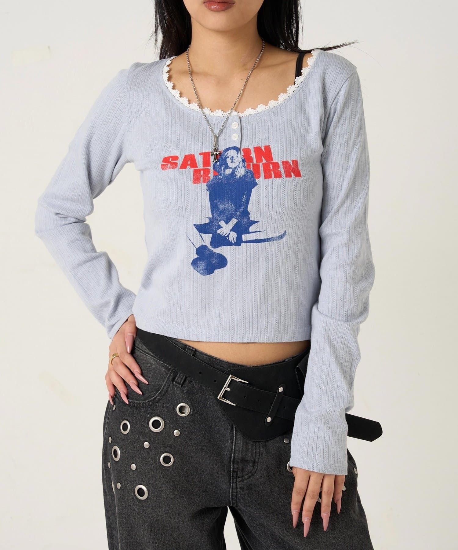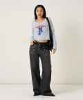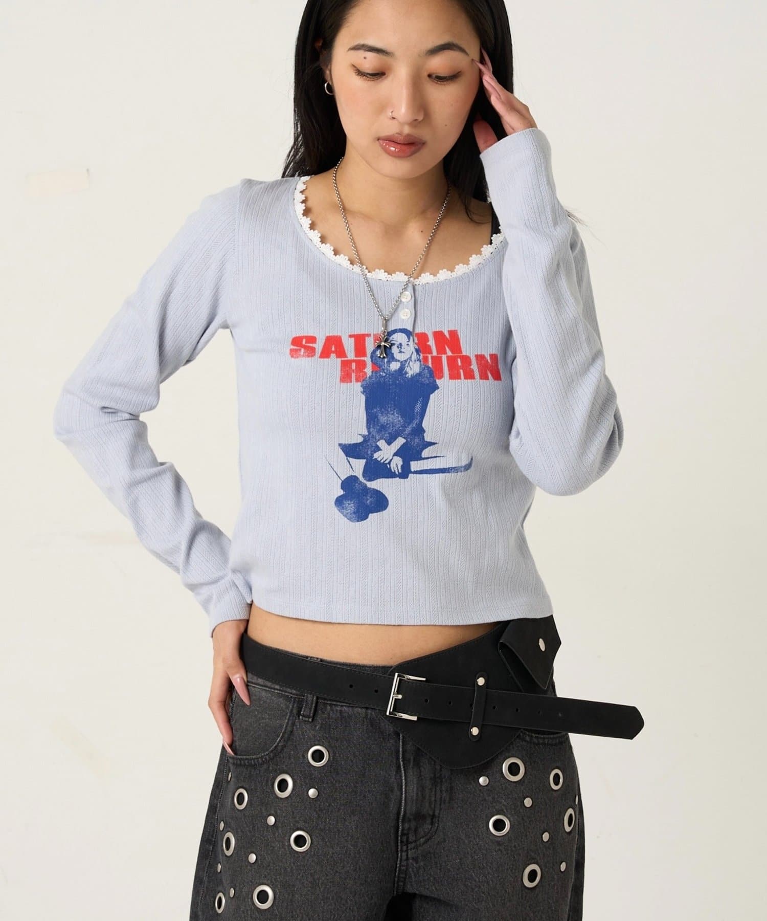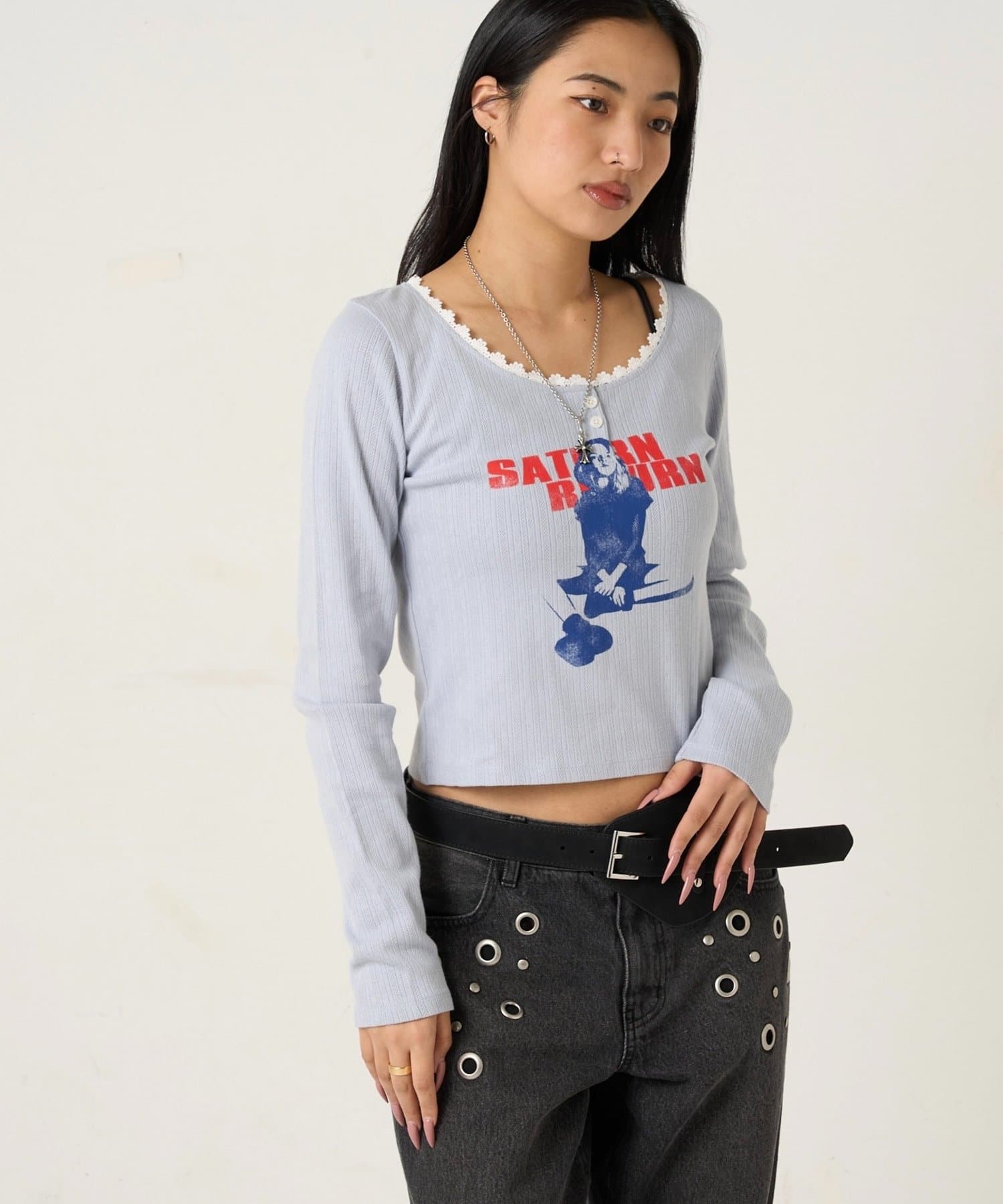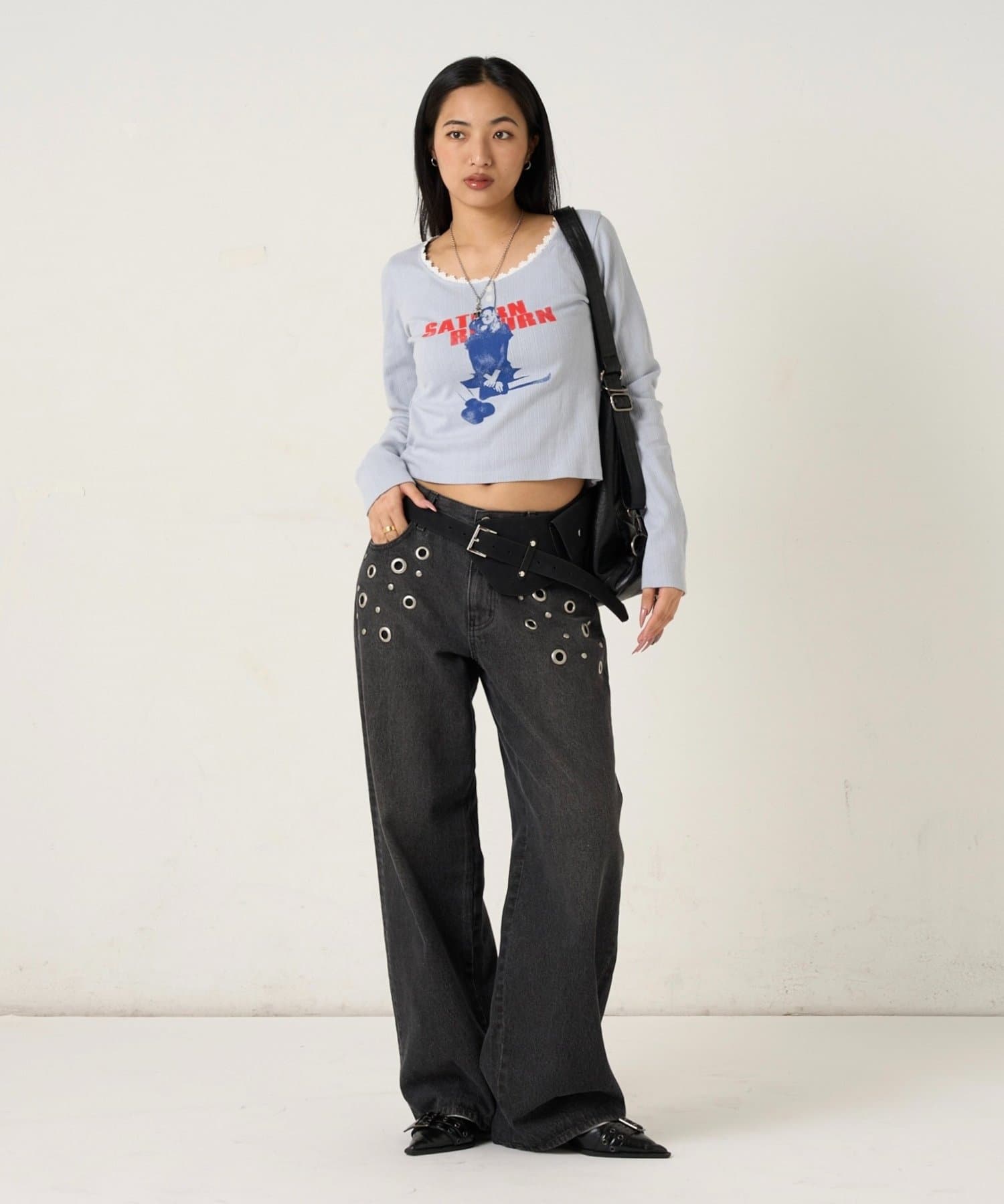 165cm/骨格ウェーブBT:スタッズベルトPT:スラッシュポケットデニム
