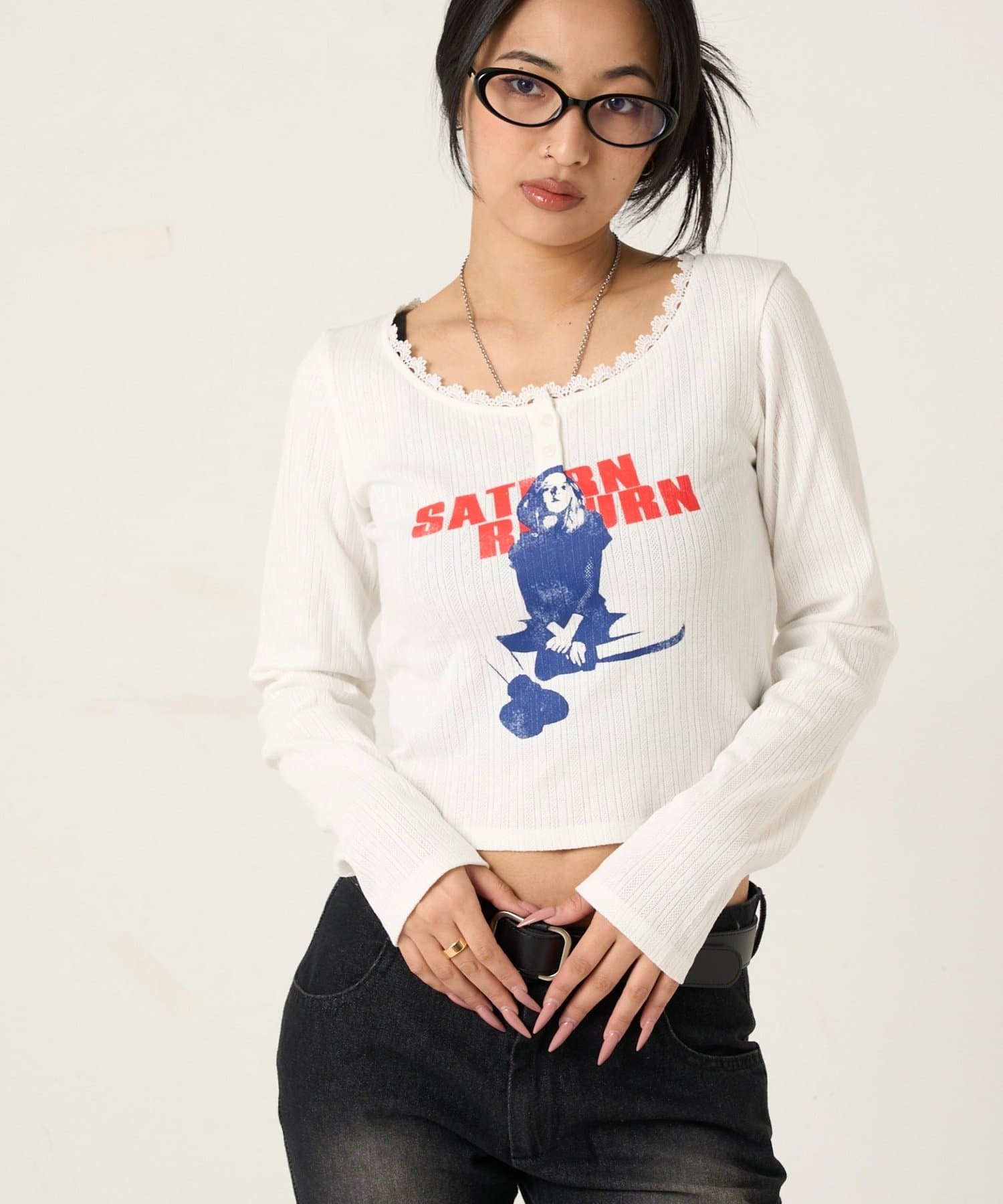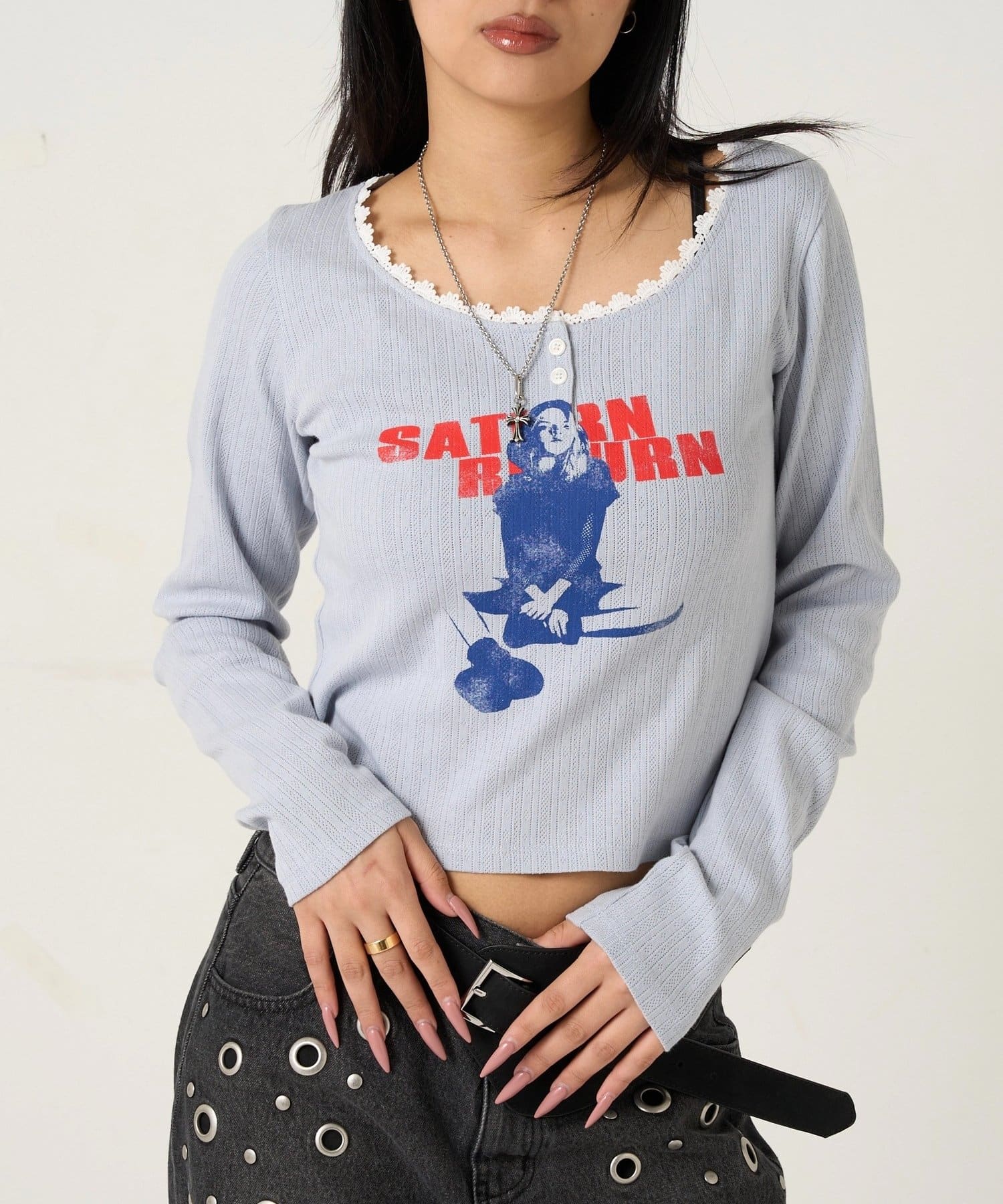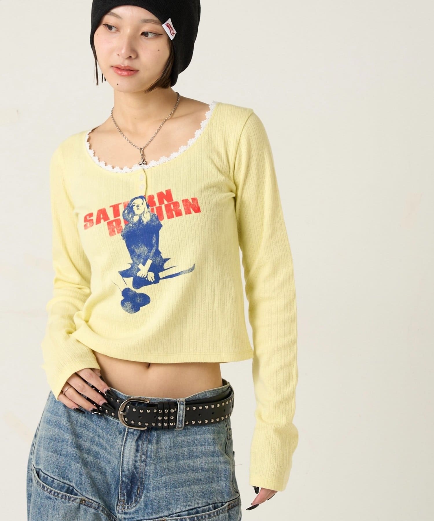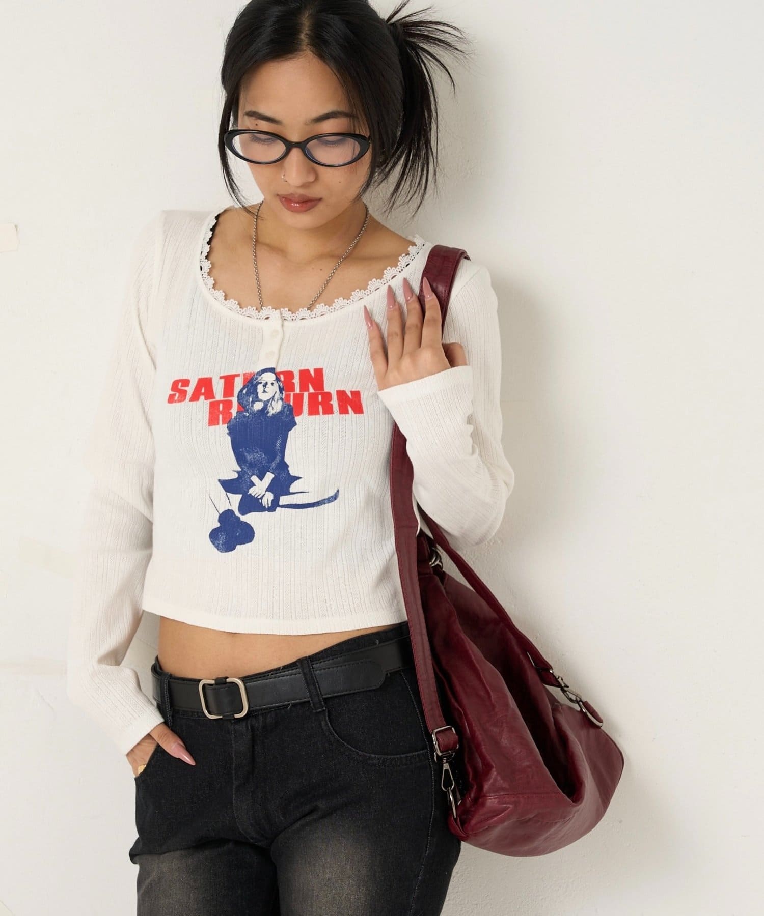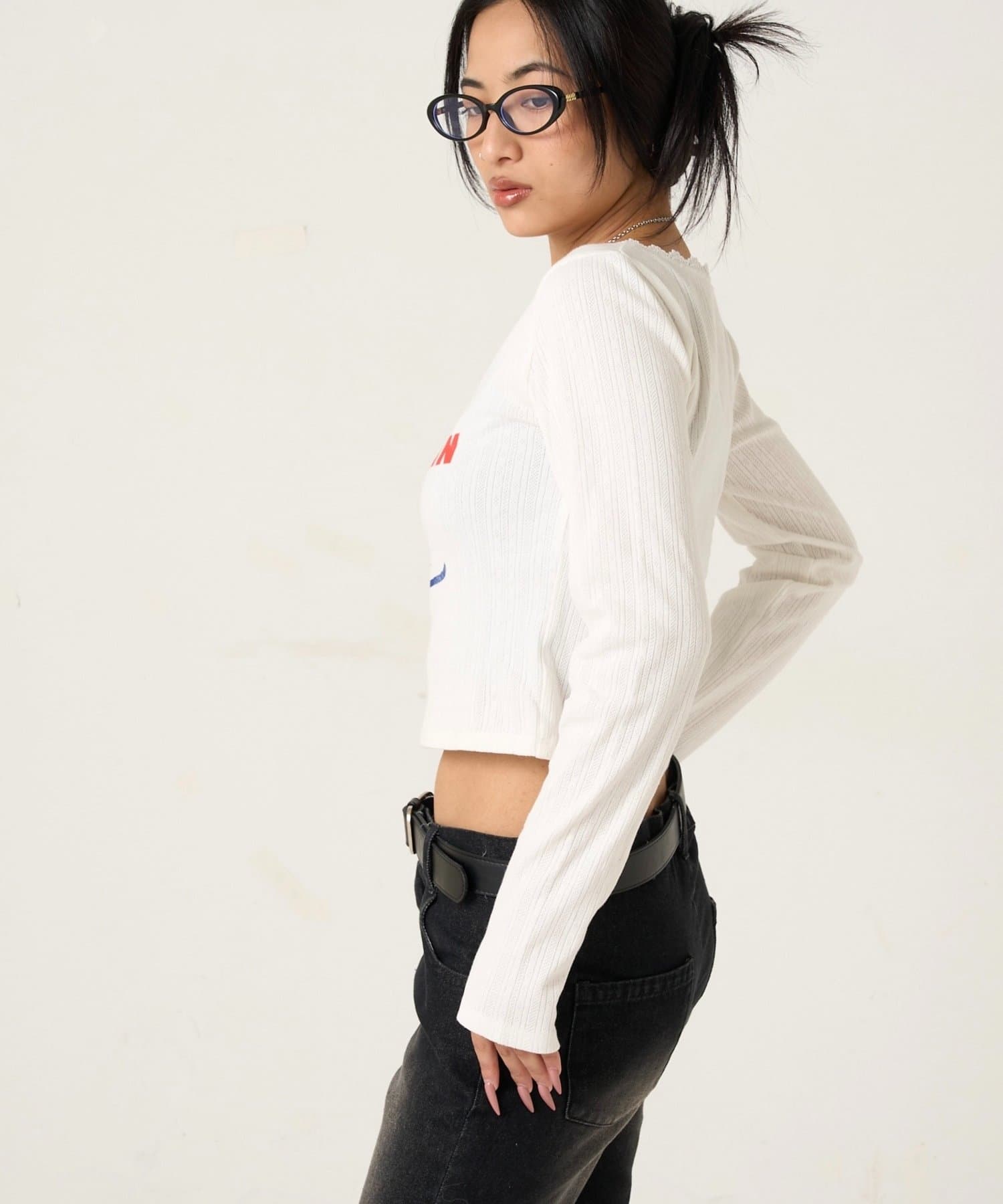 165cm/骨格ウェーブBT:スタッズベルトPT:スラッシュポケットデニム