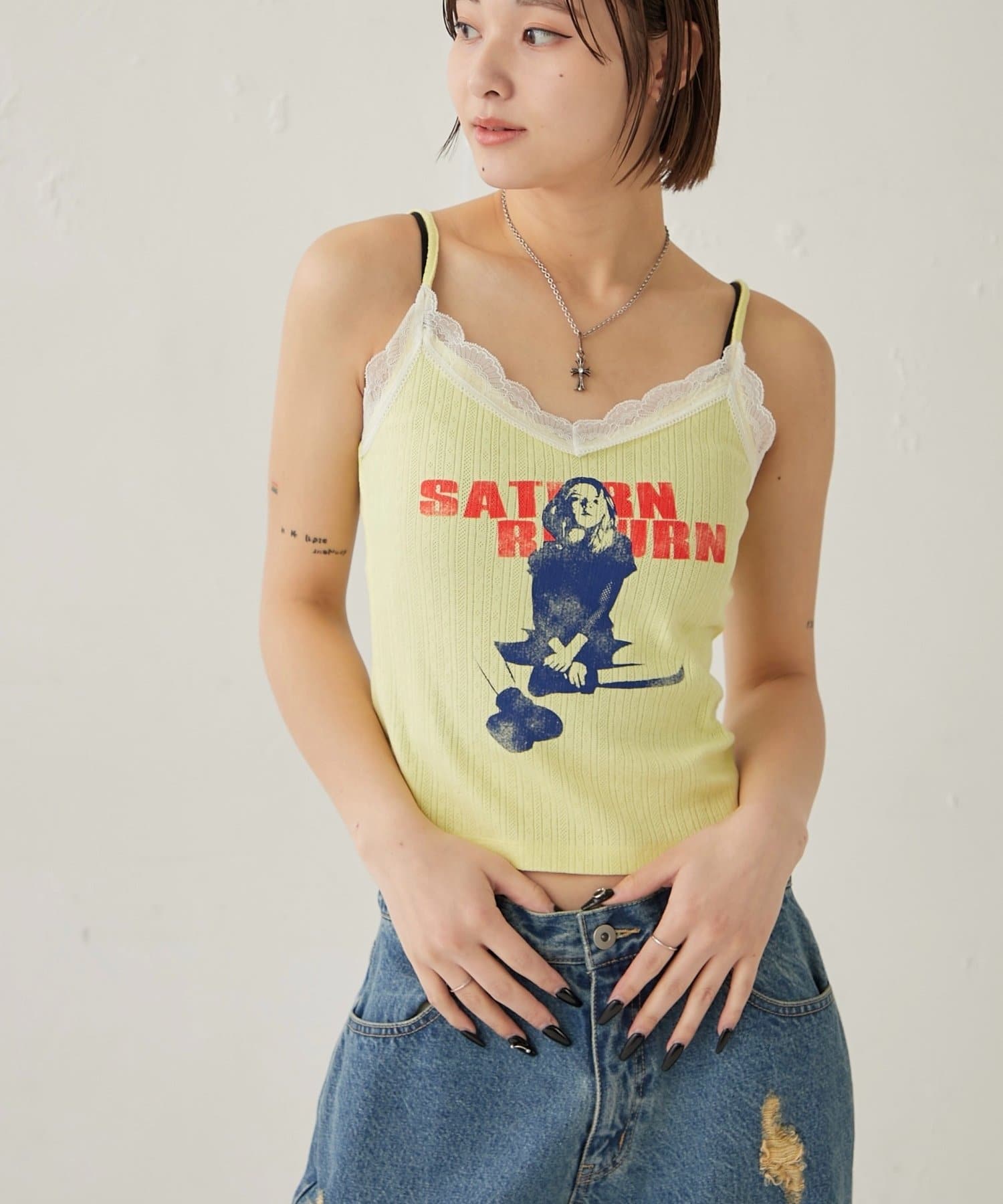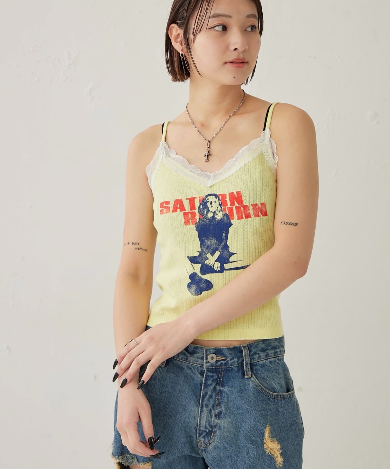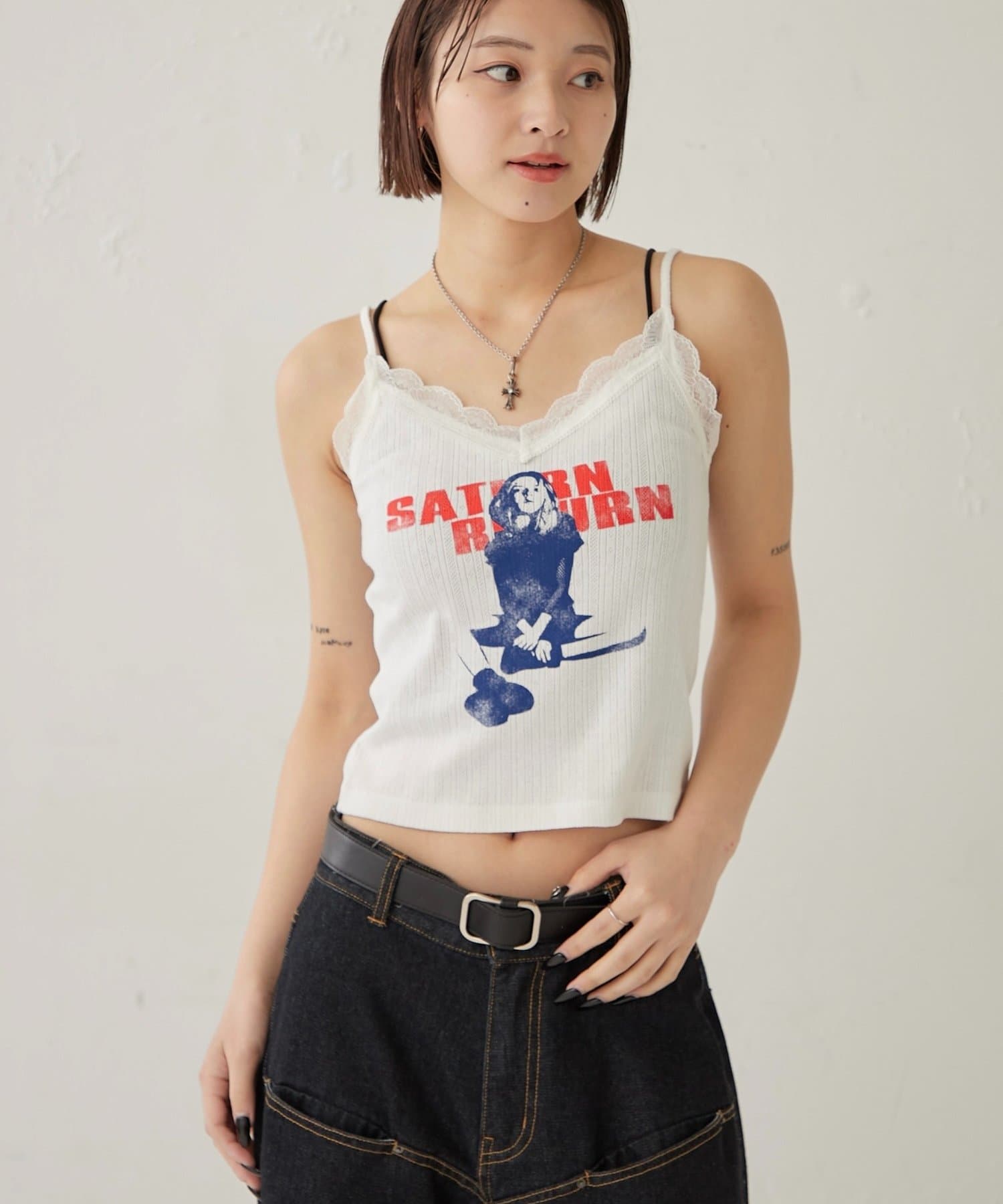 シャーロットパターンメッシュレースキャミ