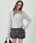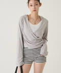ラフなのに女性らしい。リブカシュクールフーディで、抜け感のある大人カジュアルを。