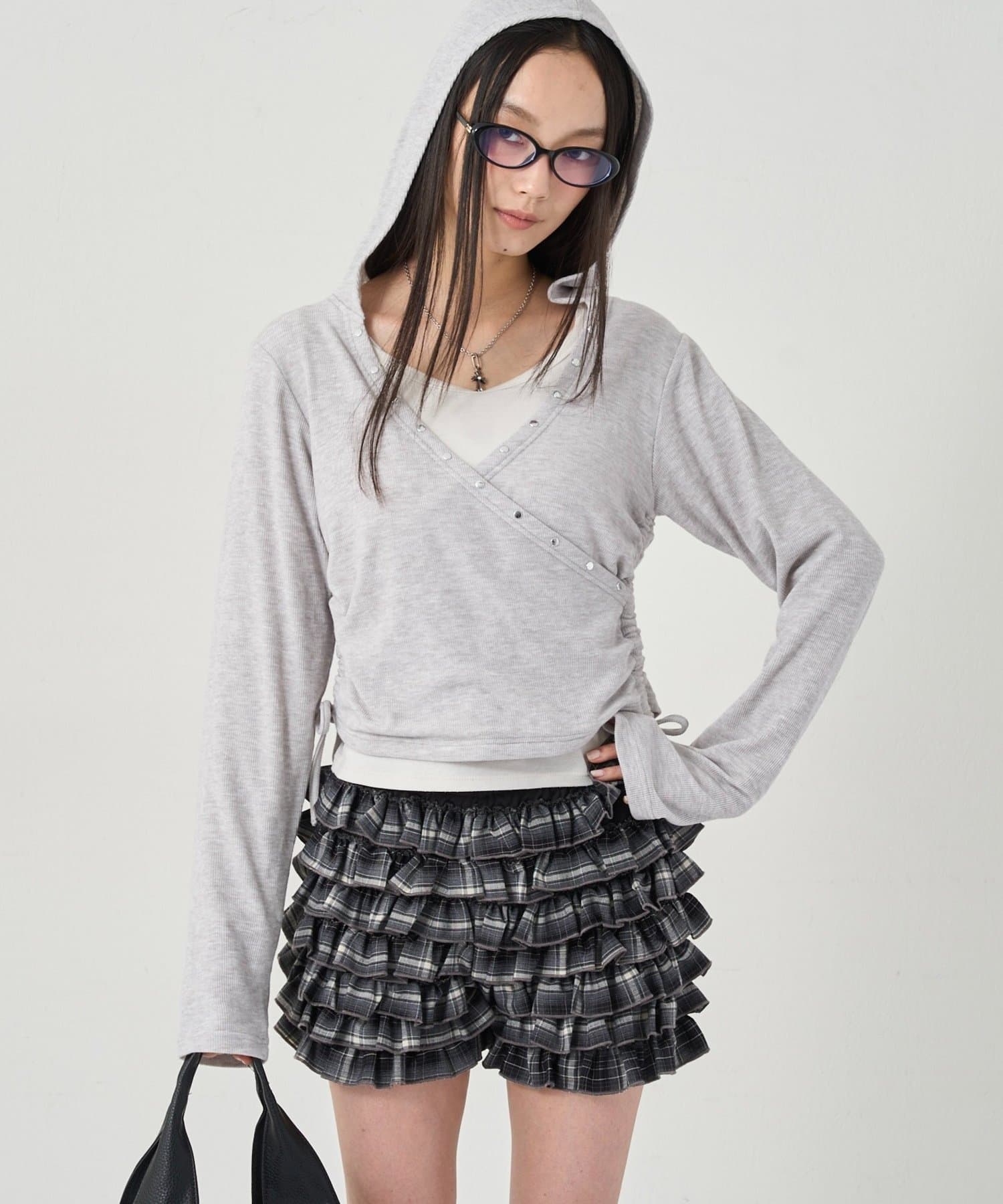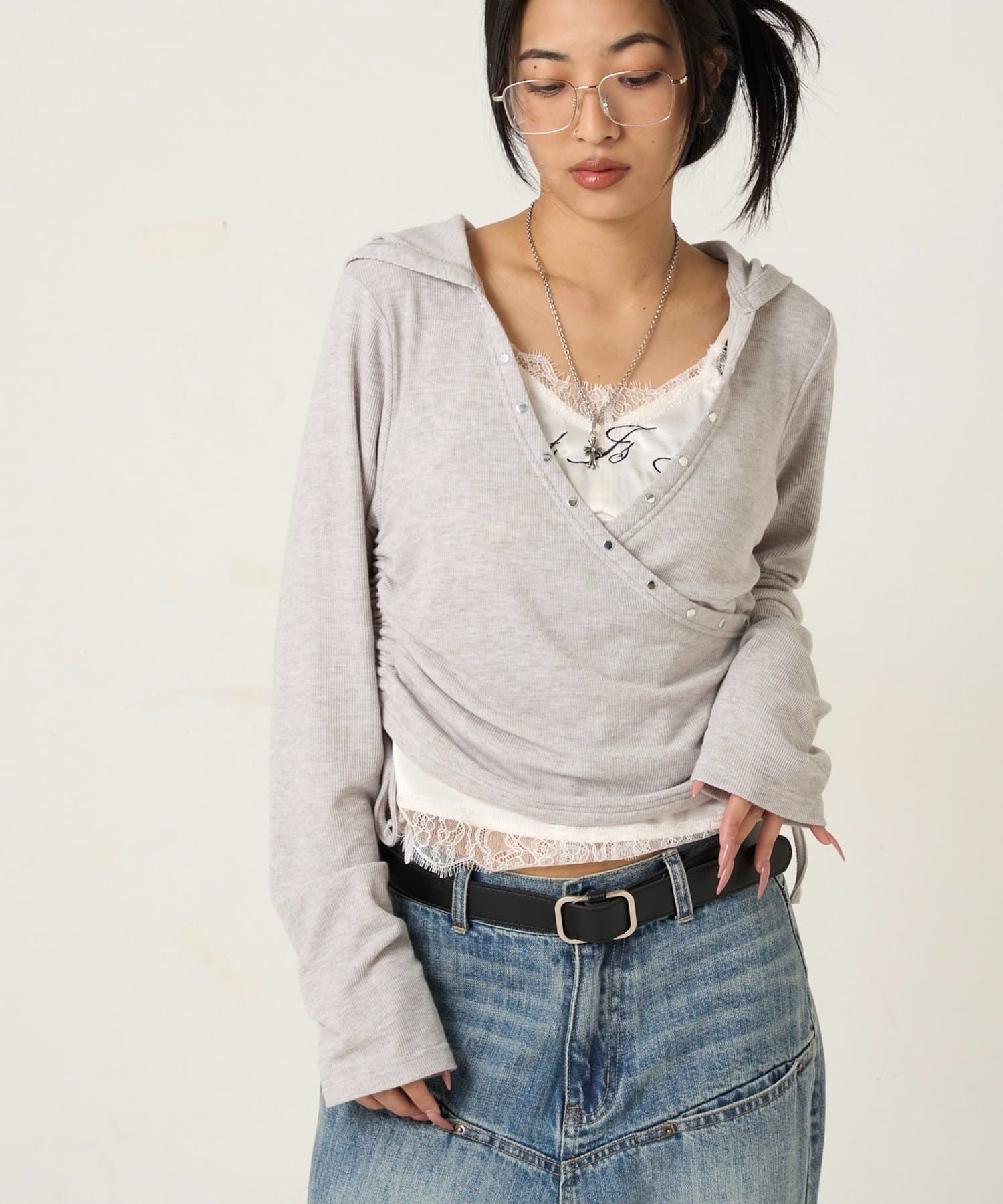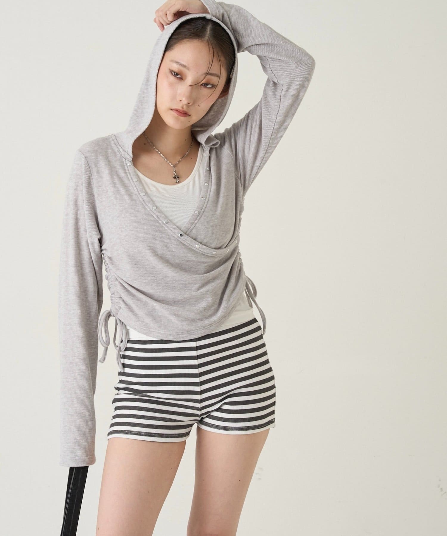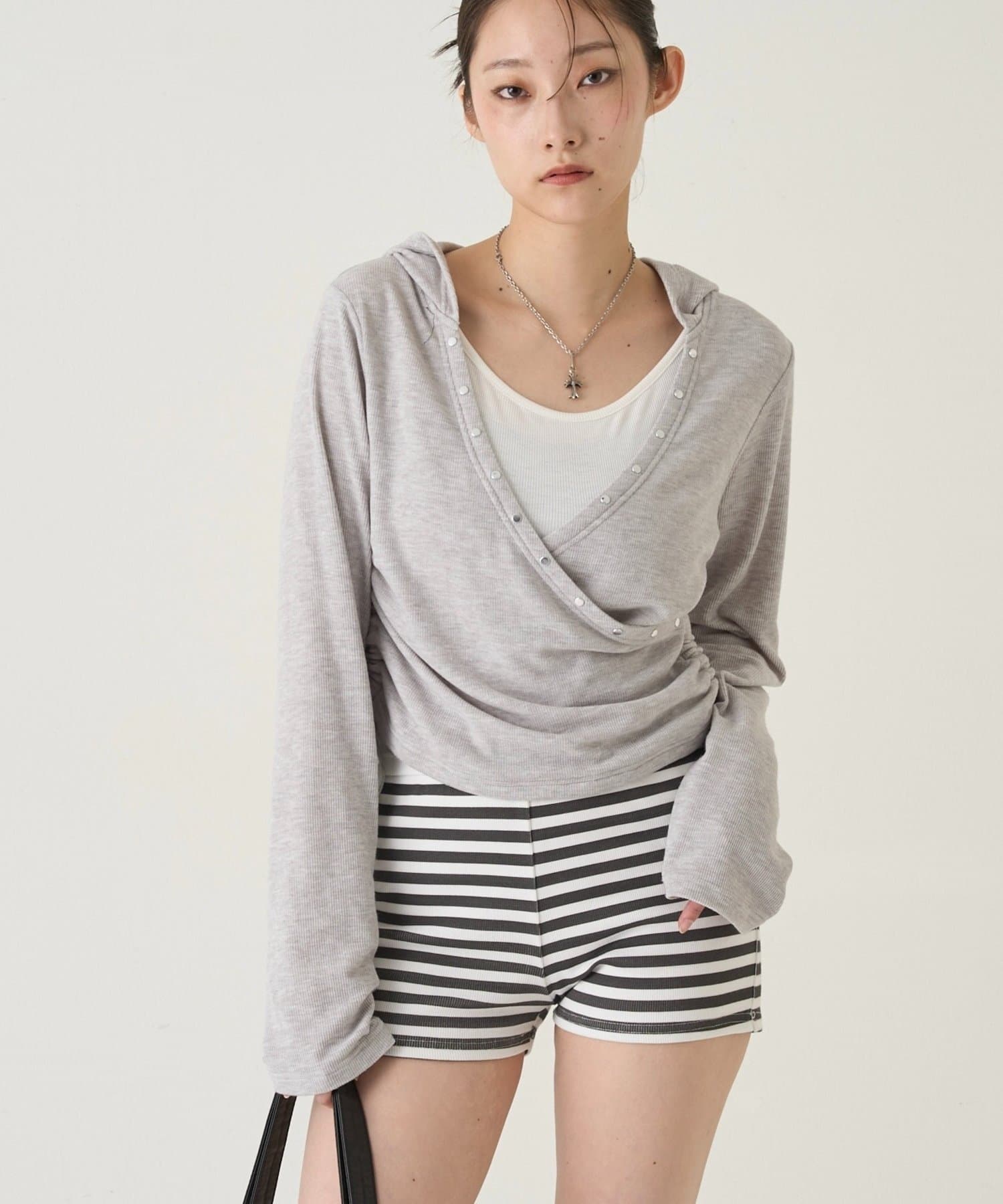 STUDS RIB WRAP HOODIE/スタッズリブカシュクールフーディ