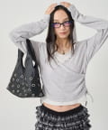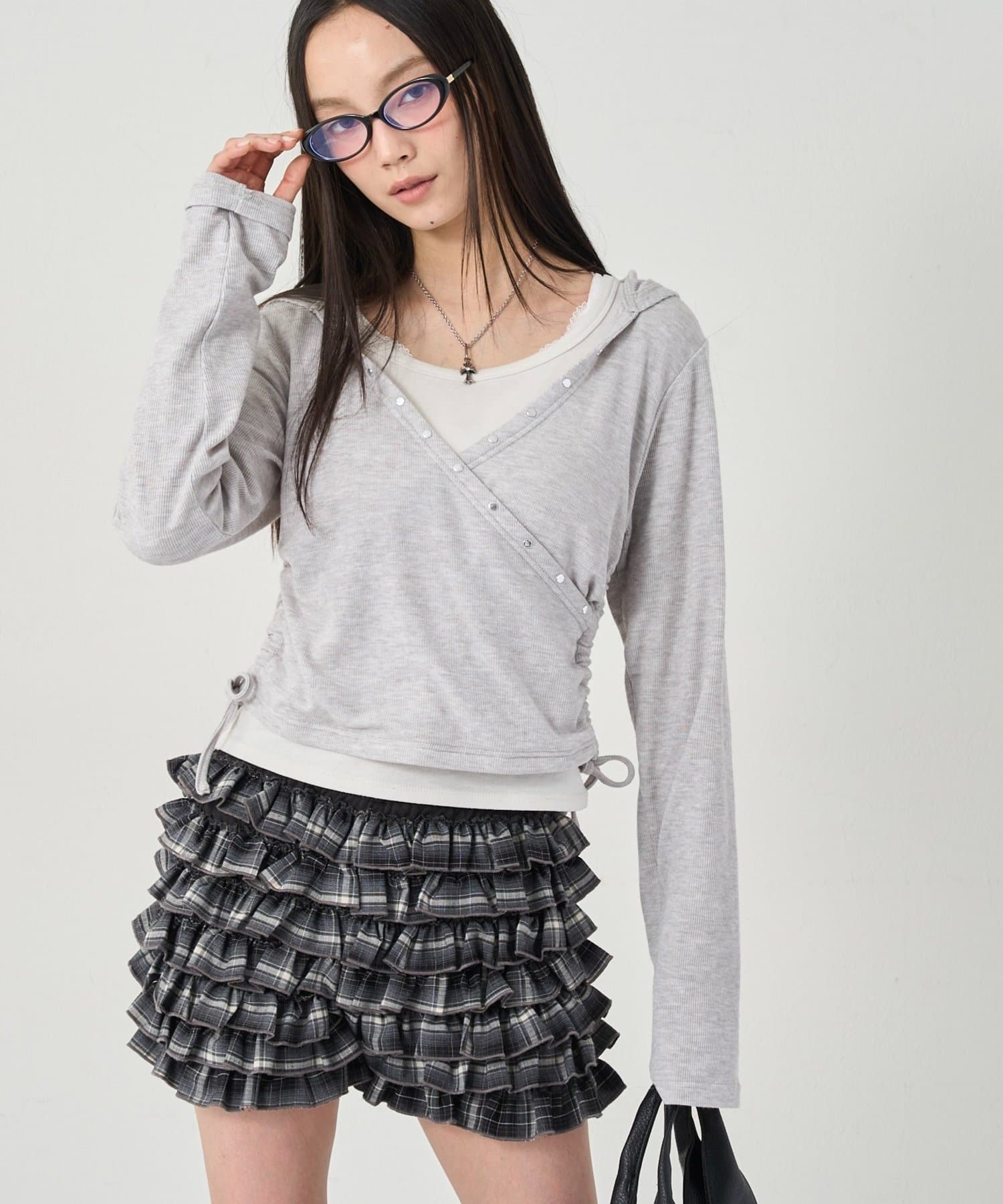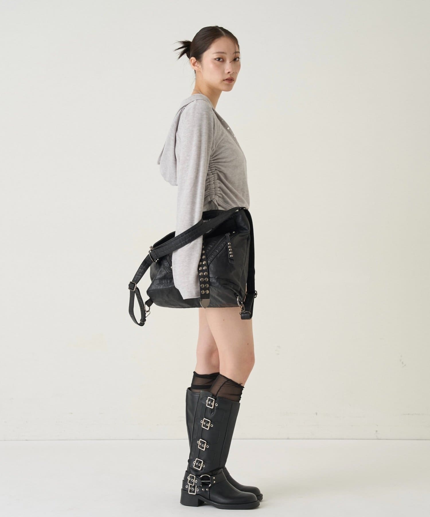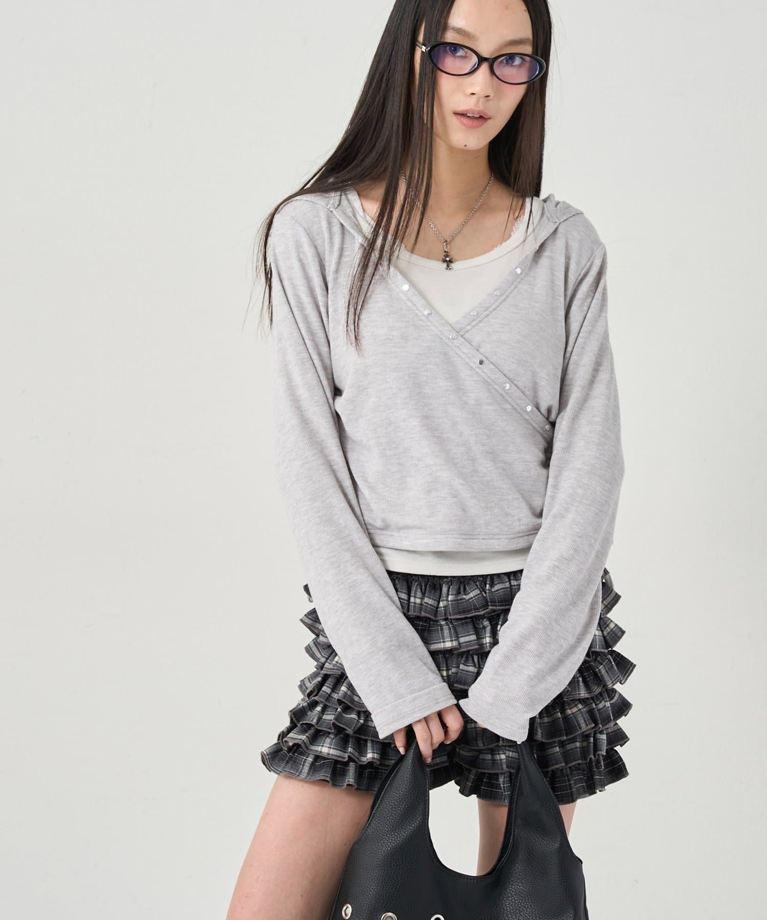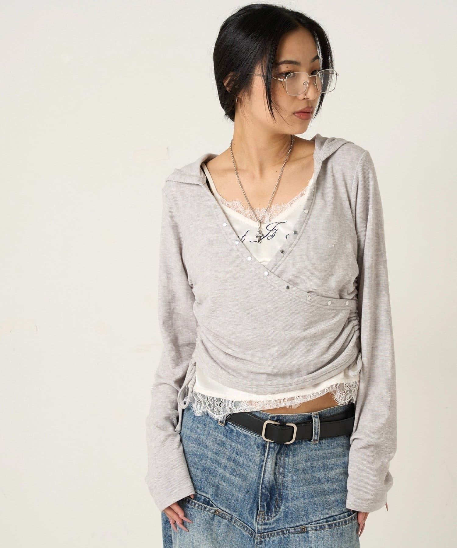 STUDS RIB WRAP HOODIE/スタッズリブカシュクールフーディ