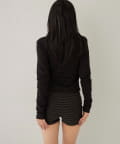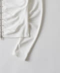 ・フロントのスタッズとギャザーデザインが目を引くトップス。