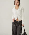 心を射抜く、エッジィな美しさ。スタッズ×ギャザーで魅せる、大人の甘辛トップス!