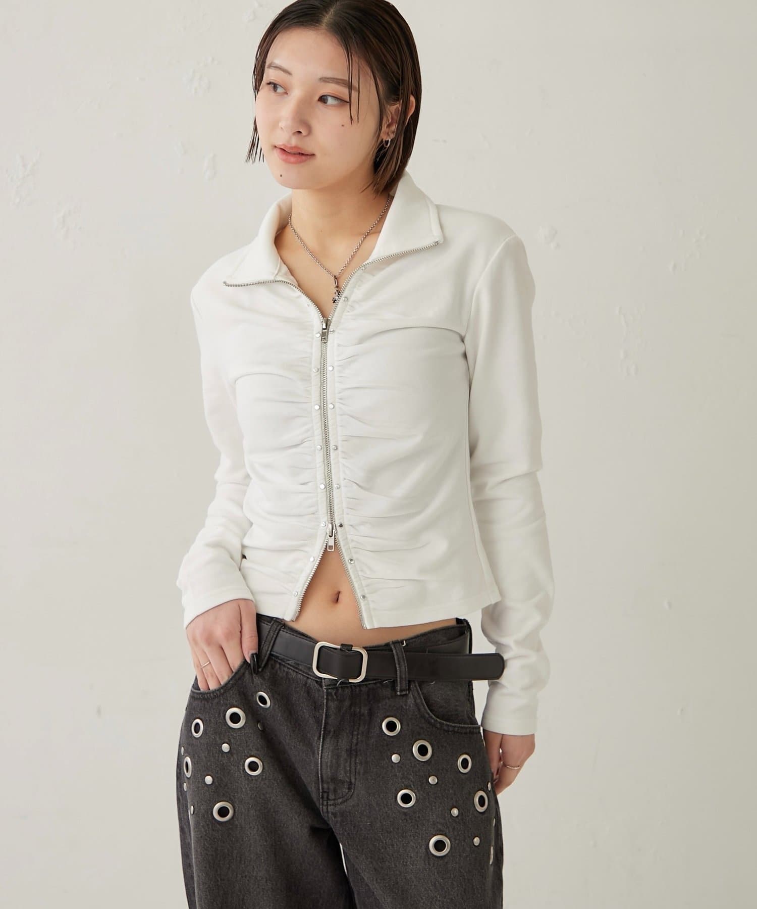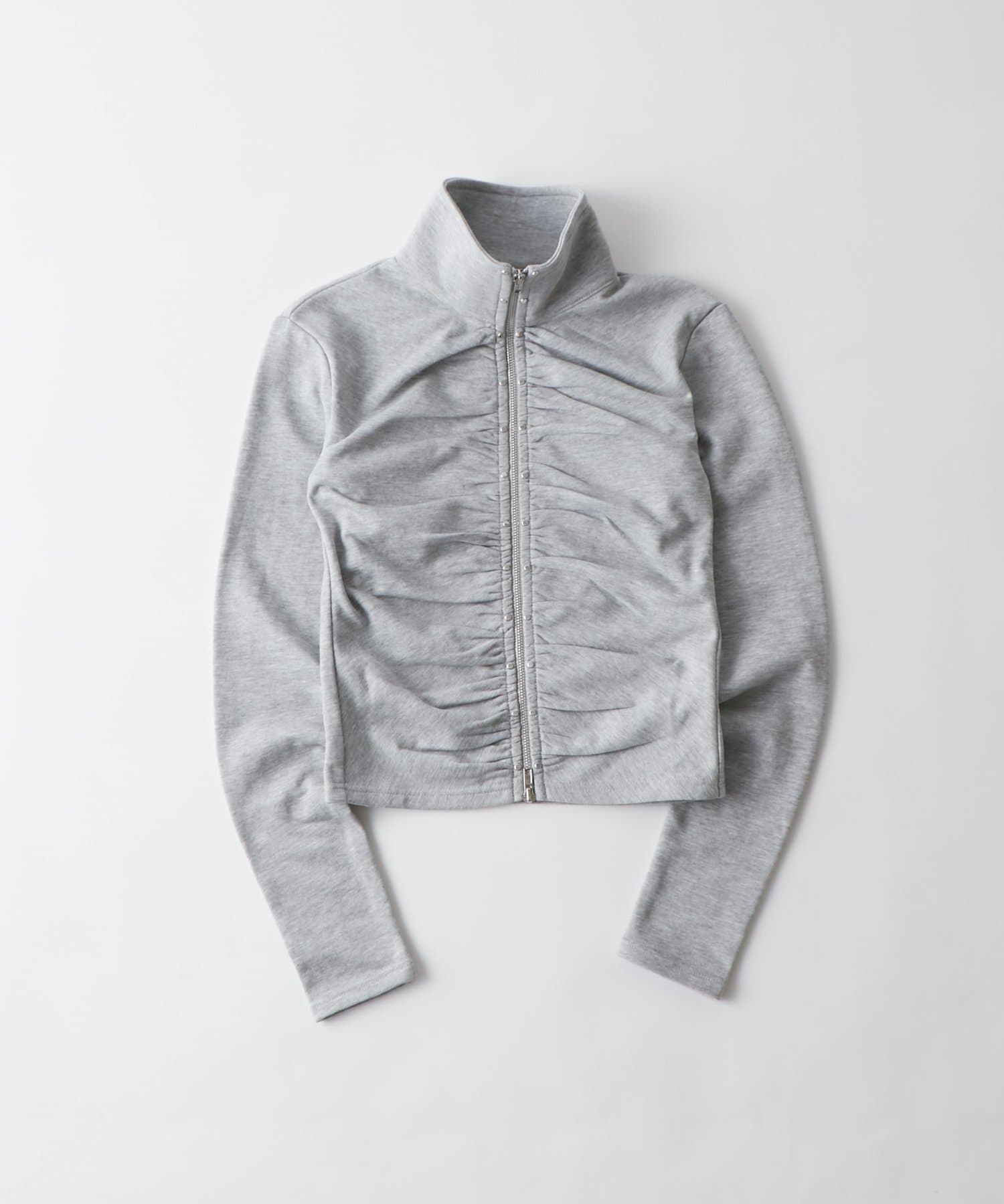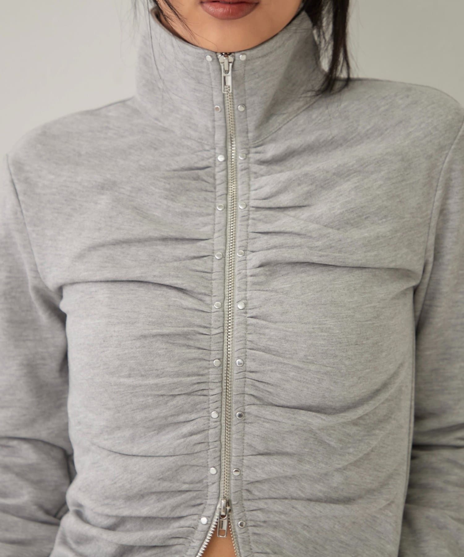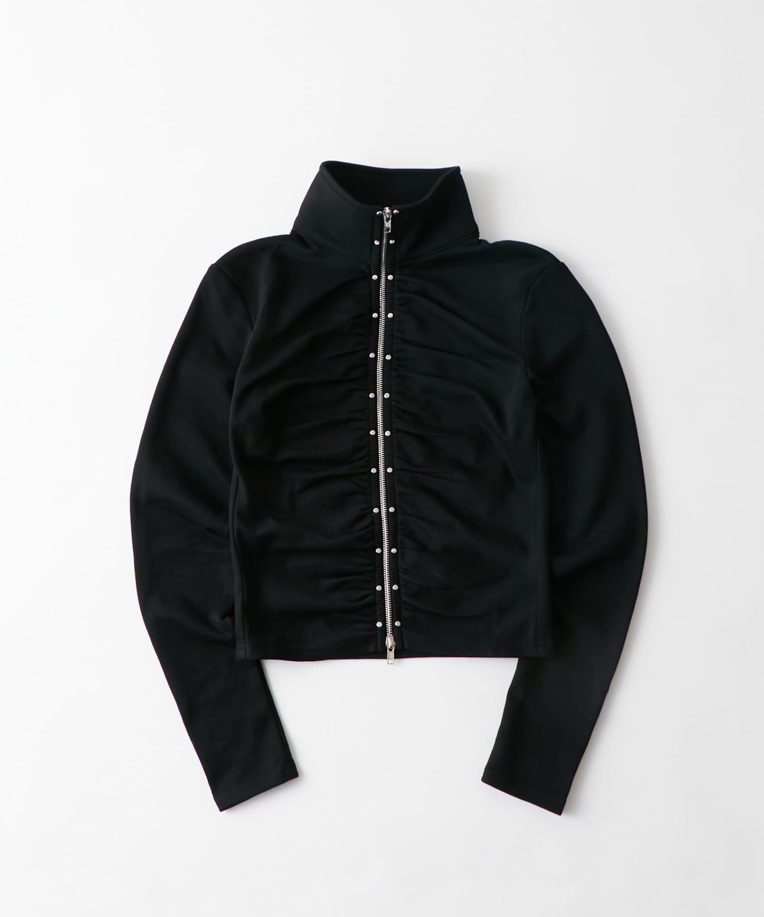 【STUDDED ZIP GATHERED TOP/スタッズジップギャザートップス】