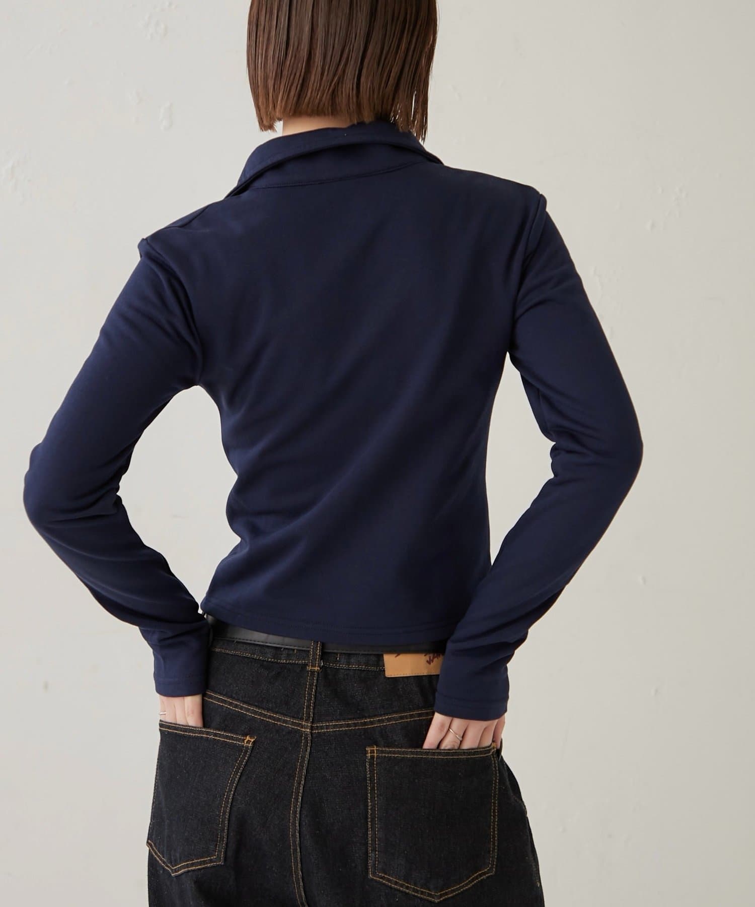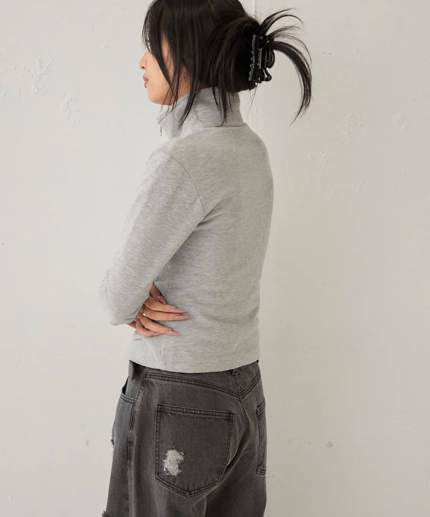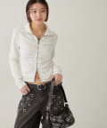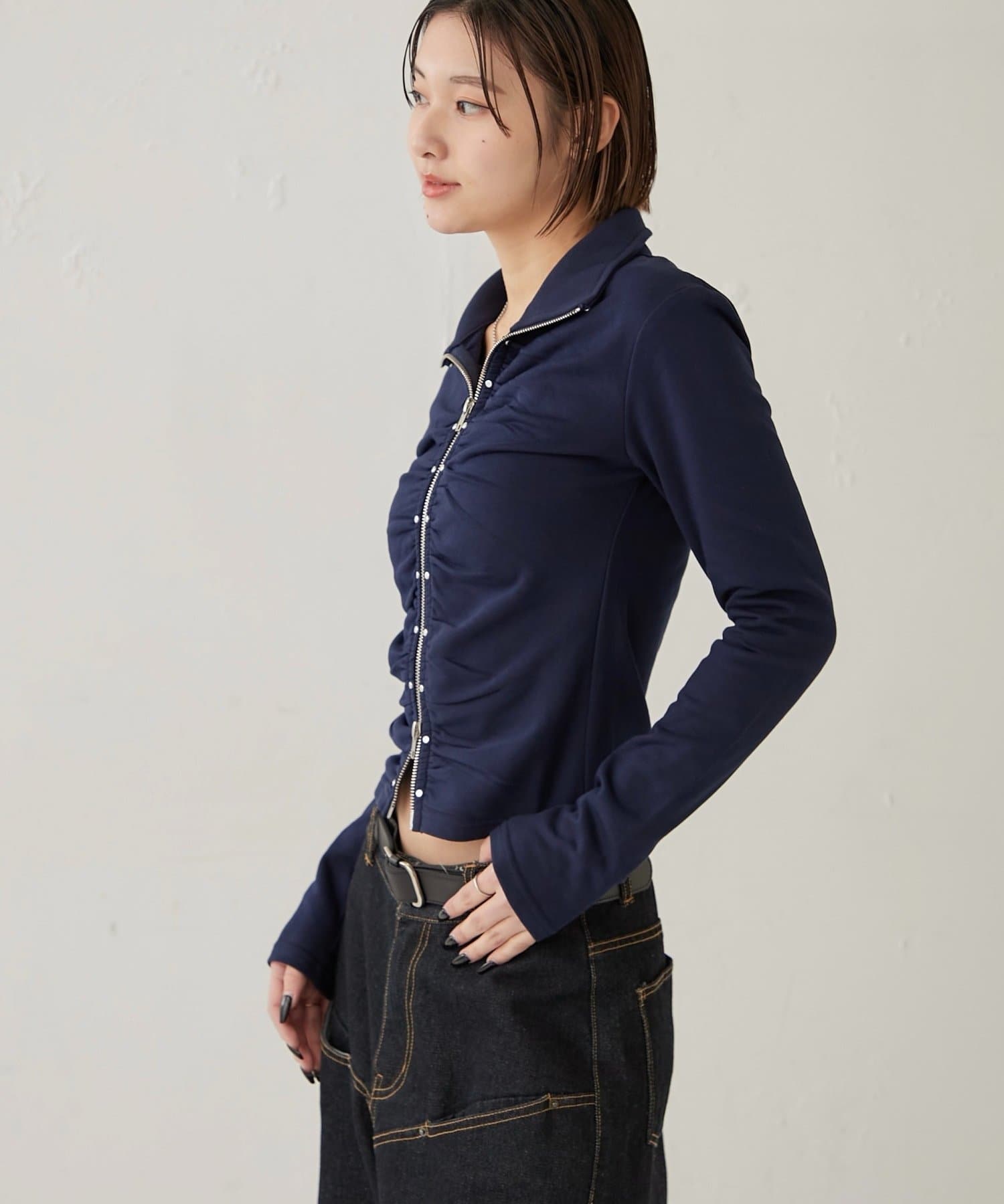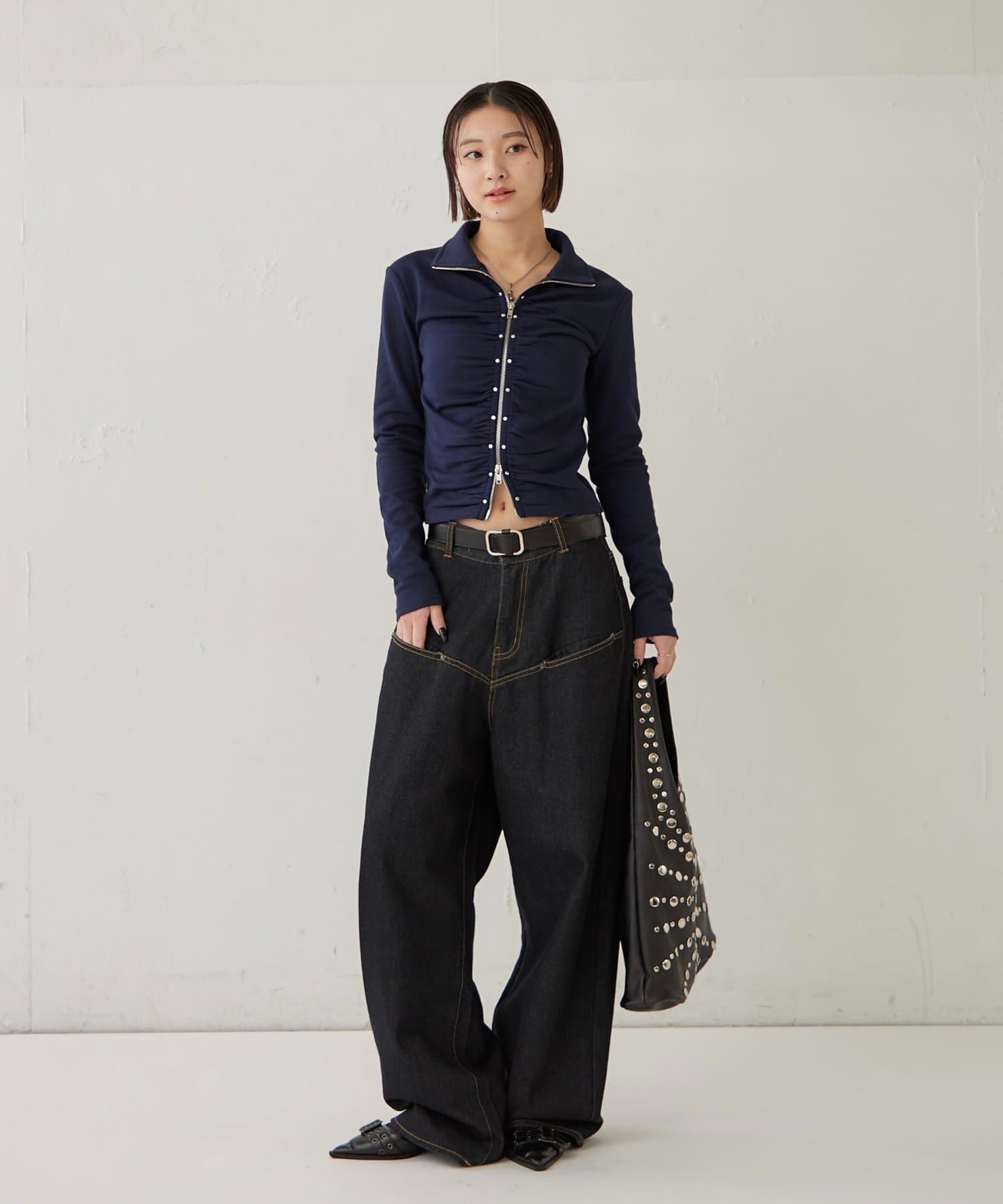 【STUDDED ZIP GATHERED TOP/スタッズジップギャザートップス】