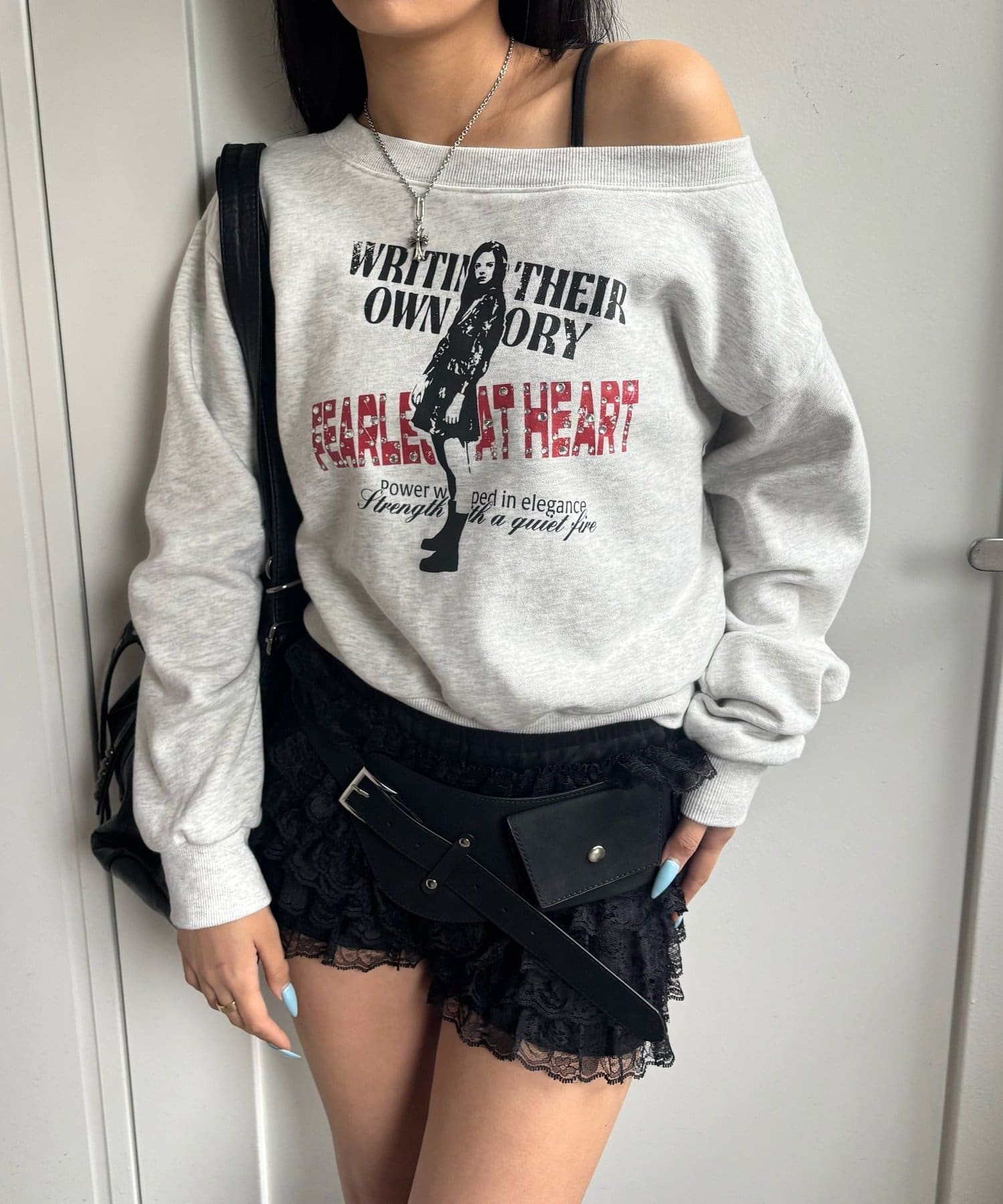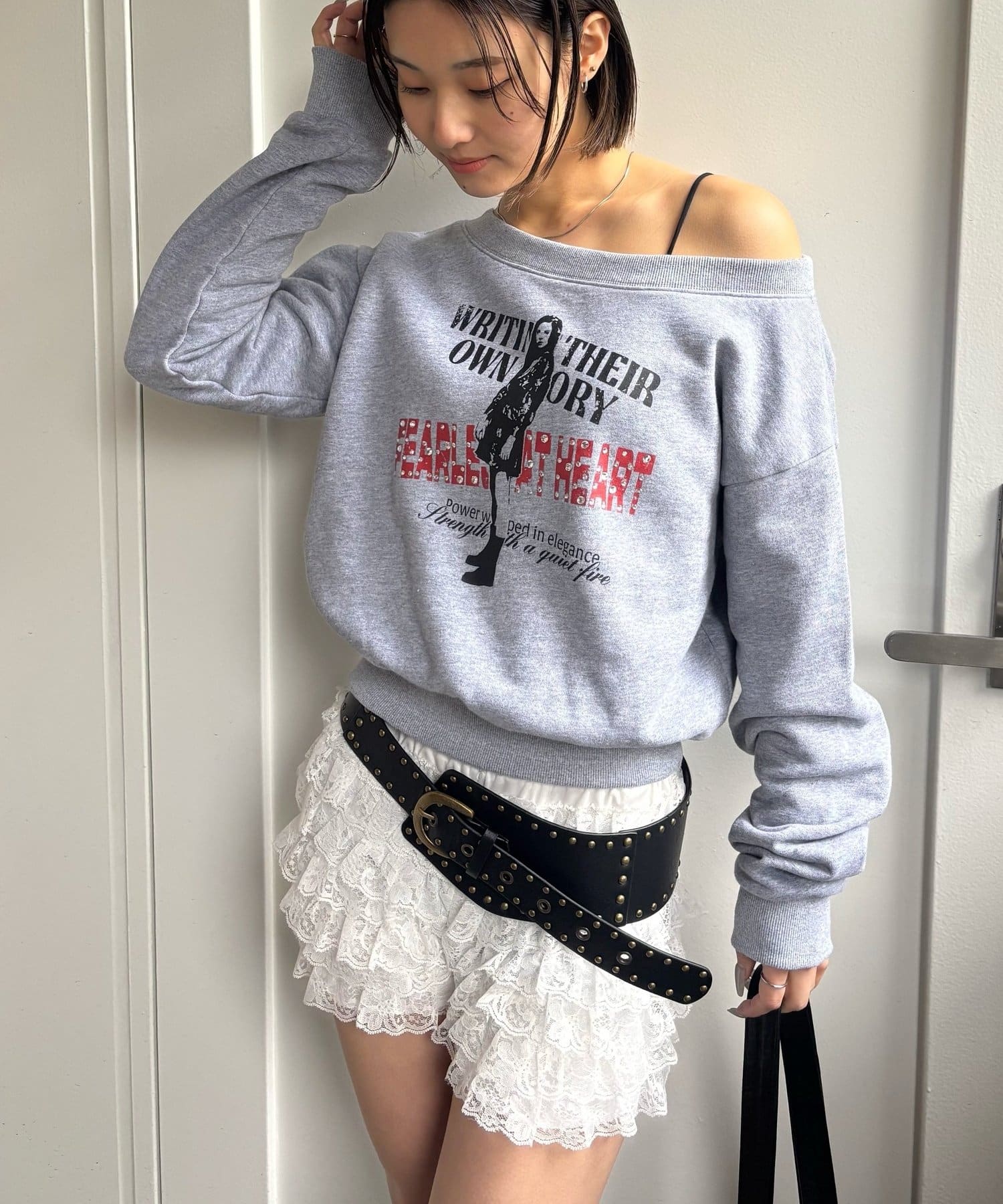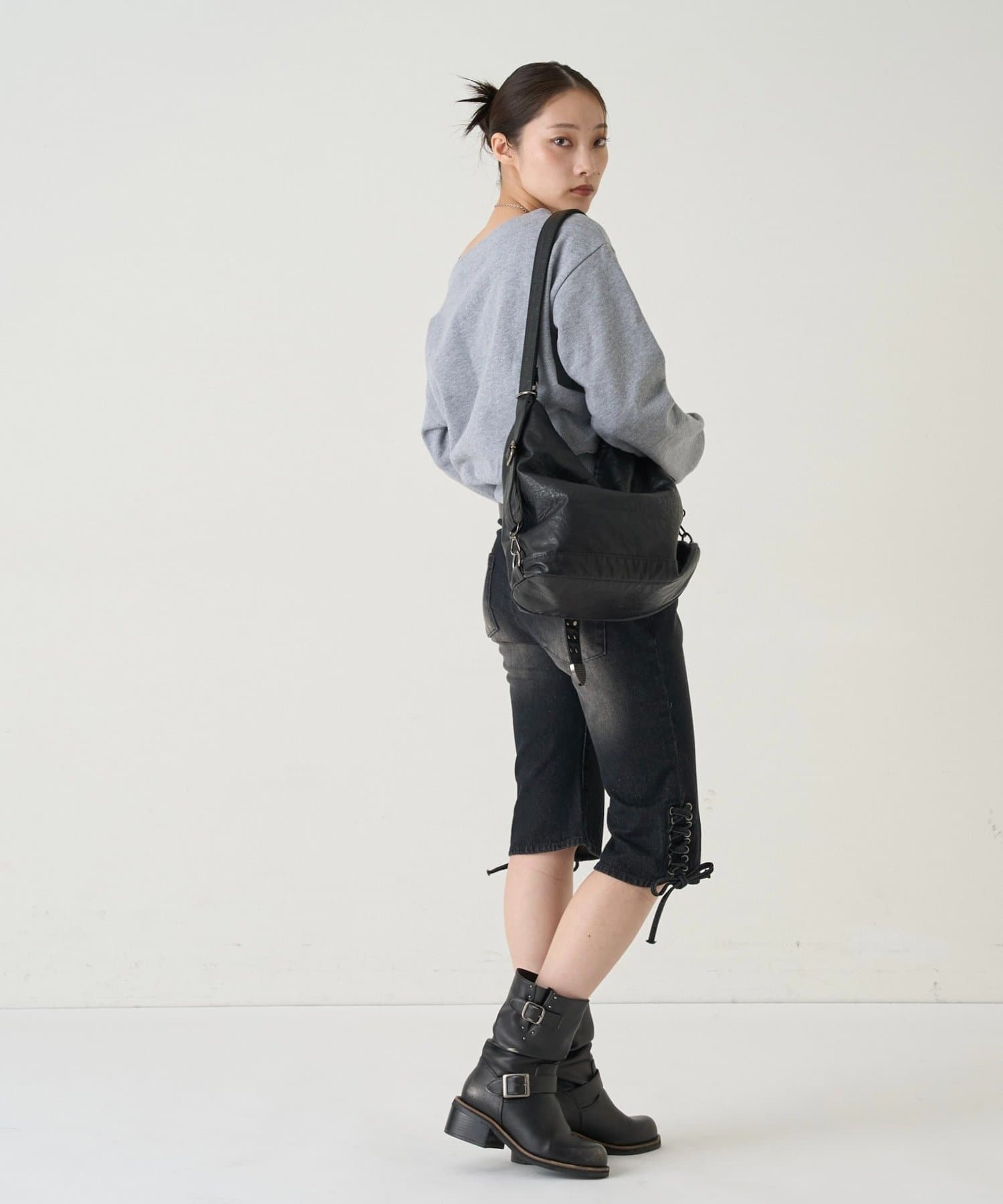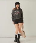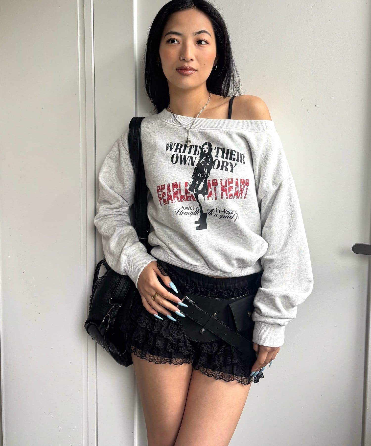 ・ミニのボトムス合わせで甘辛ミックスコーデ。