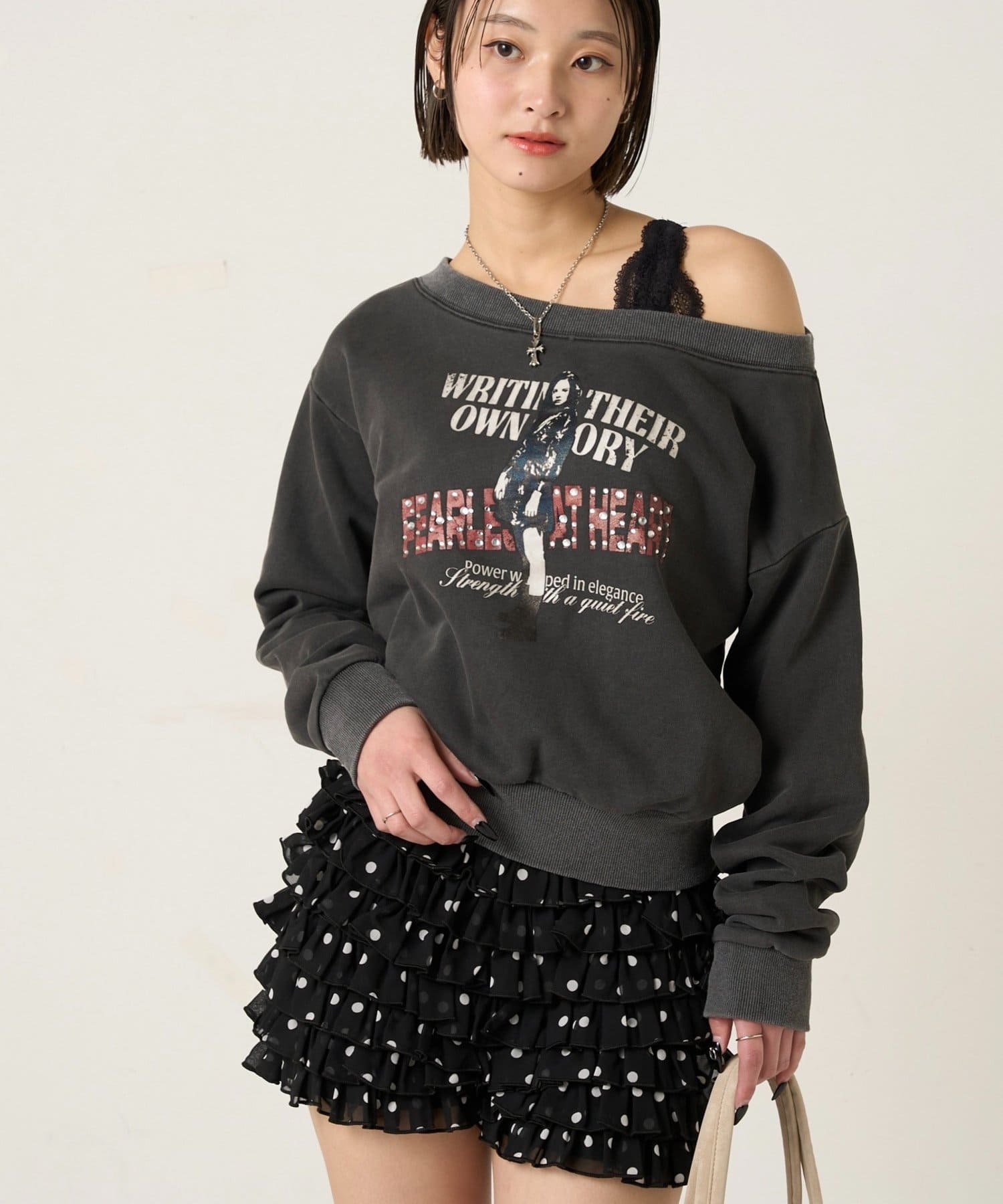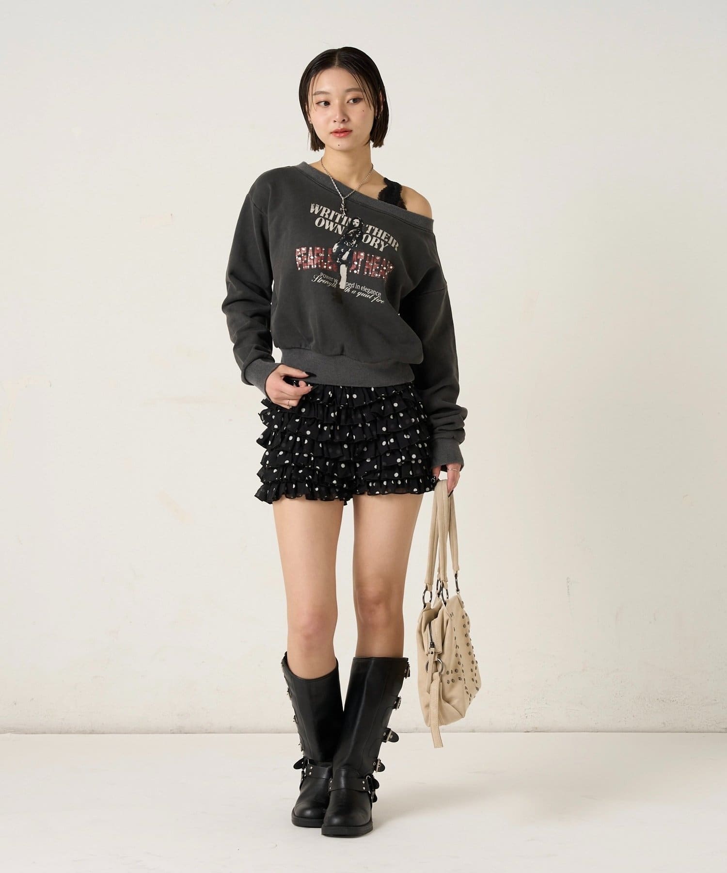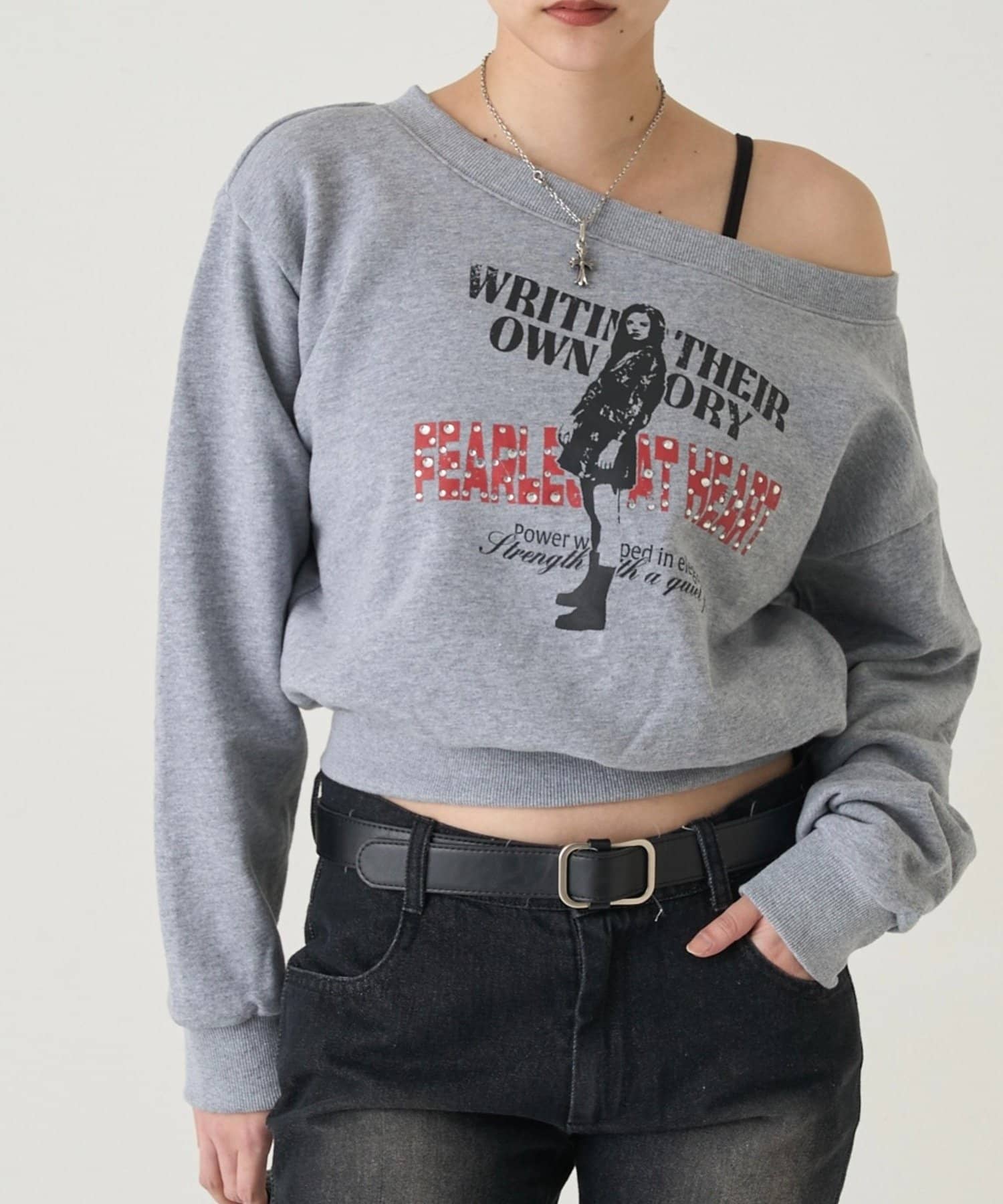 ・胸元のラインストーンが華やかさをプラスし、コーディネートのアクセントに。