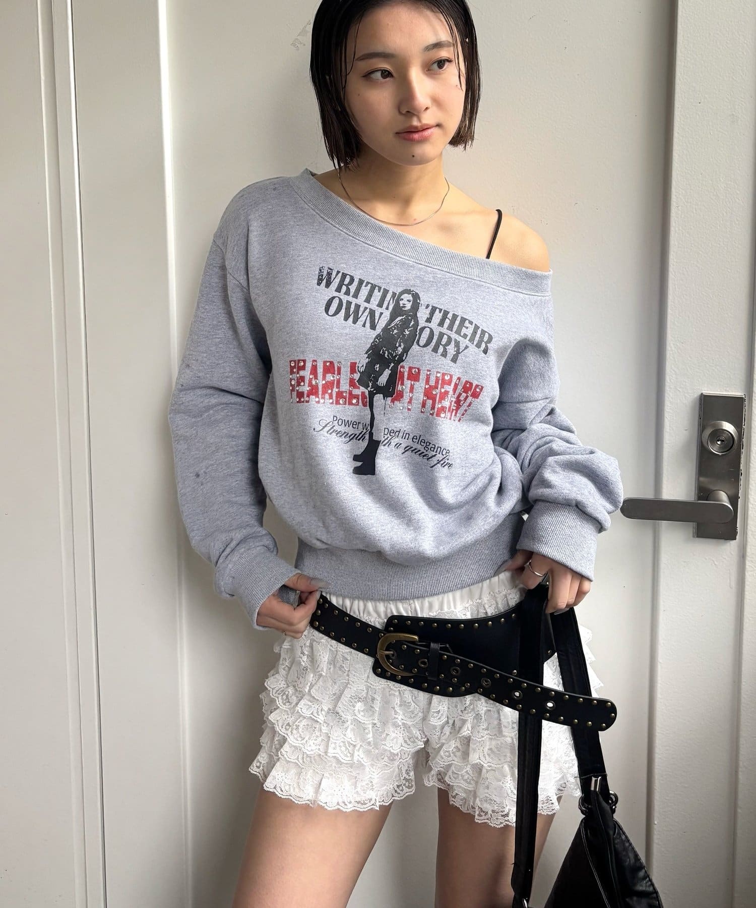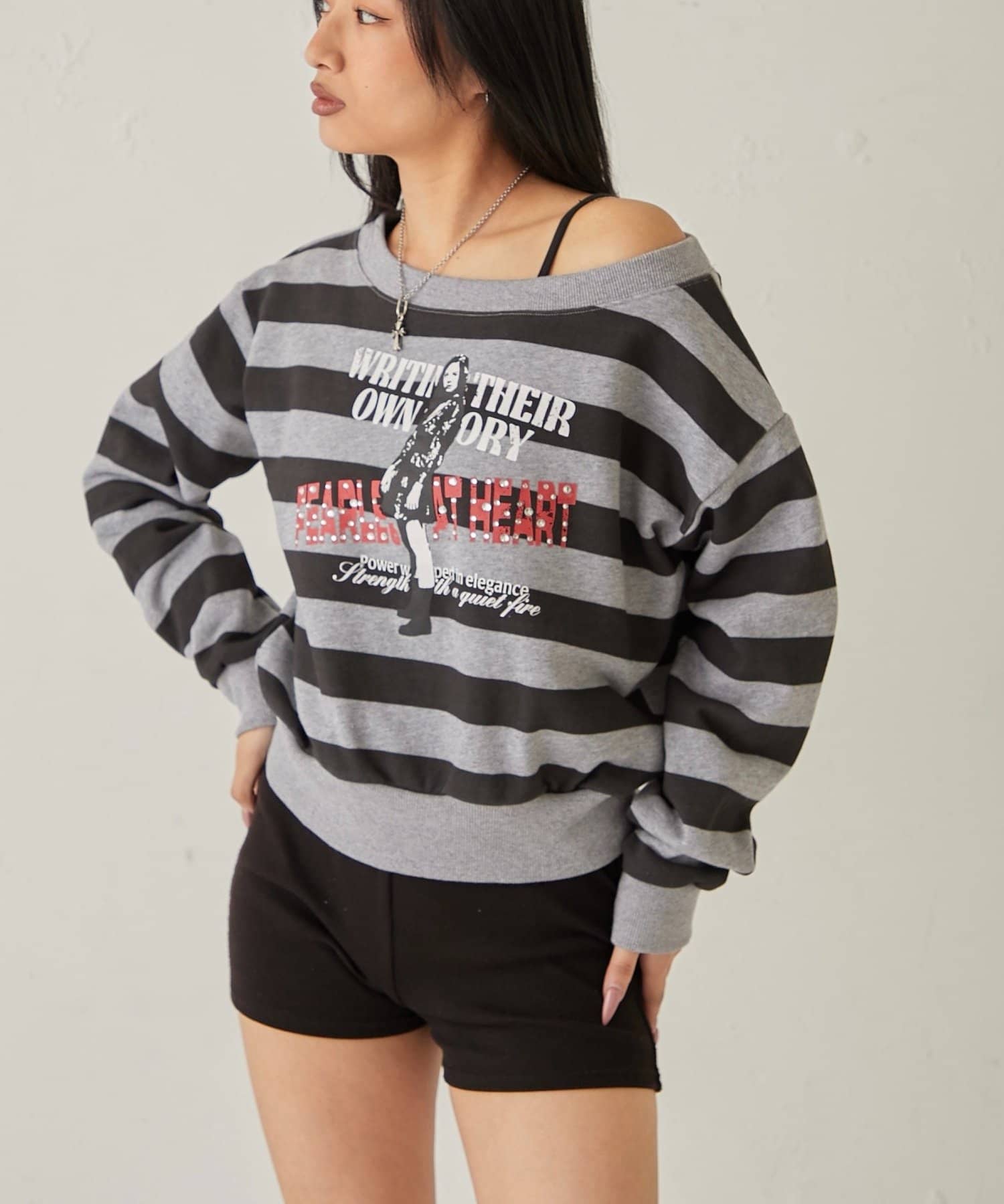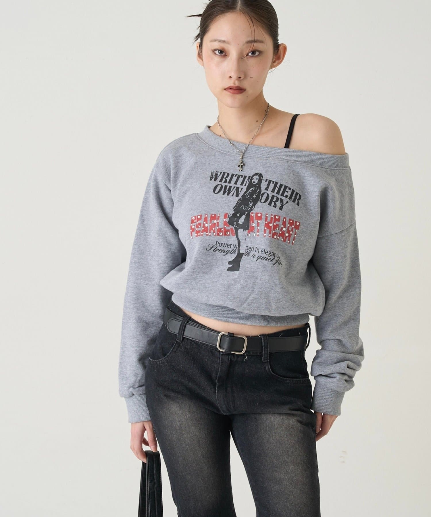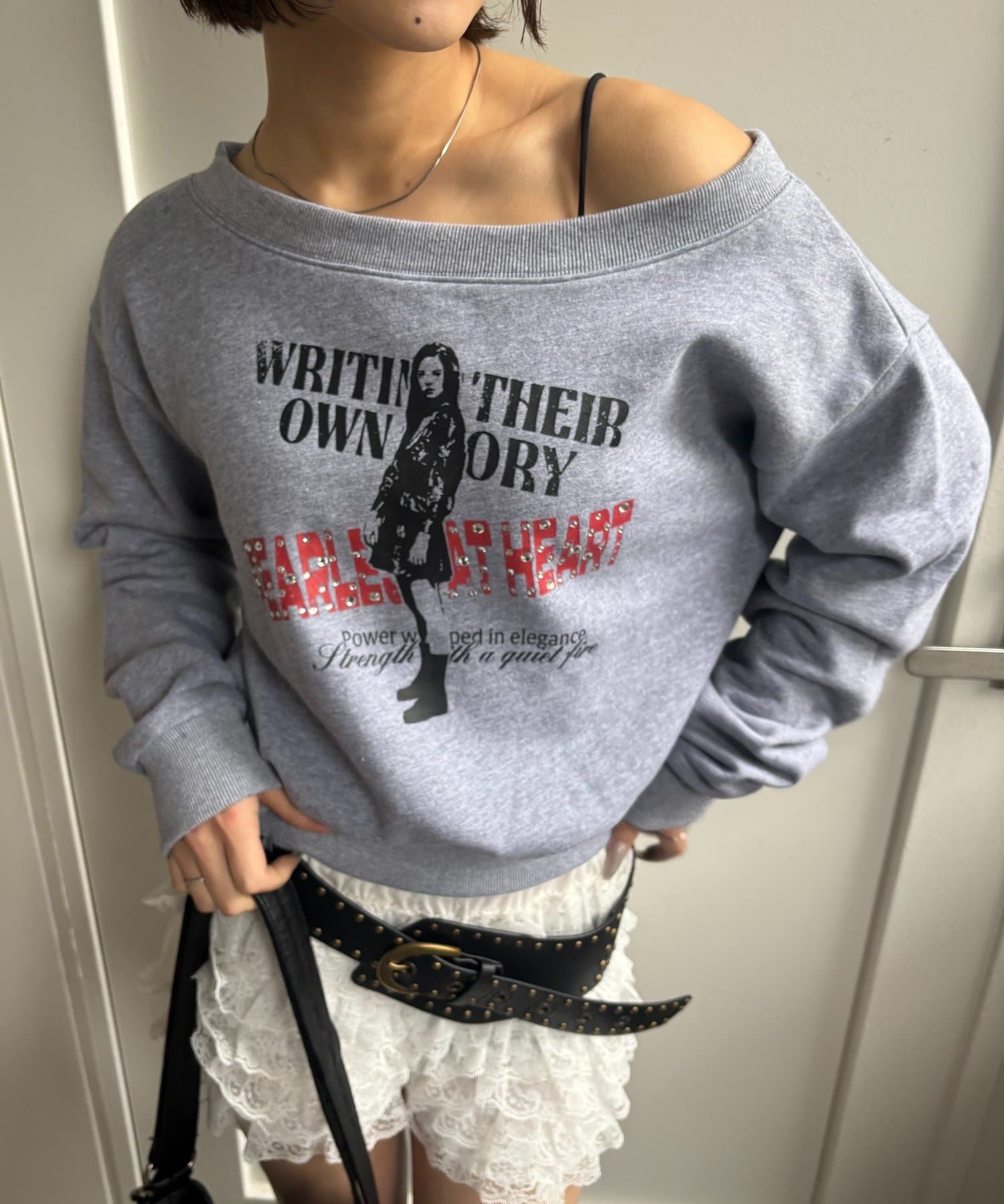 ・胸元のラインストーンが華やかさをプラスし、コーディネートのアクセントに。